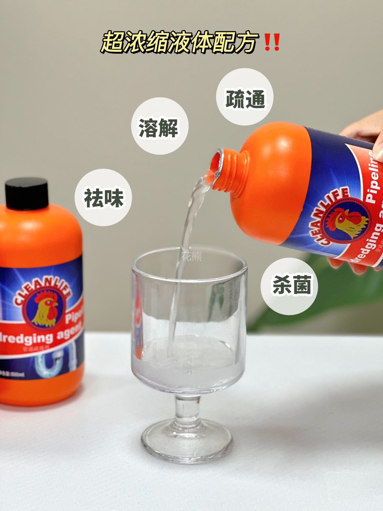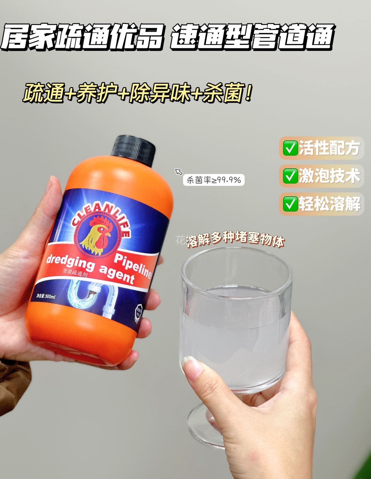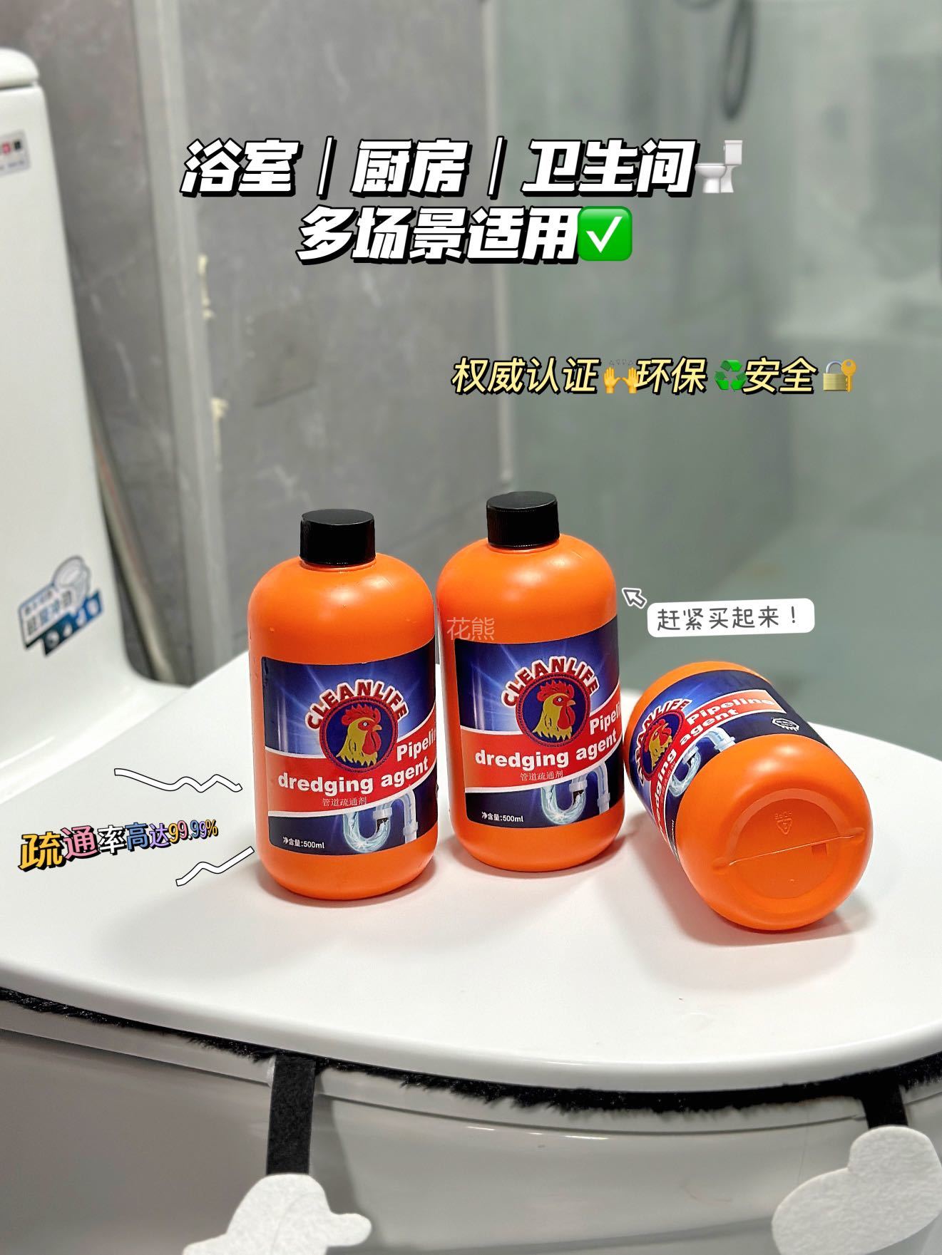 【GEKLIN大公鸡强力管道疏通剂】亲测可溶解头发高效溶解100种堵塞物 嗖一下就能通强力管道化尸粉 1瓶=8瓶普通凝胶剂杀菌疏通双管齐下。病毒无处隐身温柔反应不伤管道 无论是管道里的霉菌