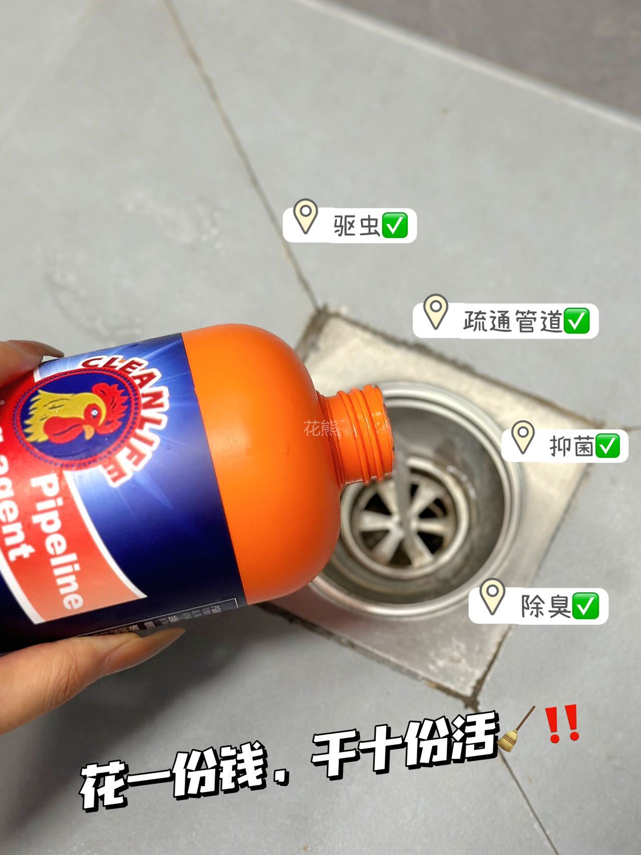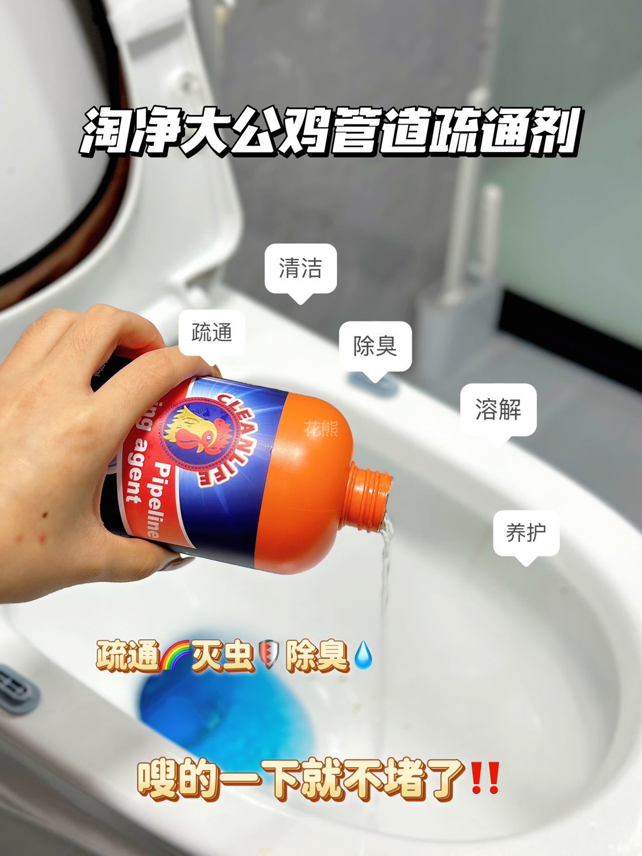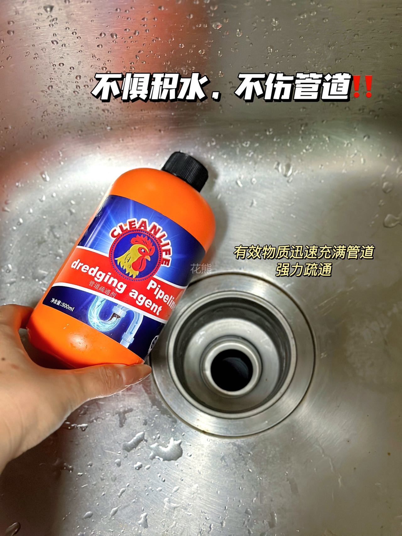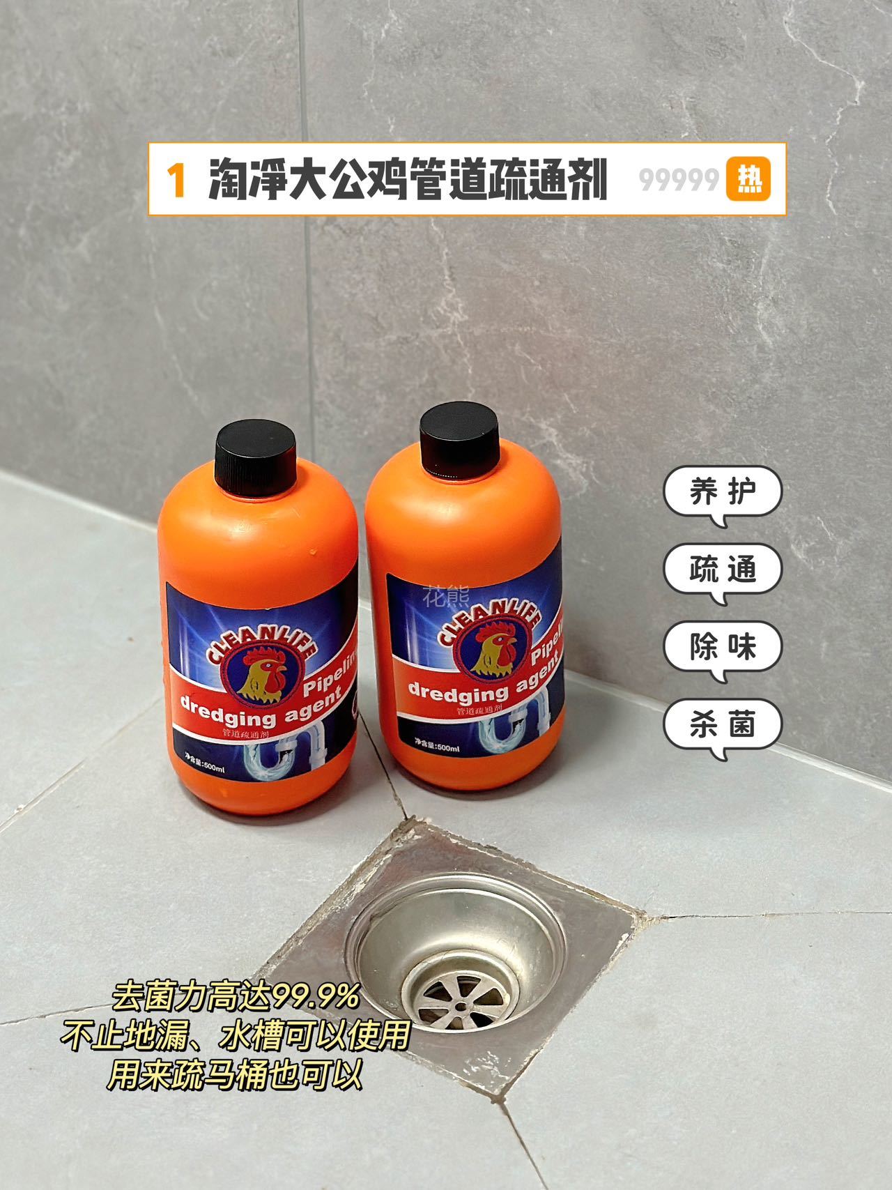 【GEKLIN大公鸡强力管道疏通剂】亲测可溶解头发高效溶解100种堵塞物 嗖一下就能通强力管道化尸粉 1瓶=8瓶普通凝胶剂杀菌疏通双管齐下。病毒无处隐身温柔反应不伤管道 无论是管道里的霉菌