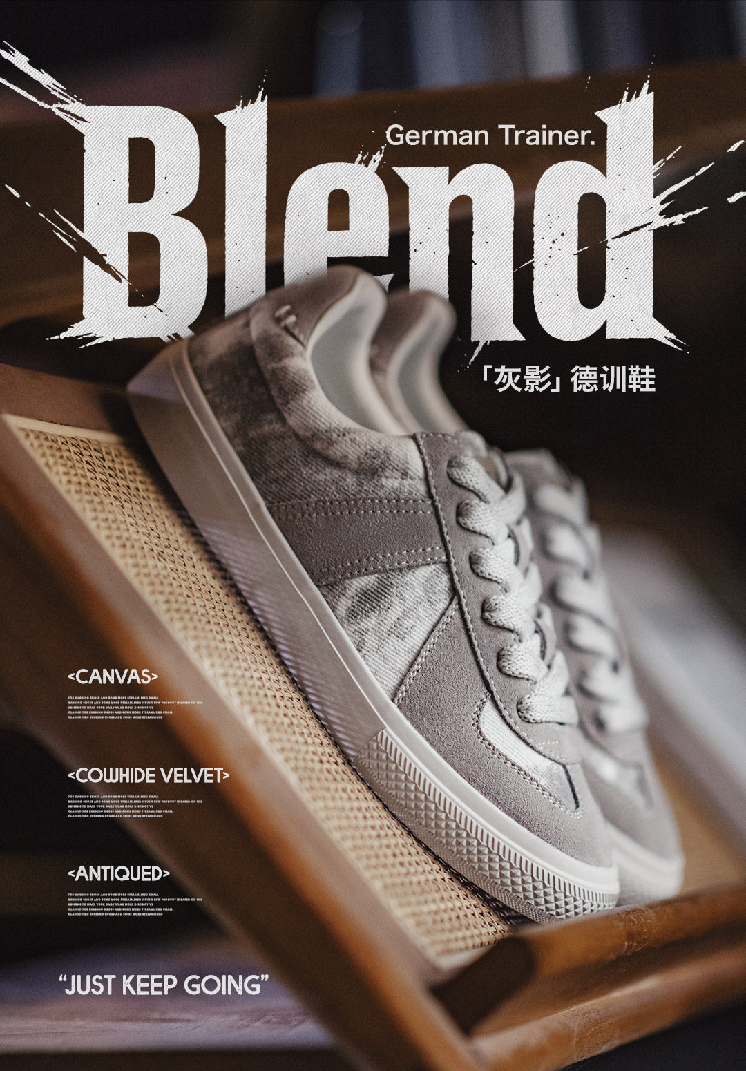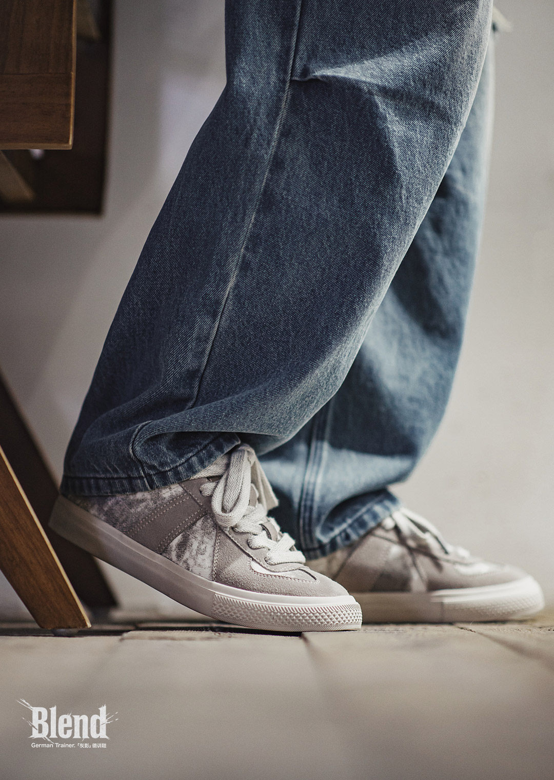 马登灰影德训鞋男春季新款复古扎染帆布板鞋平底休闲百搭阿甘鞋子