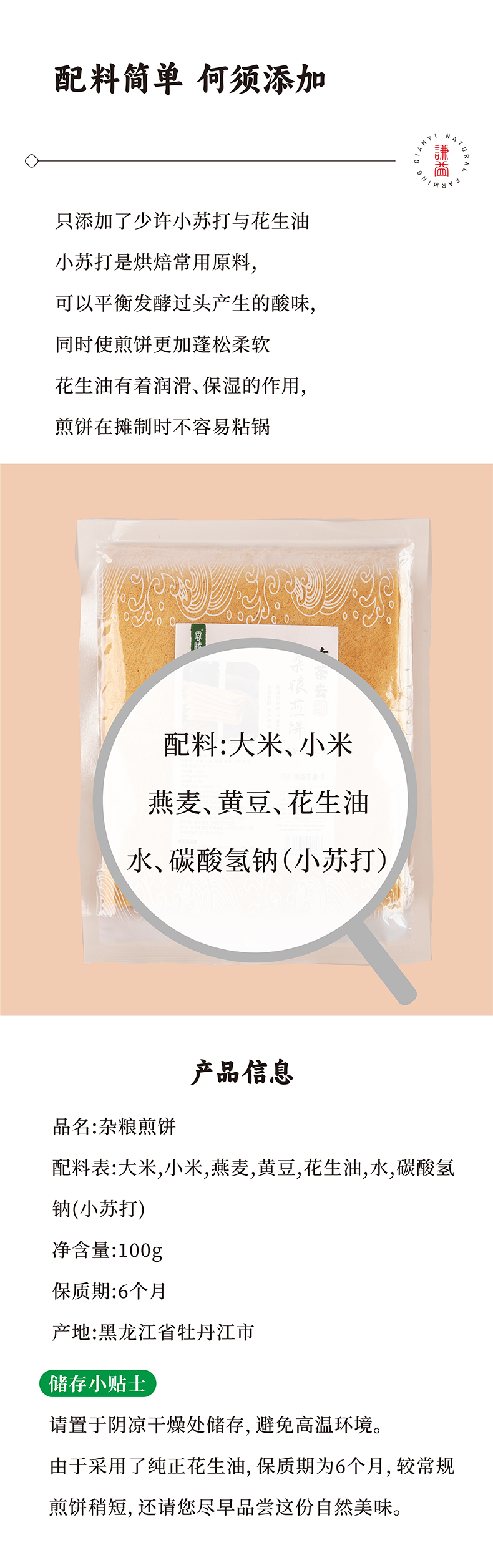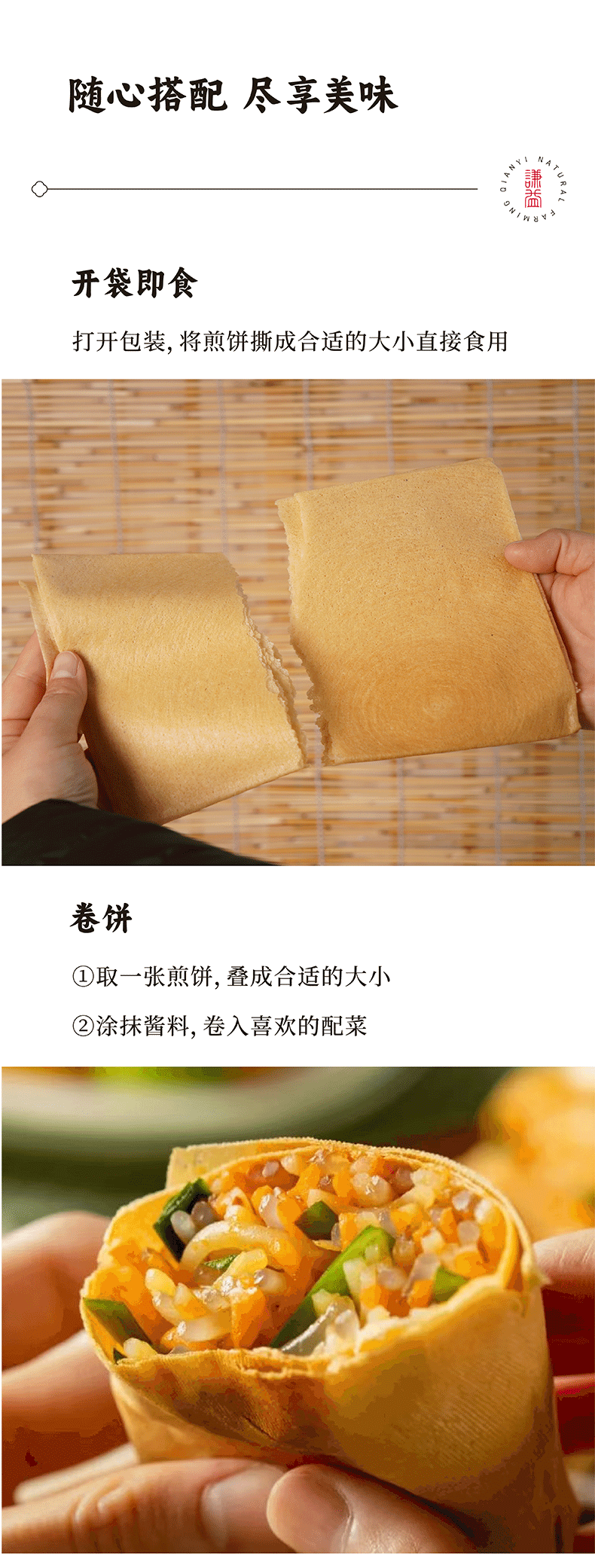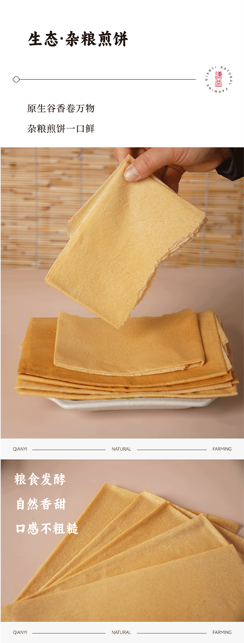 谦益杂粮煎饼100g/包(1包2张饼)薄软香甜 健康美味 万食可卷 可做主食 早餐 下午茶 零食 旅行等能量补充