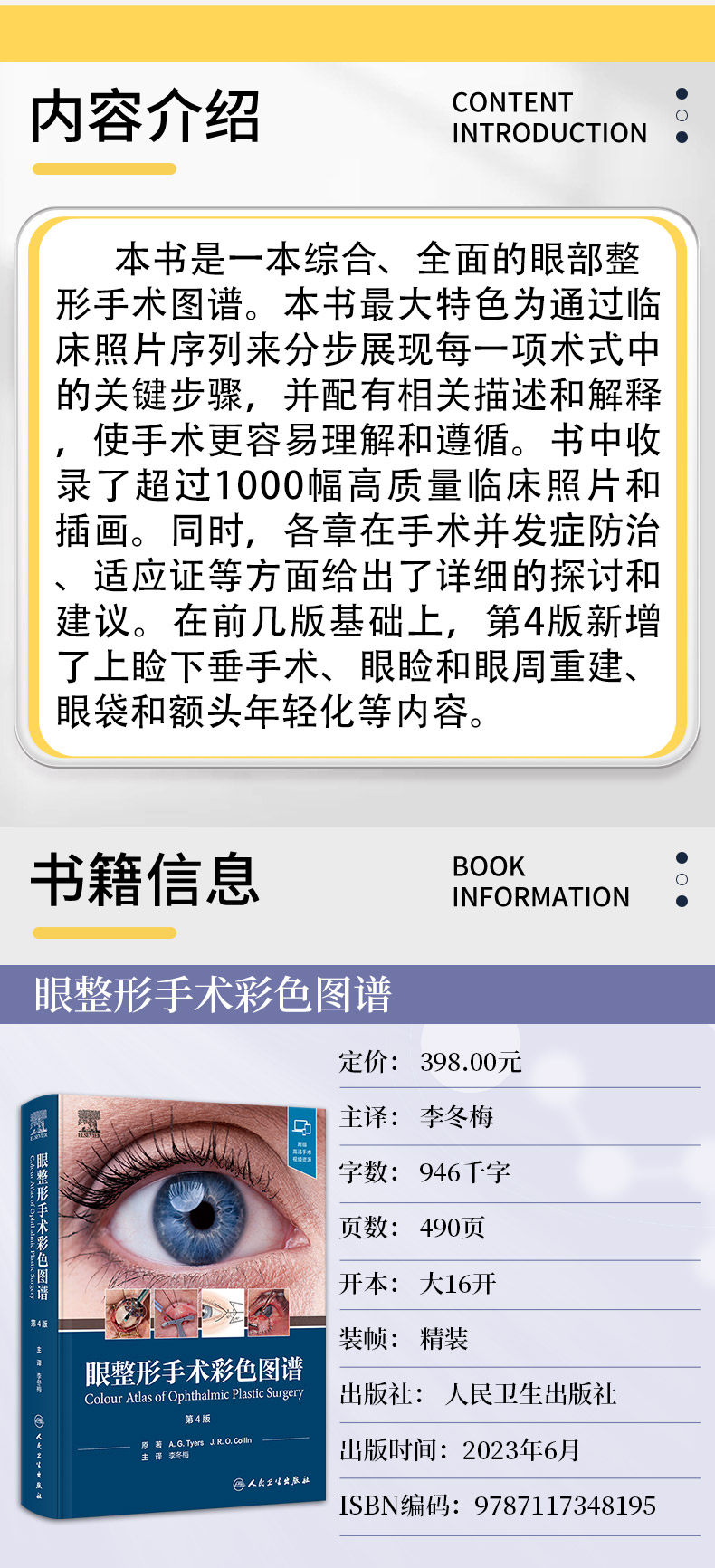 眼整形手术彩色图谱 第4版 附手术视频 眼整形手术步骤术式讲解 整形美容技术 外科医生临床教学范本初学者入门书