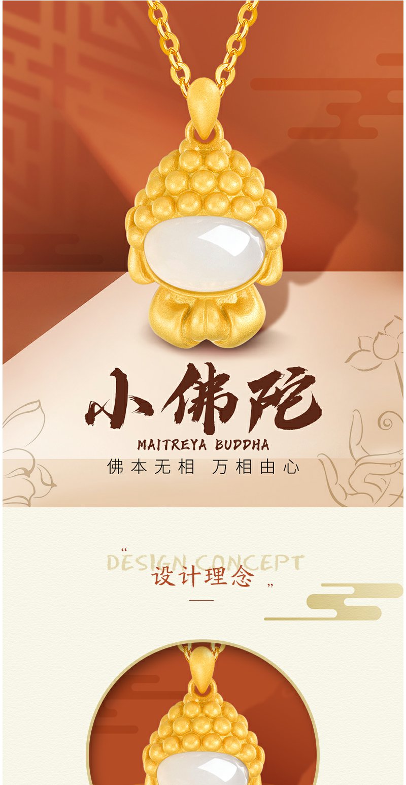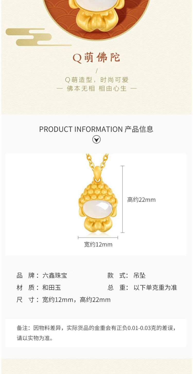 六鑫珠宝 Q萌无相小佛陀吊坠 S925银镀金