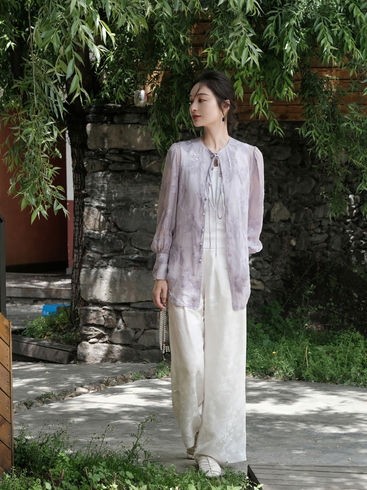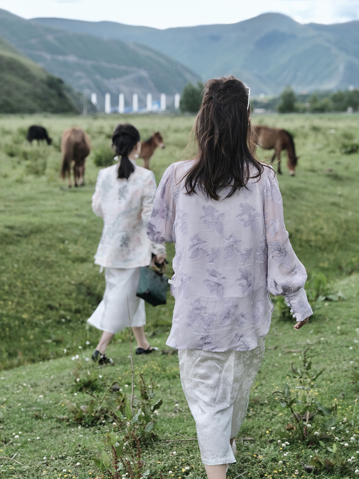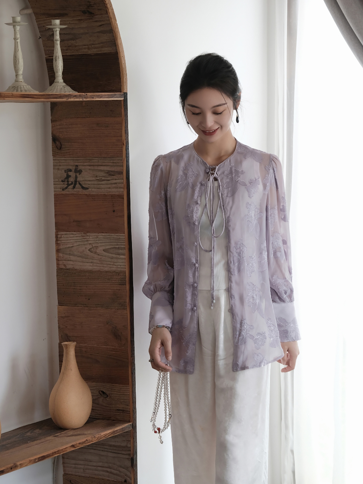 盛唐牡丹 | 时髦玉扣花香引蝶对襟女衬衫