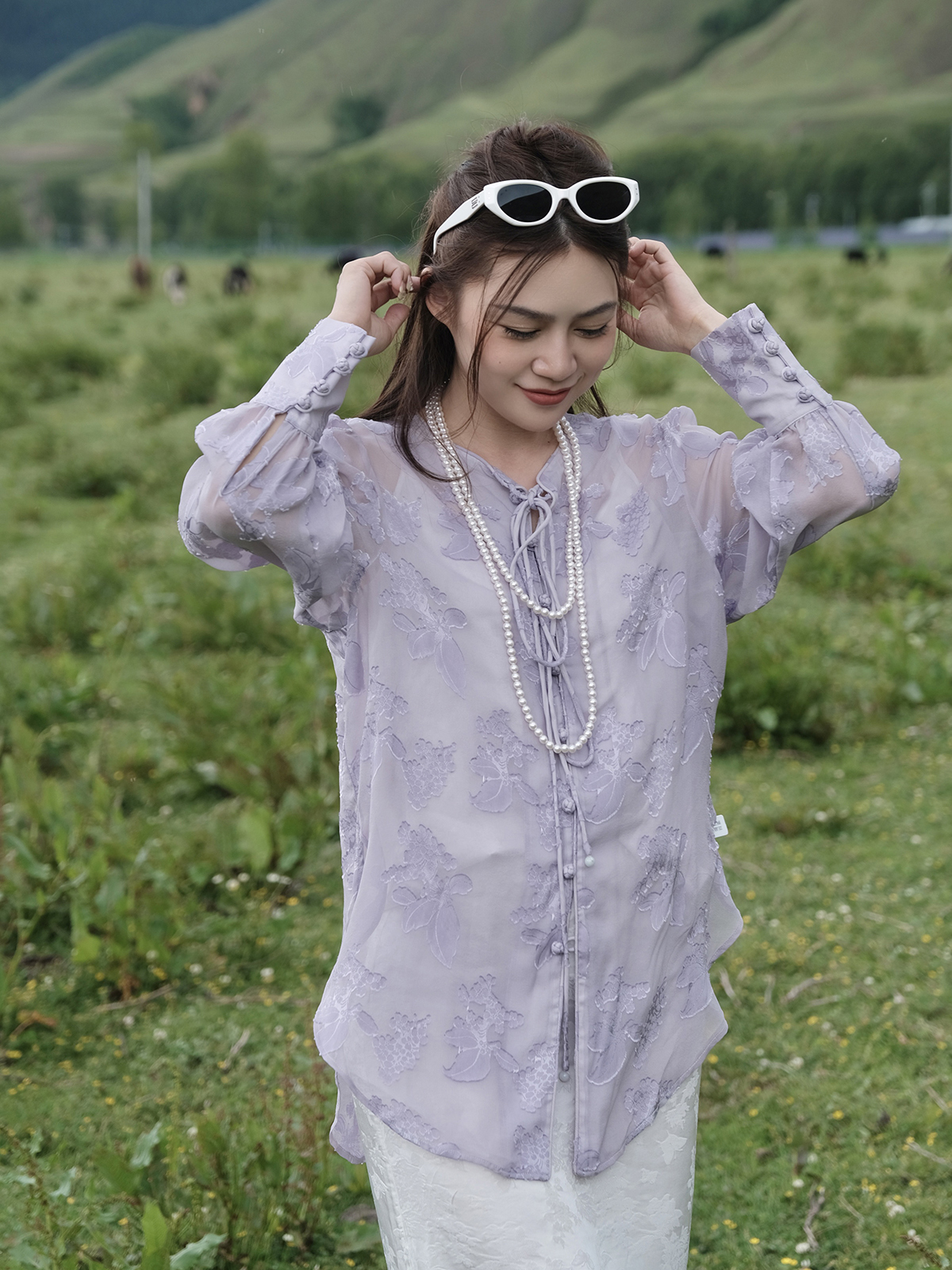 盛唐牡丹 |真丝乔其剪花纱女上衣