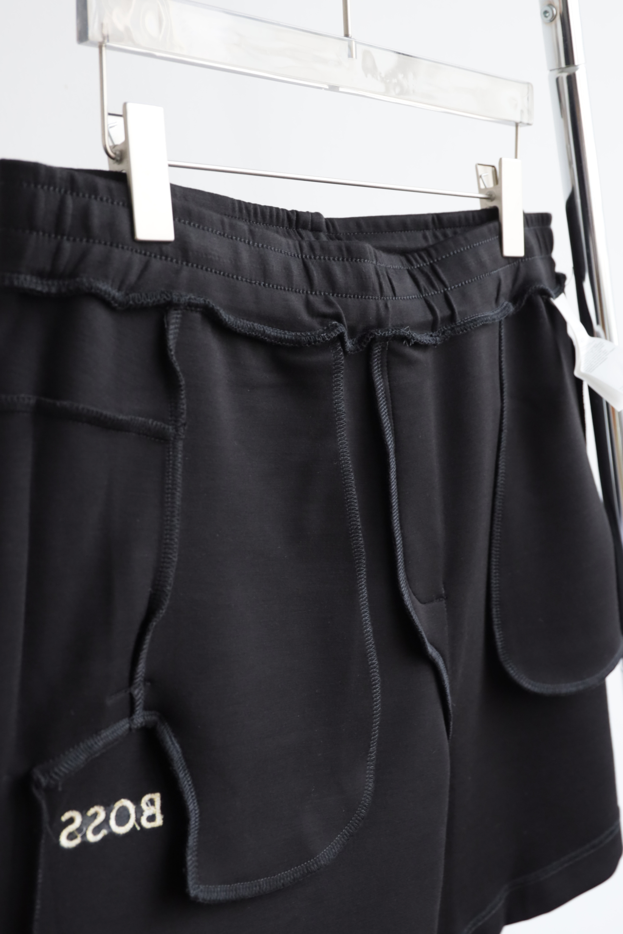 字母金线刺绣装饰,两侧插袋,松紧弹力抽绳腰围