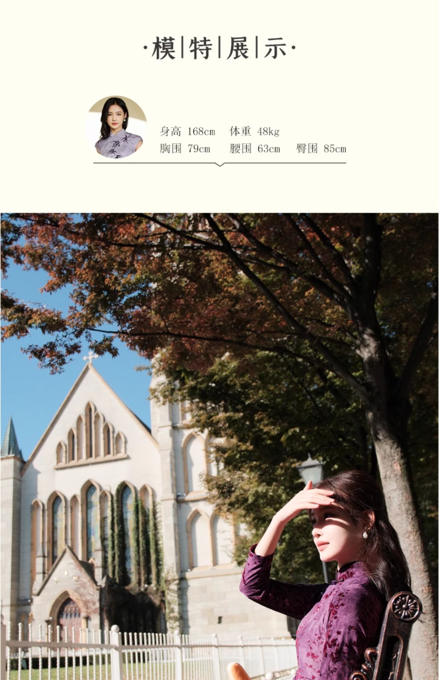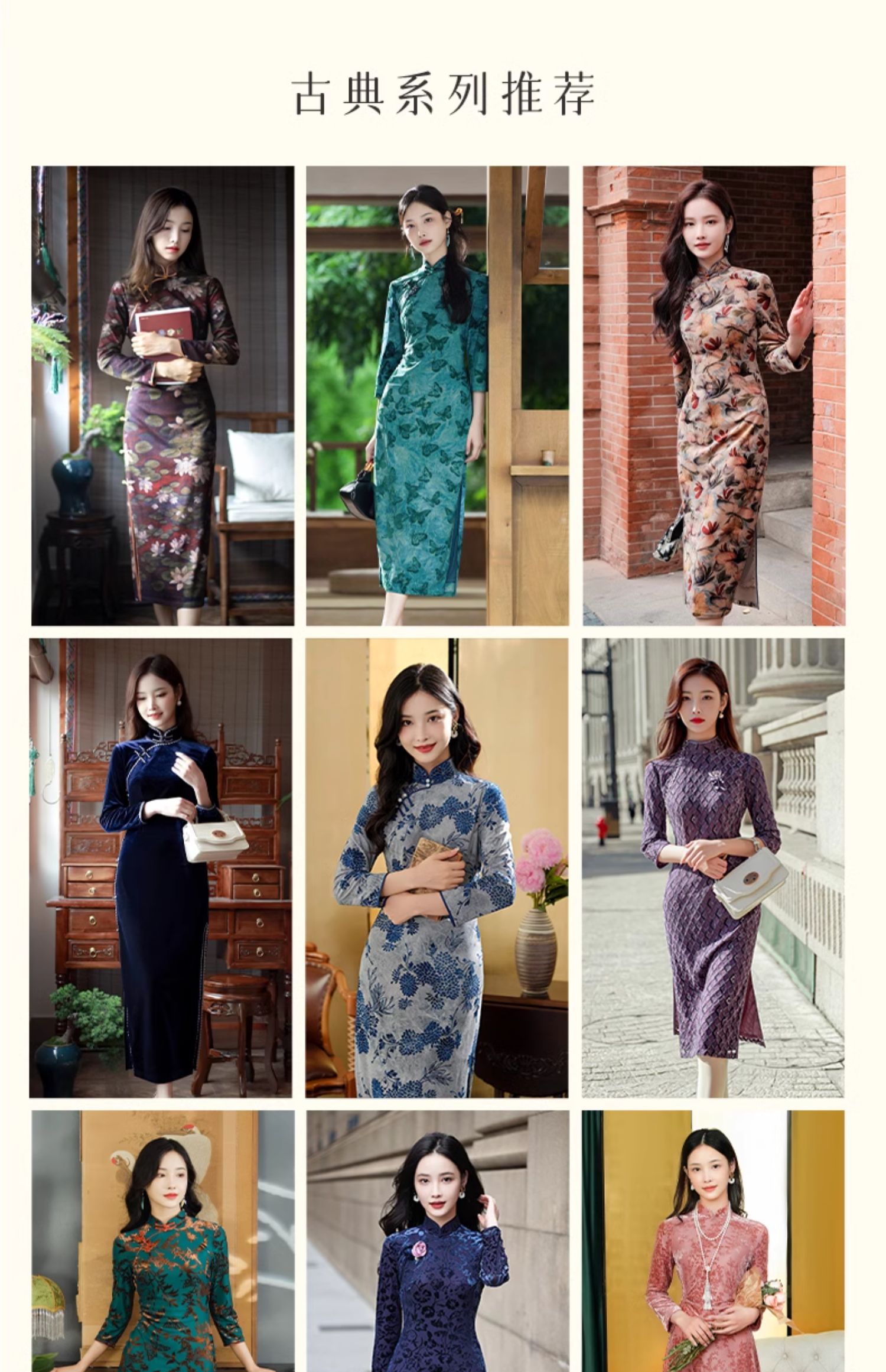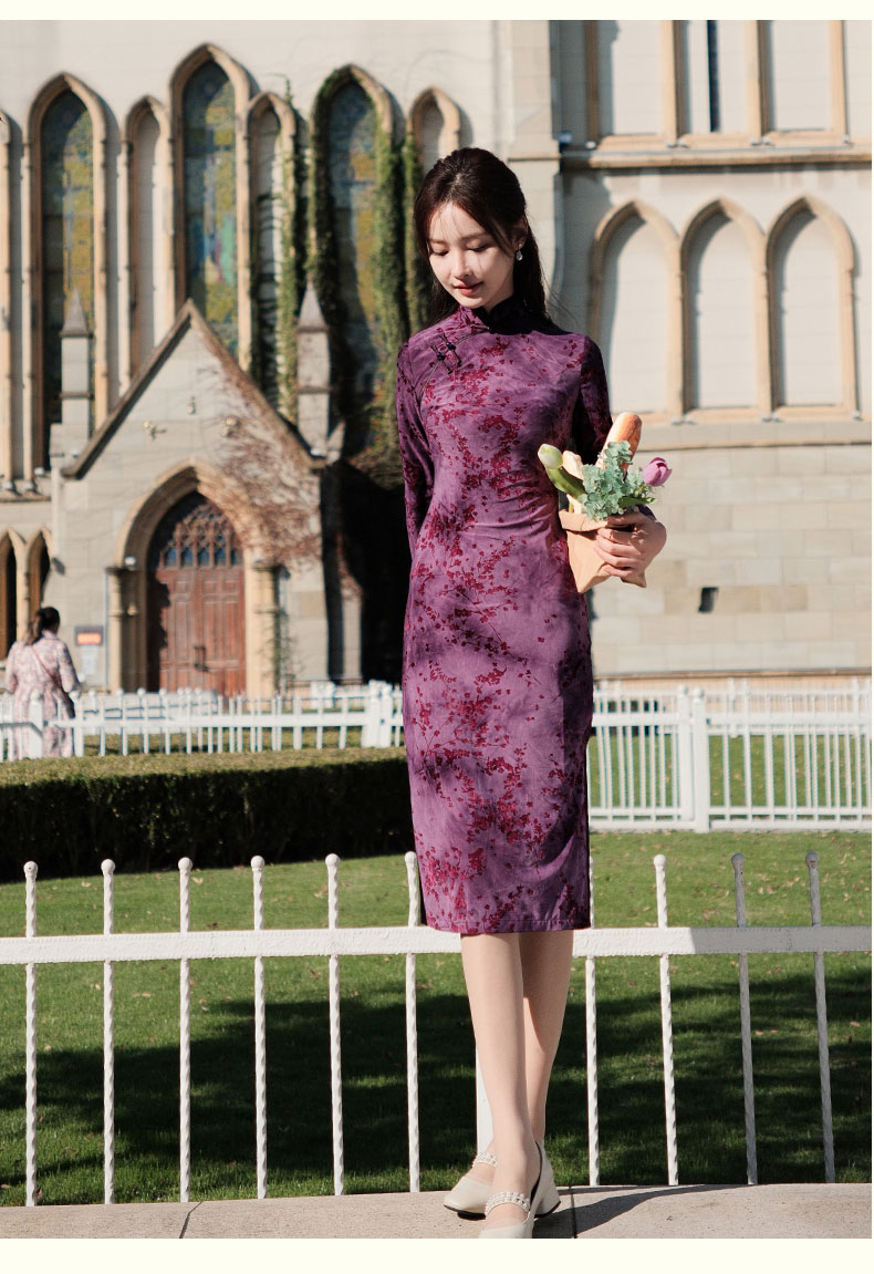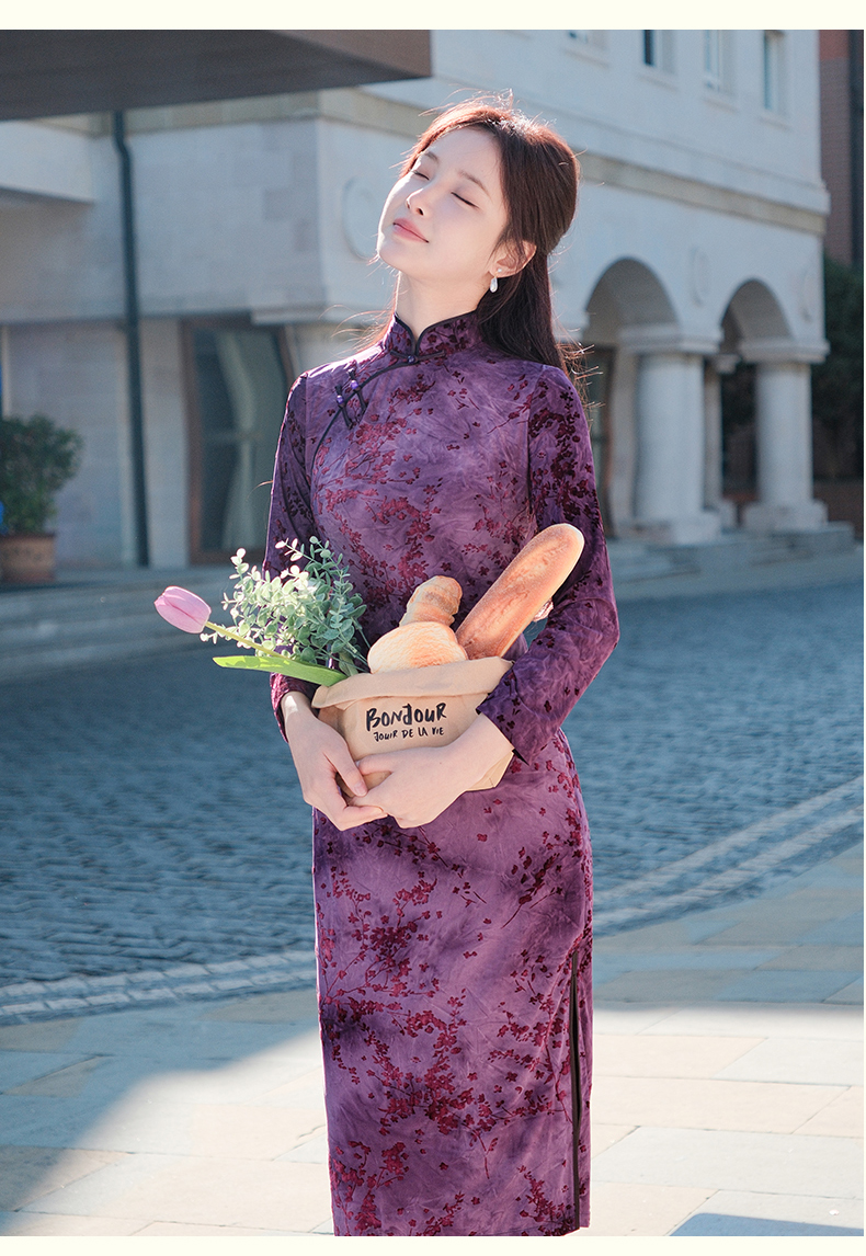 上海逸红颜紫鸳2025冬季新款扎染针织植绒新中式改良长袖文艺旗袍