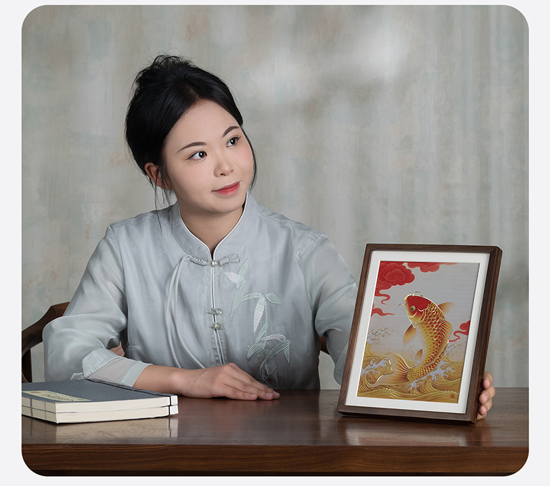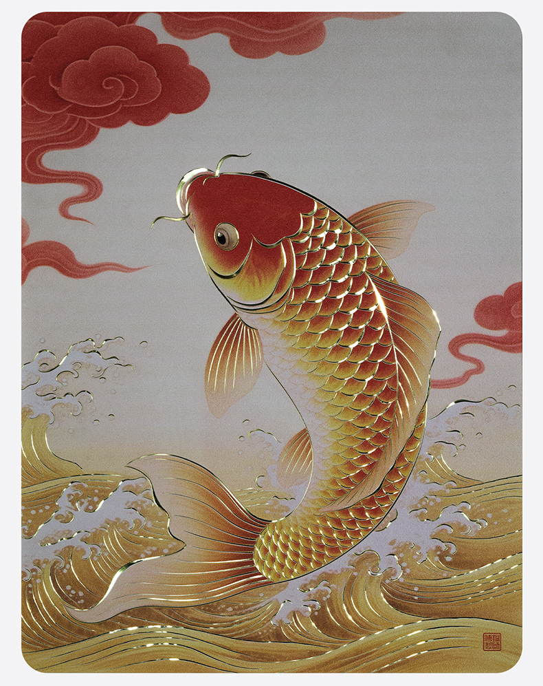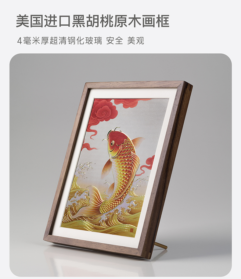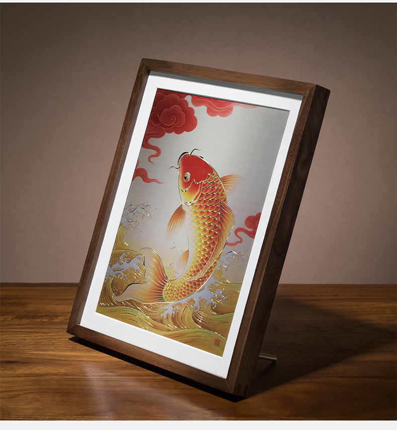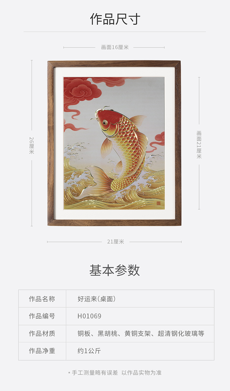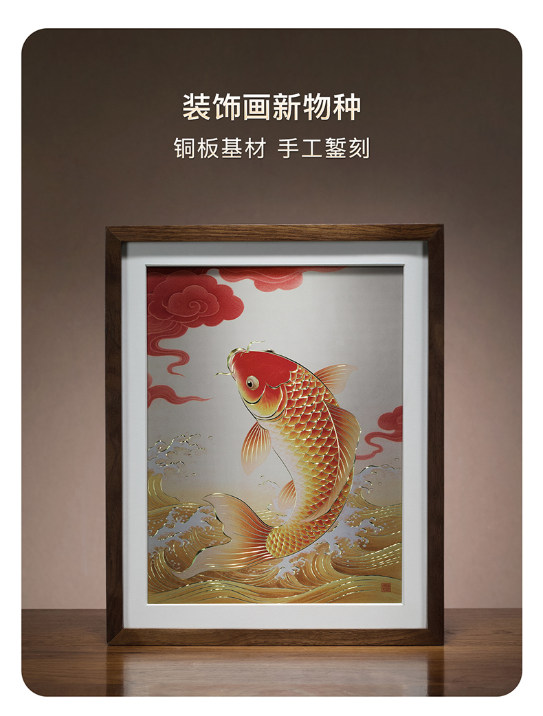 铜师傅 手工錾刻 铜雕画《好运来(桌面)》书房办公桌锦鲤装饰画