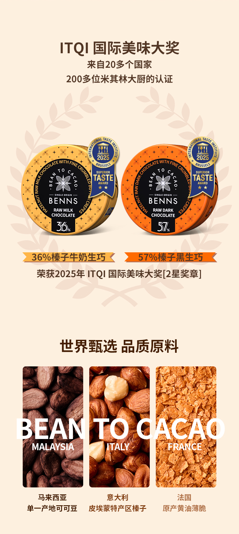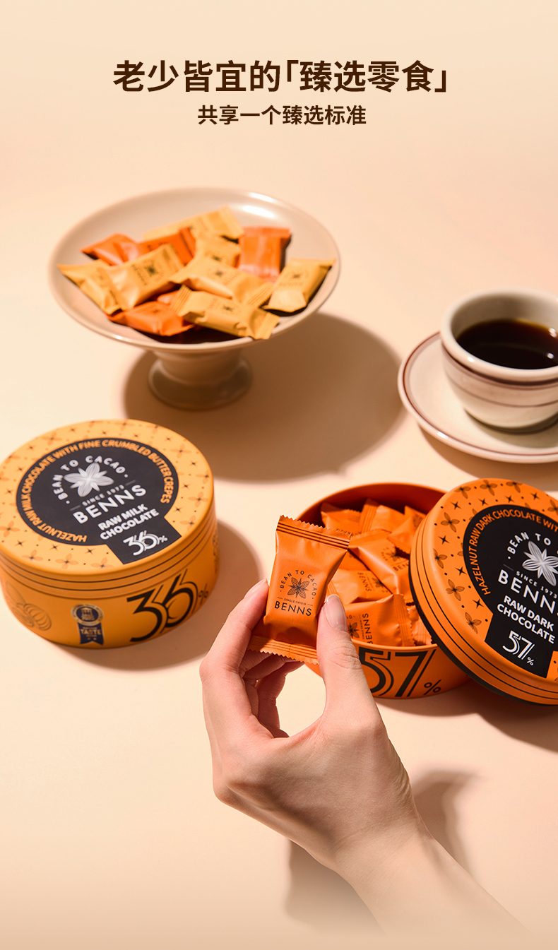 【99元2铁罐送礼袋】贝纳丝榛子黄油薄脆生巧克力36%+57%可可含量 102g/罐