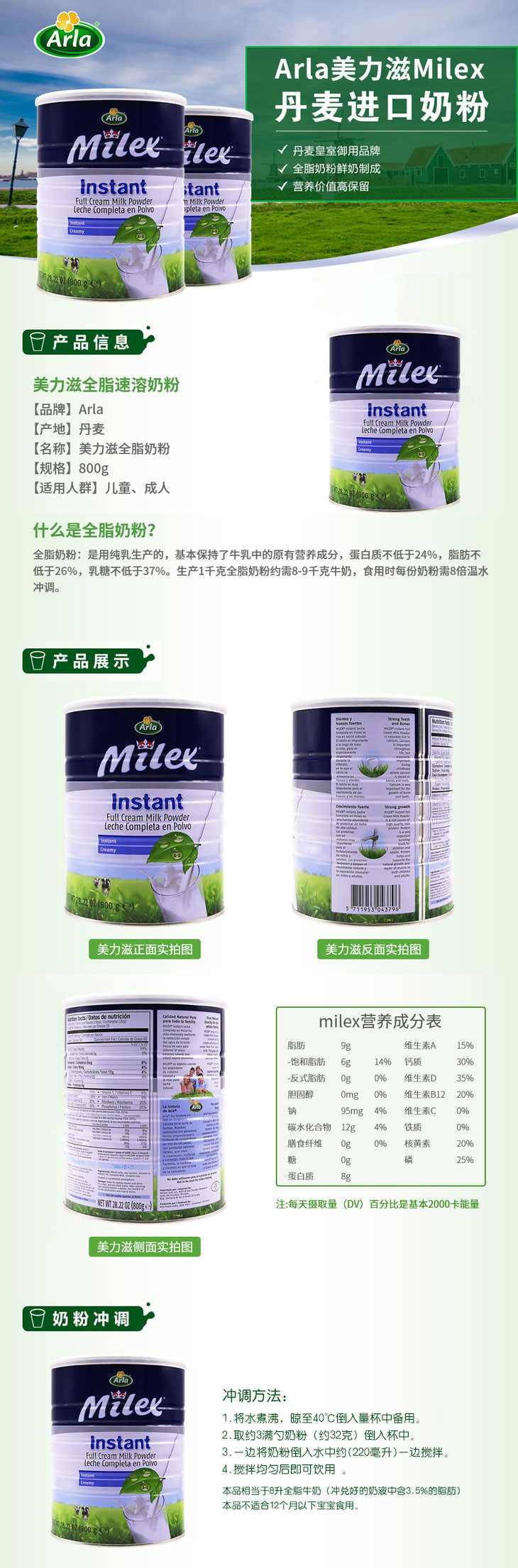 [极速送达]阿拉美力滋全脂成人奶粉800克. Arla Milex Maelkepulver 800g