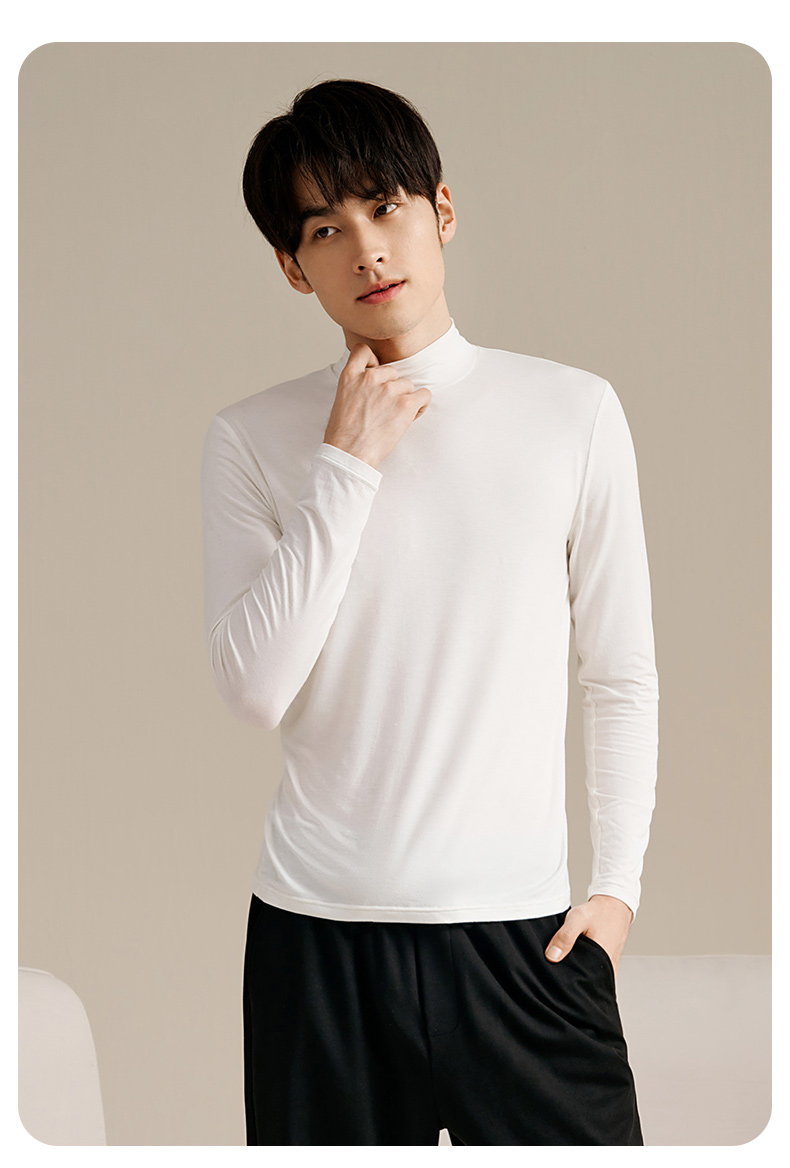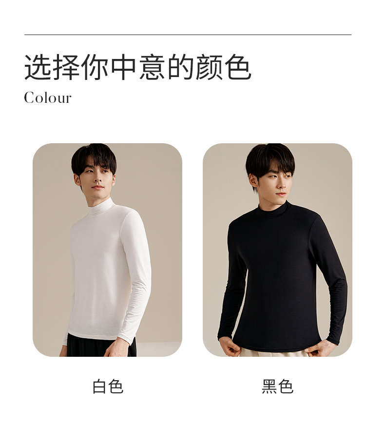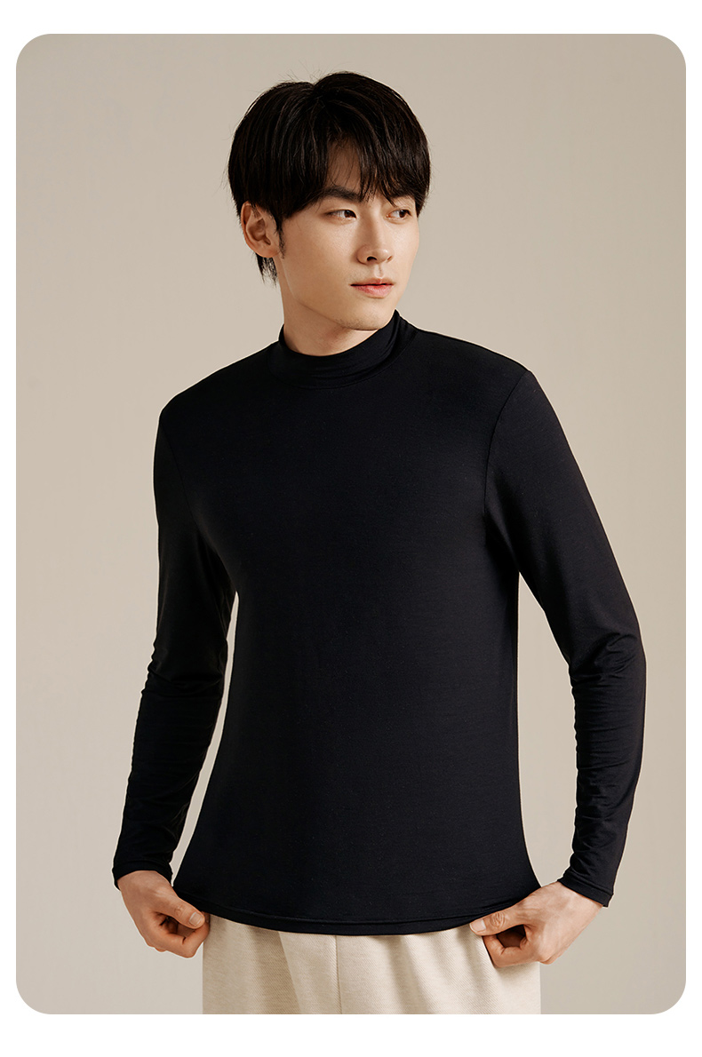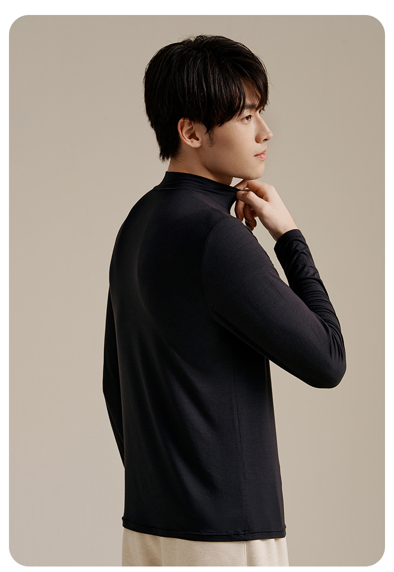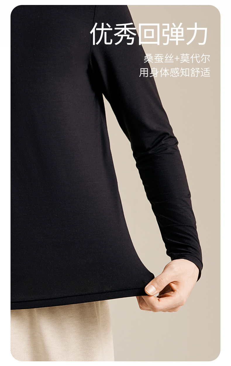 【弹弹蚕丝肌肤衣】金三塔桑蚕丝莫代尔男士上衣半高领弹力打底衫 NZMEC720
