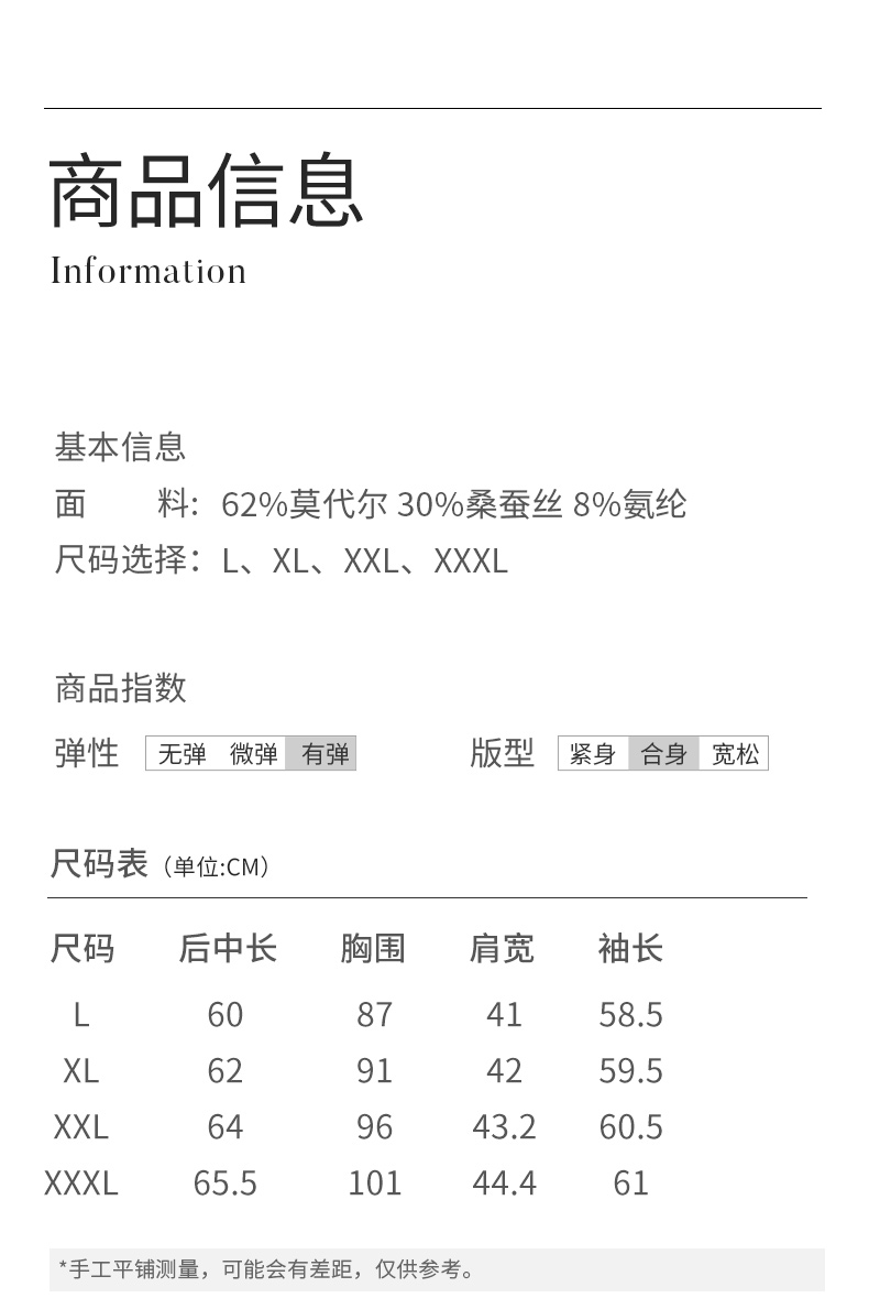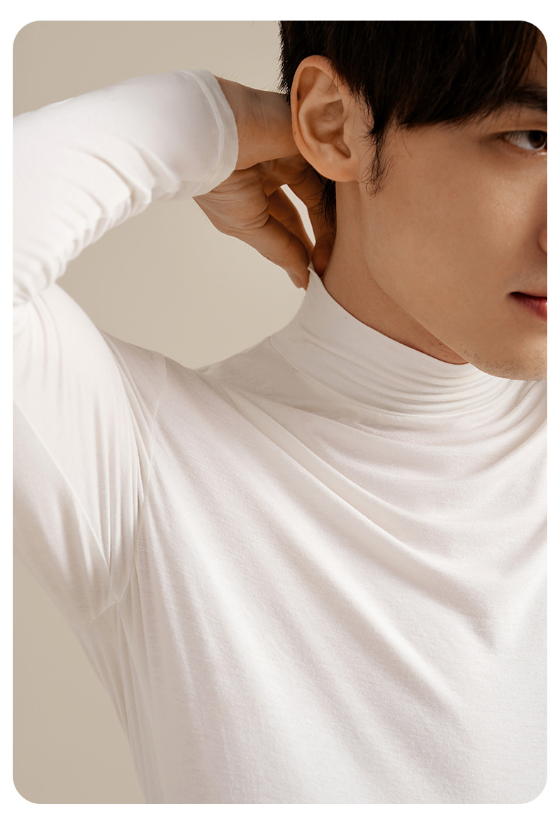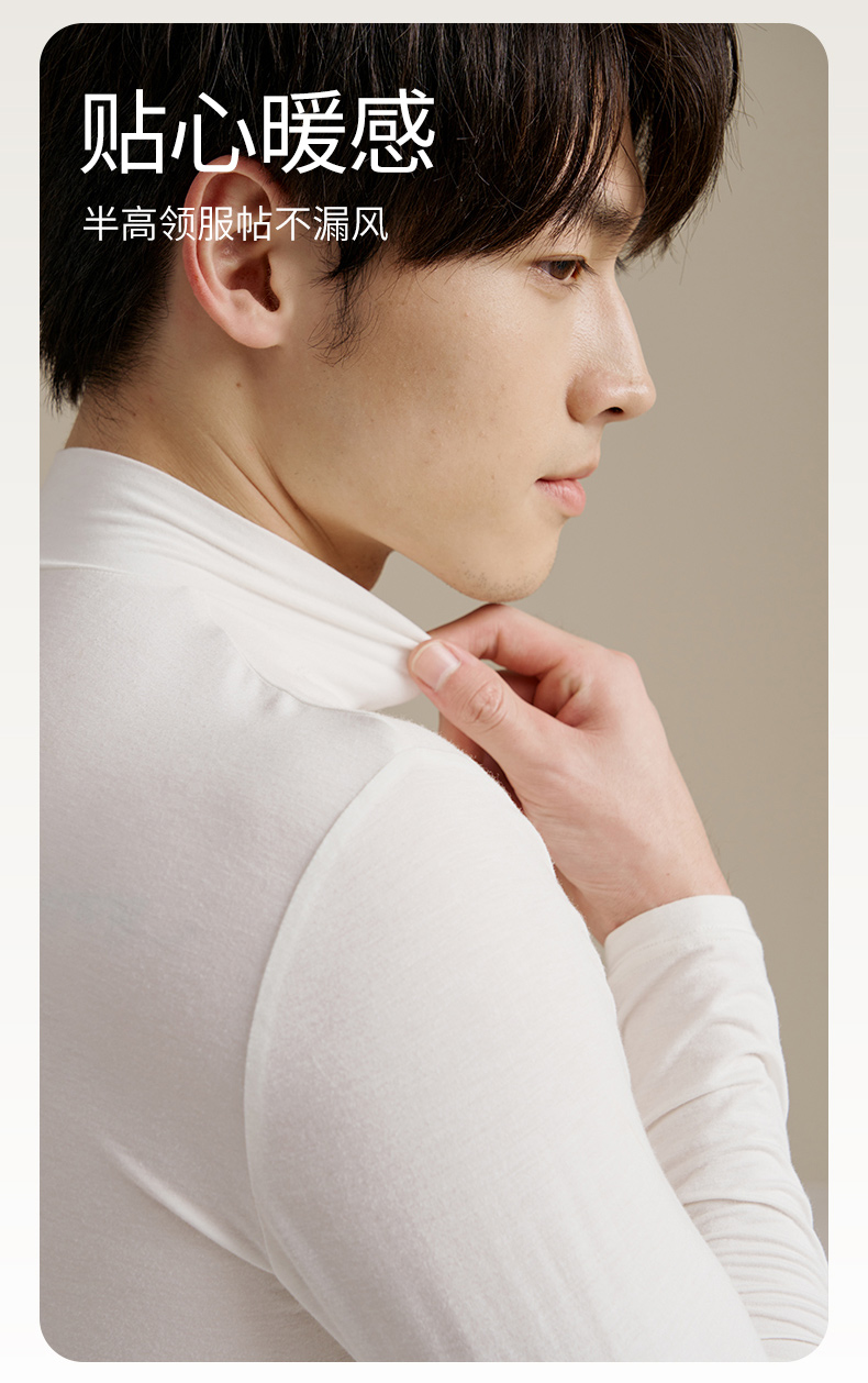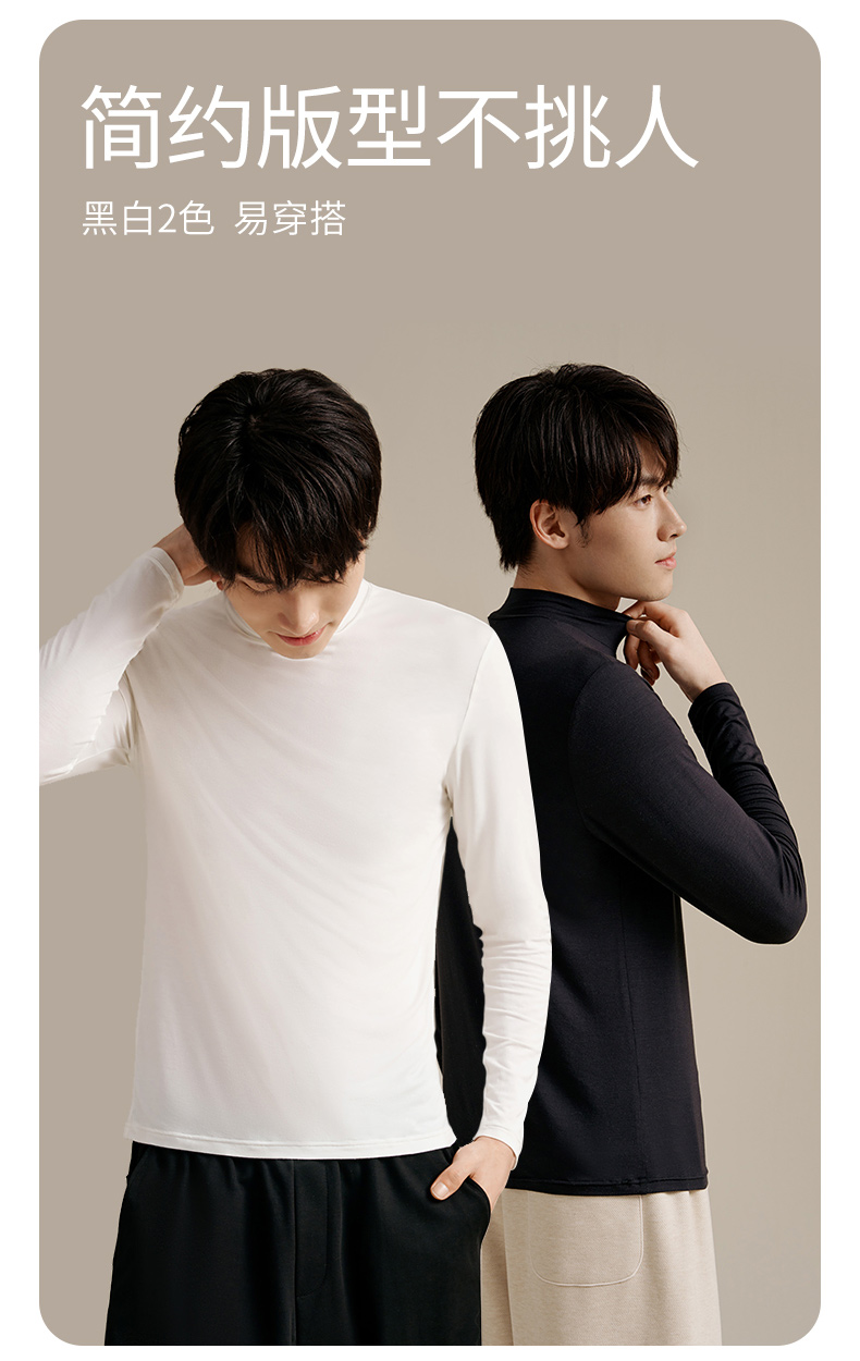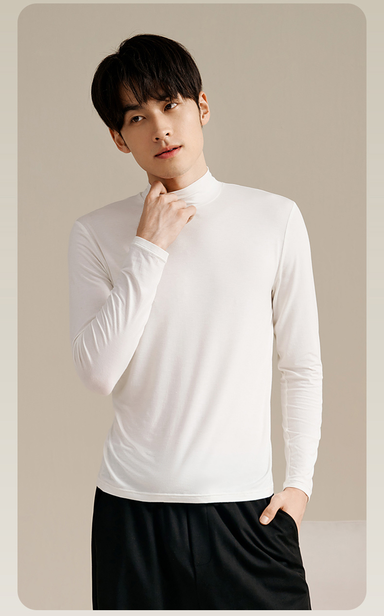 【弹弹蚕丝肌肤衣】金三塔桑蚕丝莫代尔男士上衣半高领弹力打底衫 NZMEC720