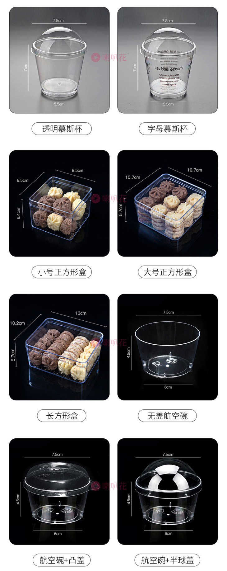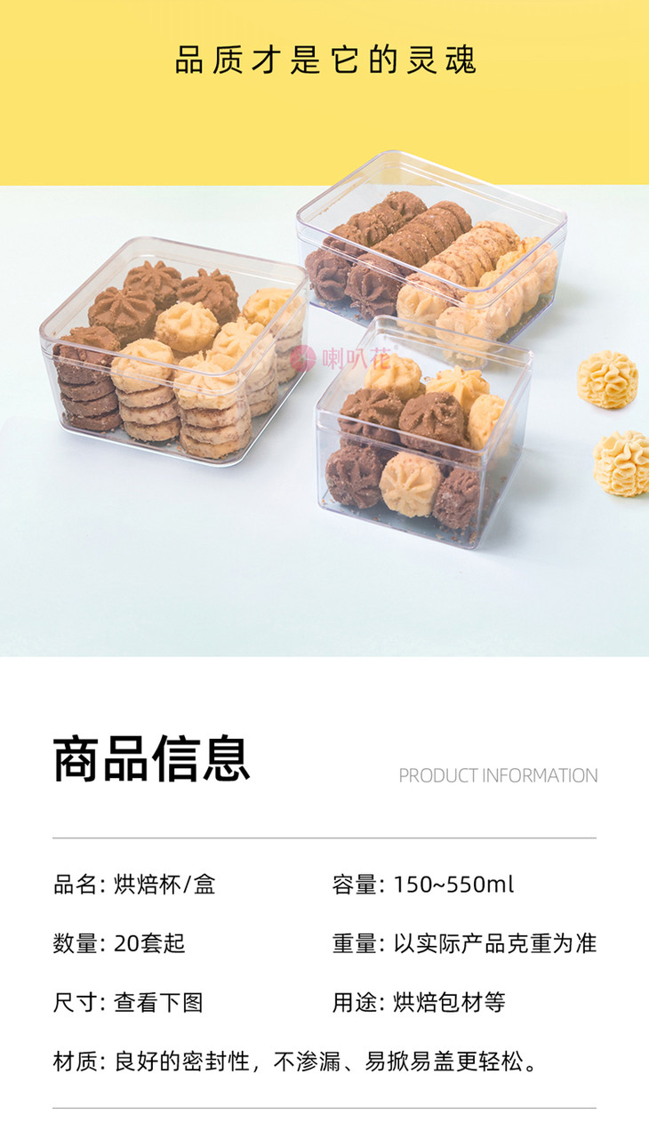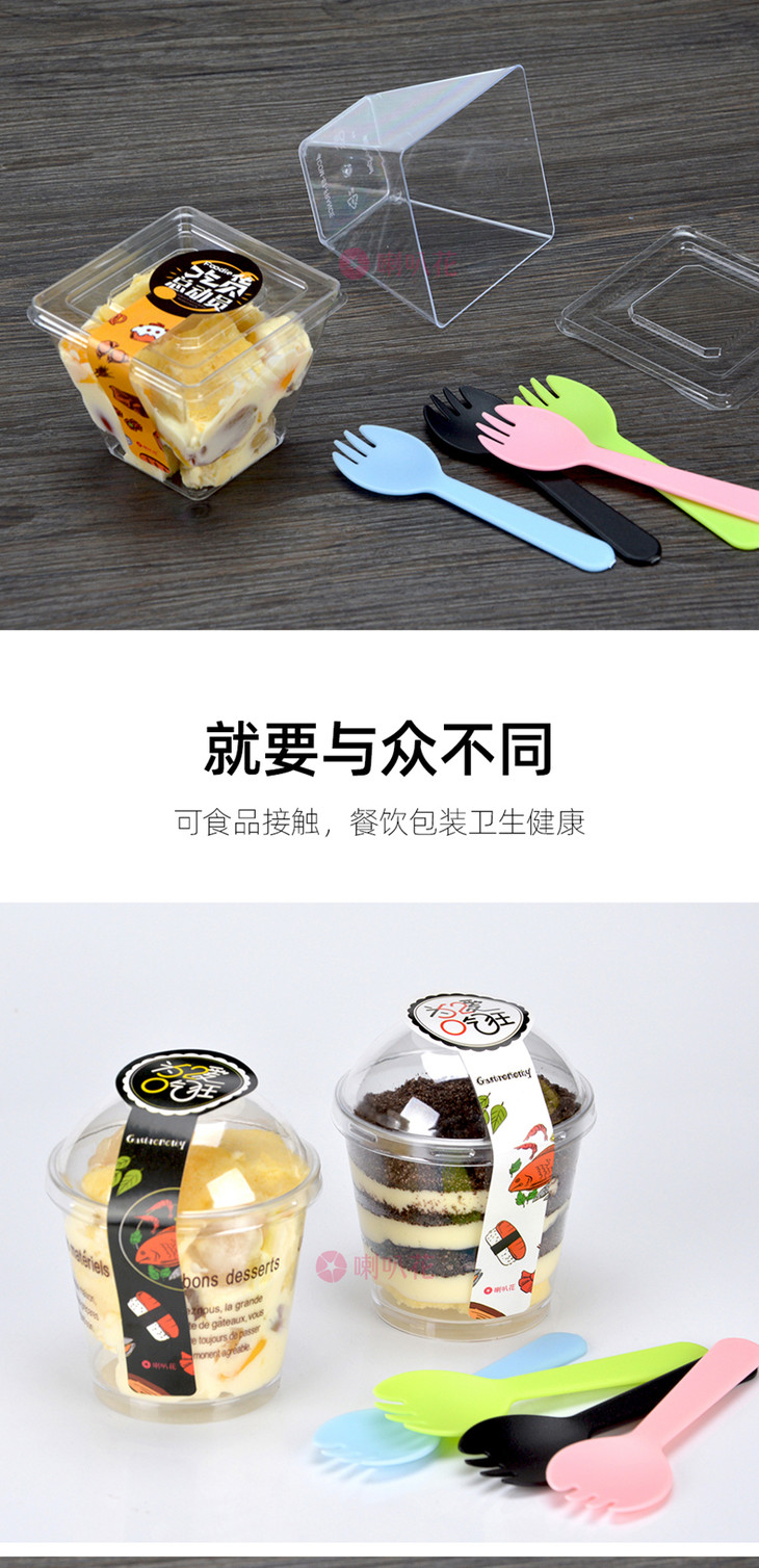喇叭花280ml一次性千层水果蛋糕盒709ml方形豆乳水果盒带盖饼干送贴纸