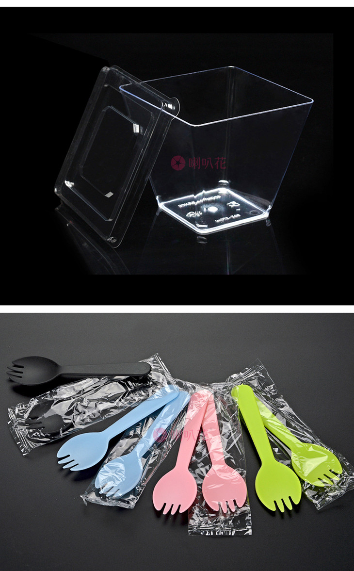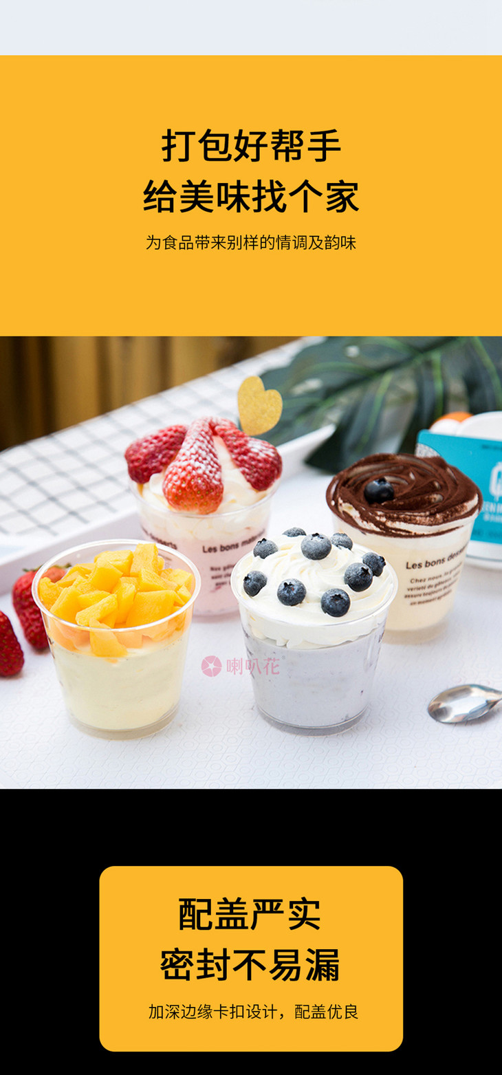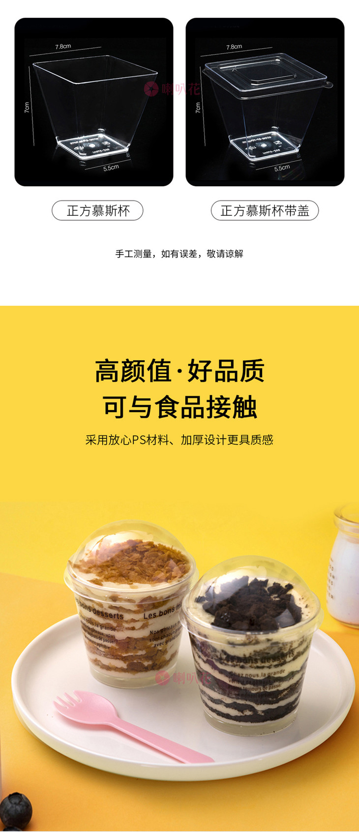喇叭花280ml一次性千层水果蛋糕盒709ml方形豆乳水果盒带盖饼干送贴纸