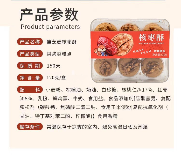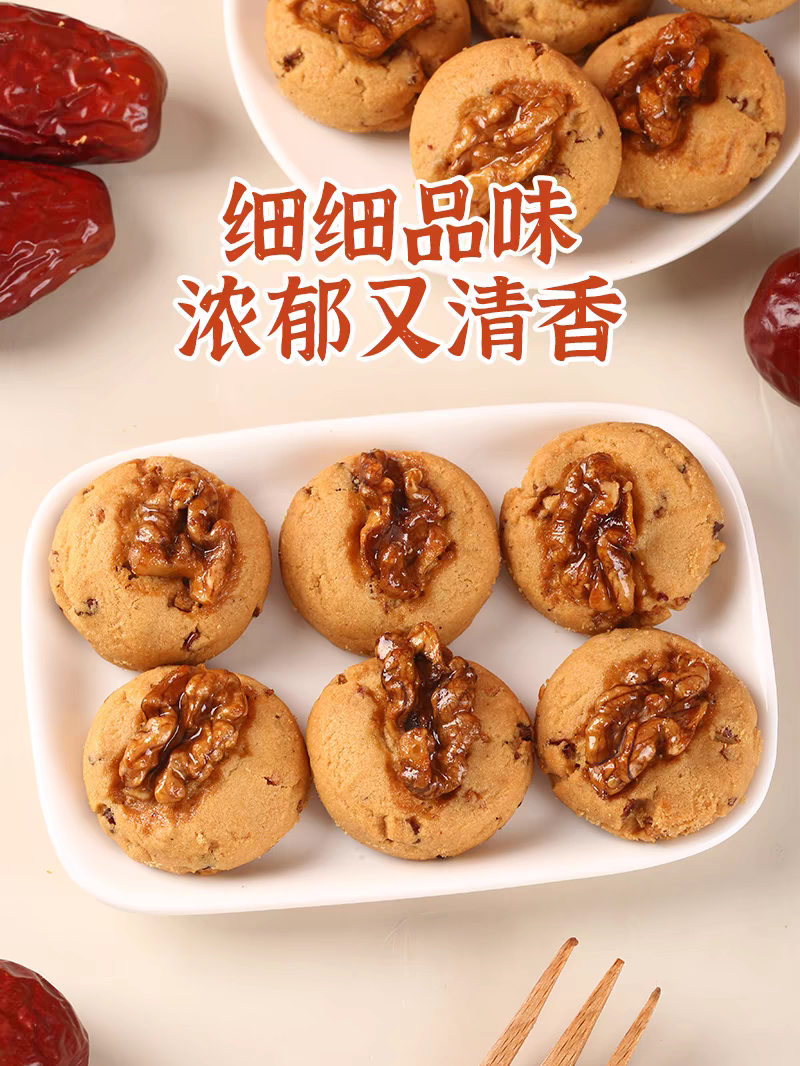桂香苑红枣核桃酥饼干坚果整颗核桃仁手工中式糕点办公室休闲零食