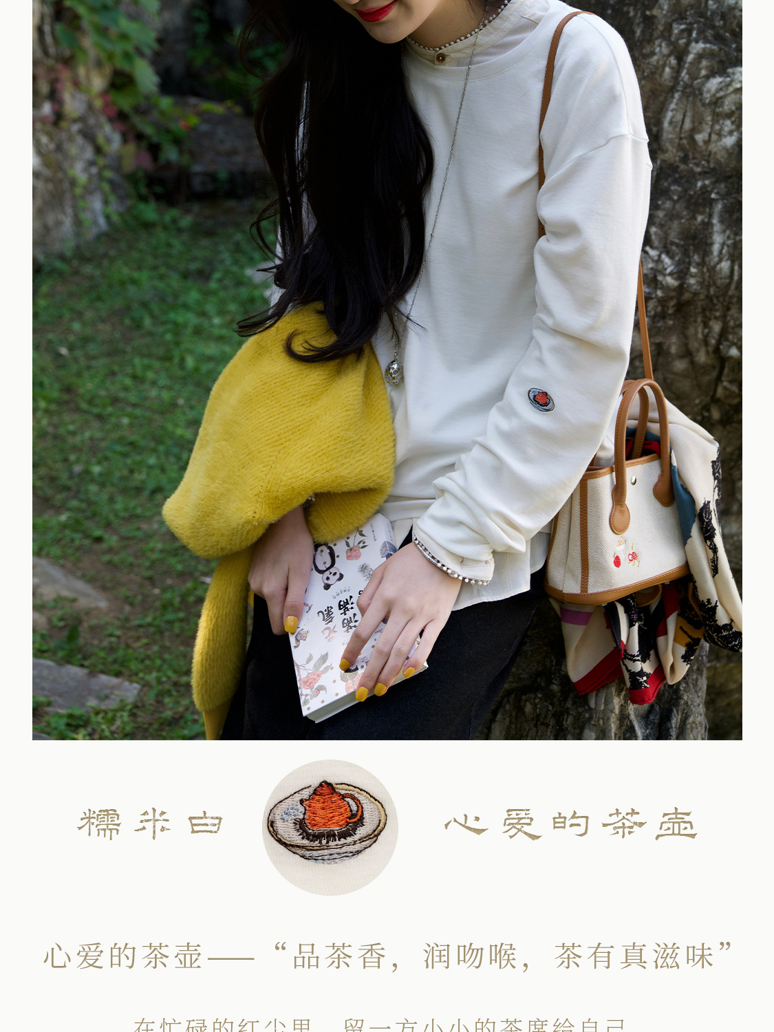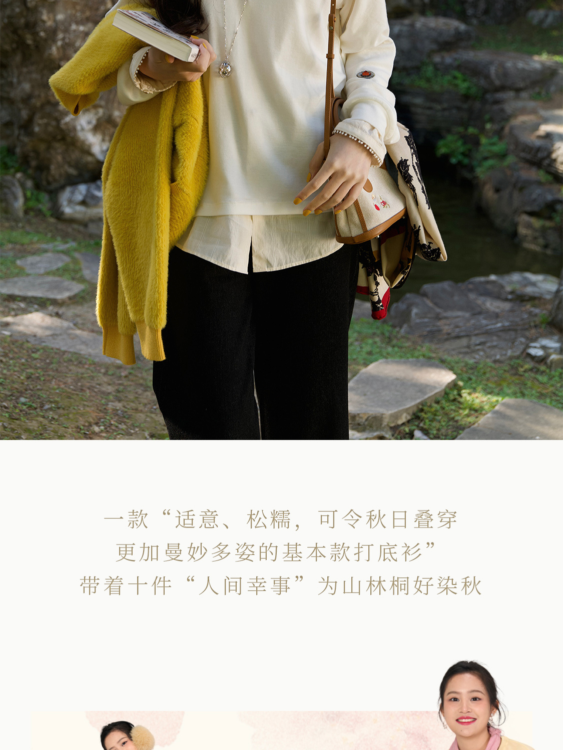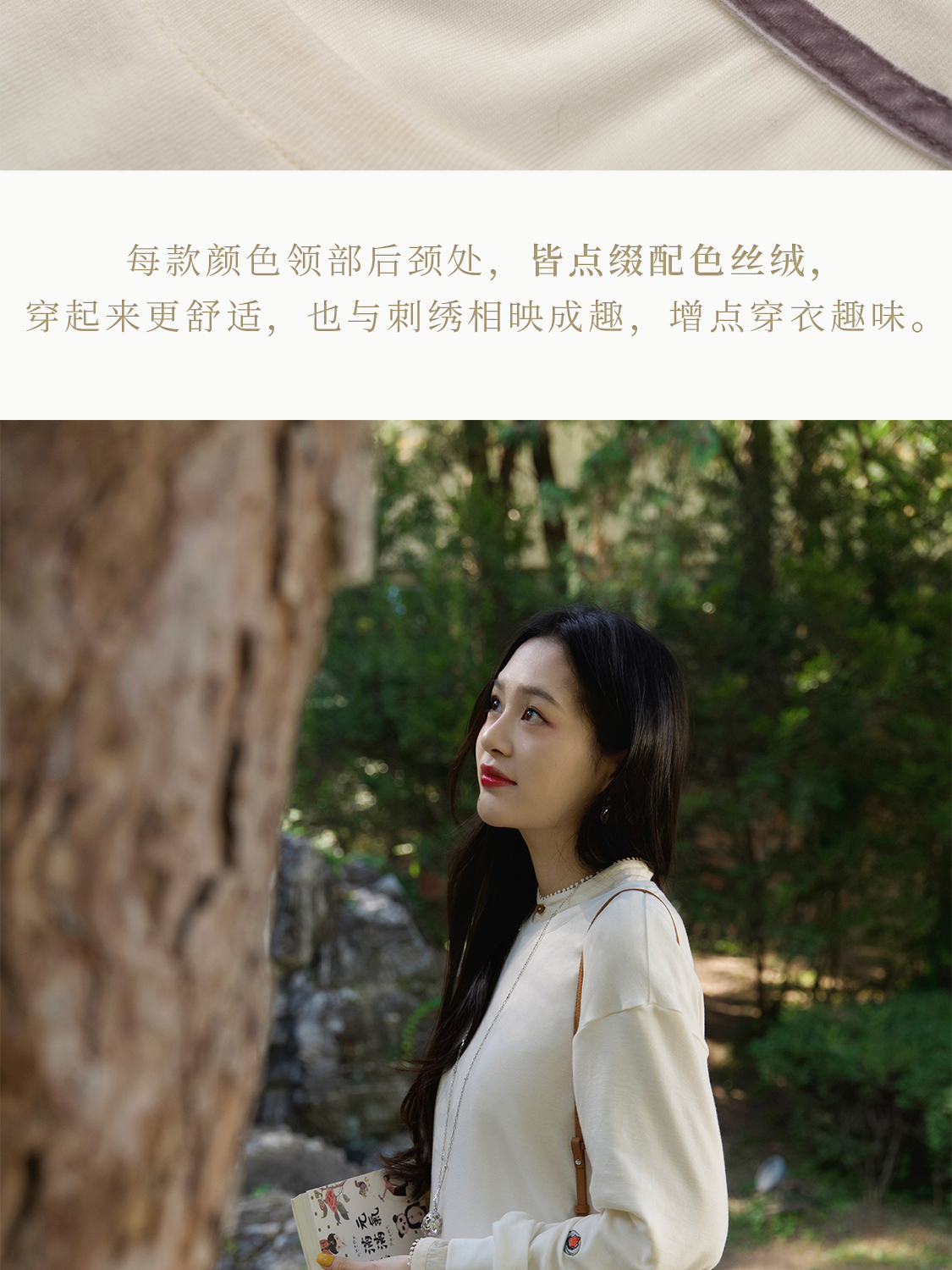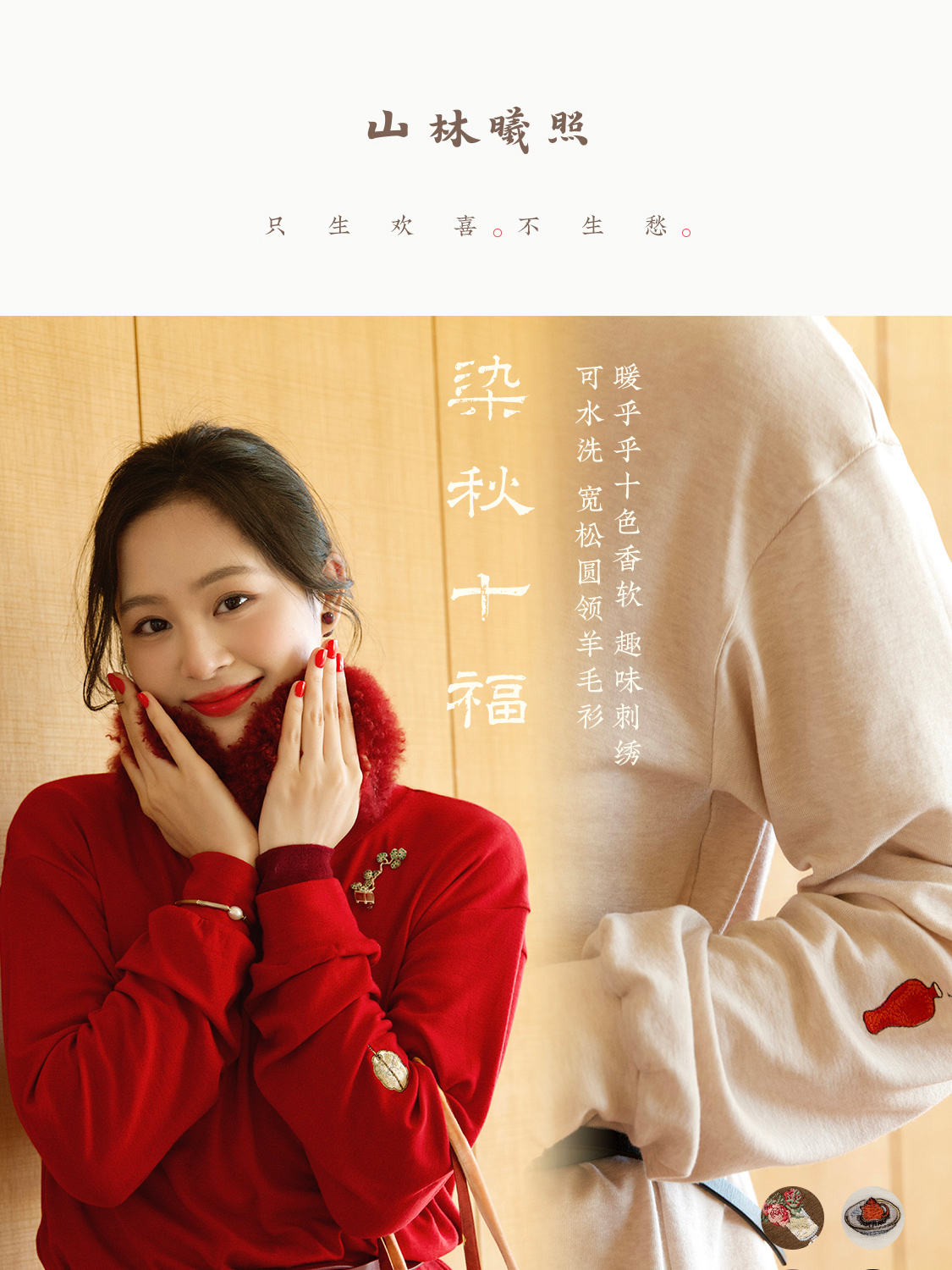 染秋十福 暖乎乎十色香软 趣味刺绣 可水洗宽松圆领羊毛衫