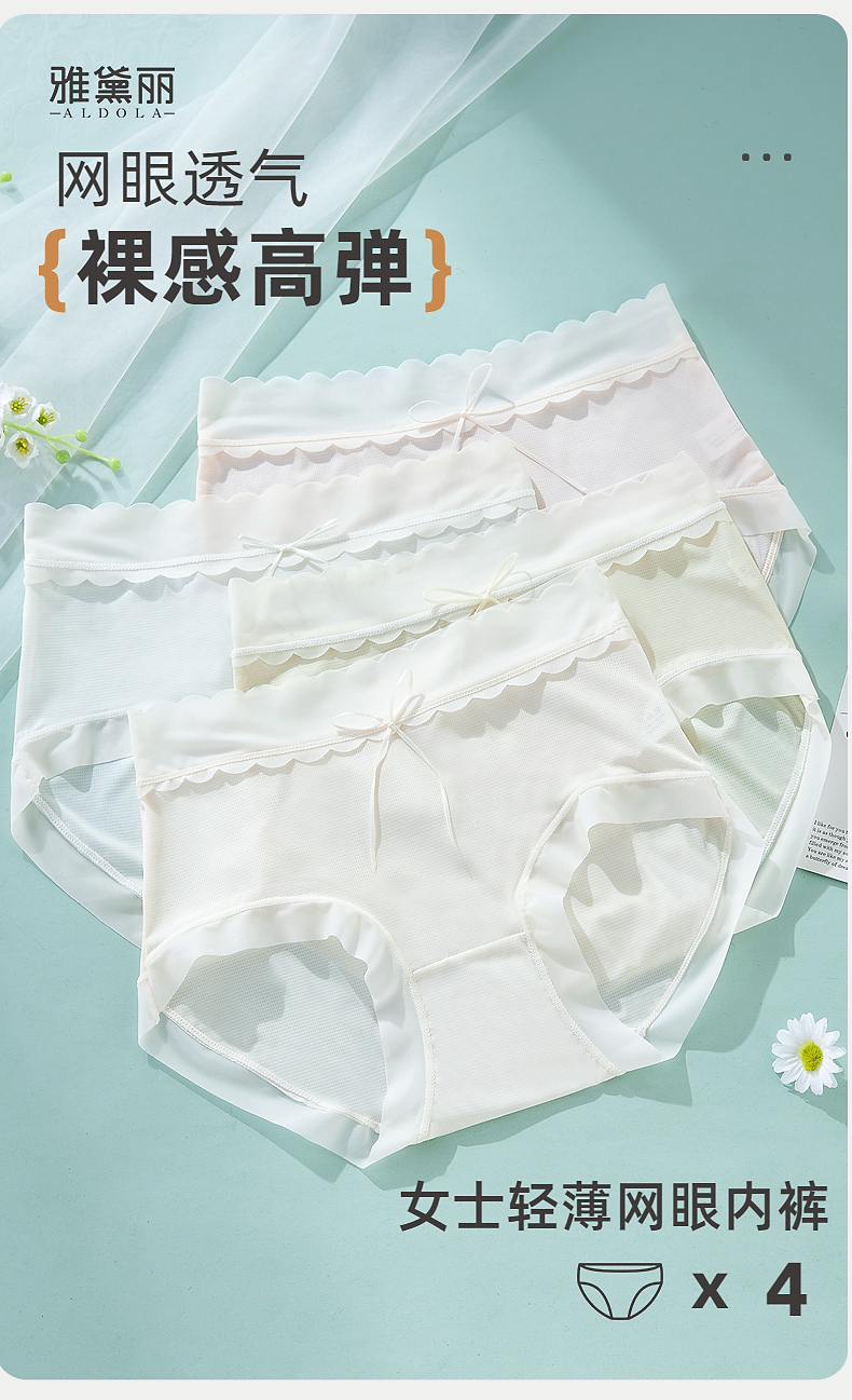 雅黛丽无痕内裤女高弹裸感超薄网眼夏季薄款女士三角裤衩2025新款