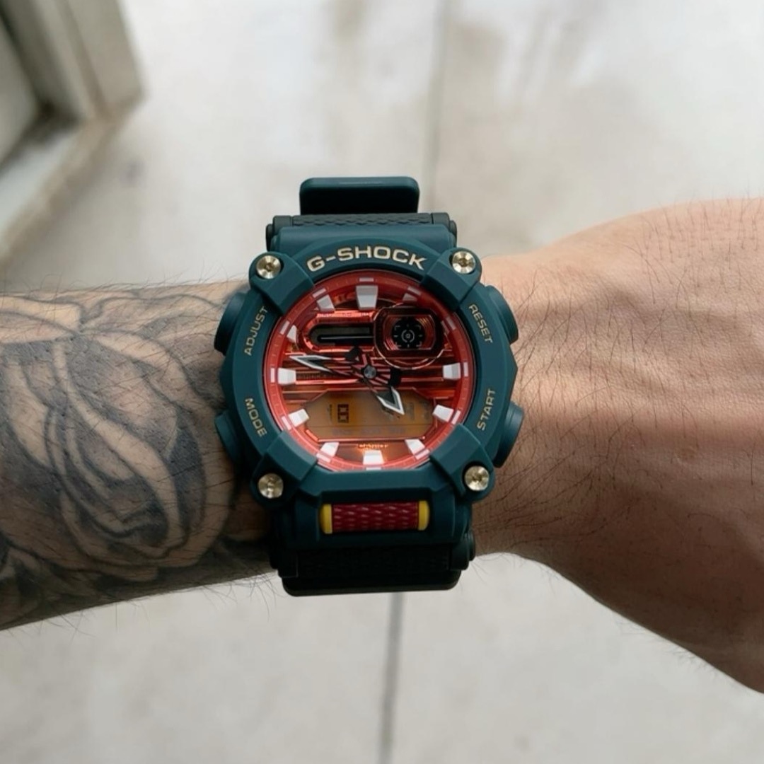 GA-900DBR-3APFL 表身覆盖青龙之青 ,以亮眼橙色塑造表盘,表款整体宛如一条腾飞的巨龙。 将坚韧之力注入腕间,瞬间释放潮酷个性。