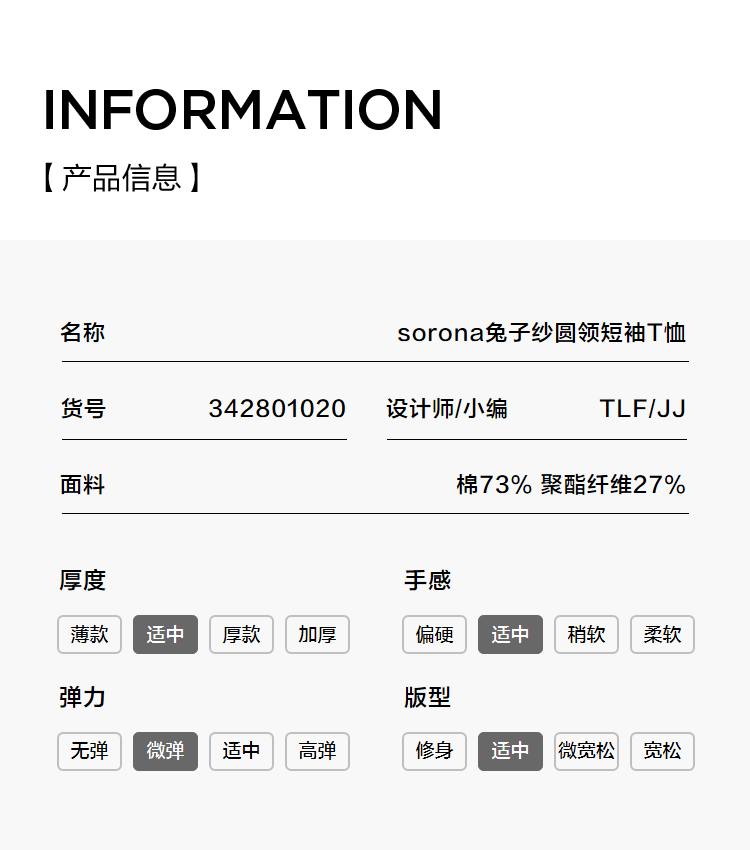 棉仓342801020 -sorona兔子纱圆领短袖T恤