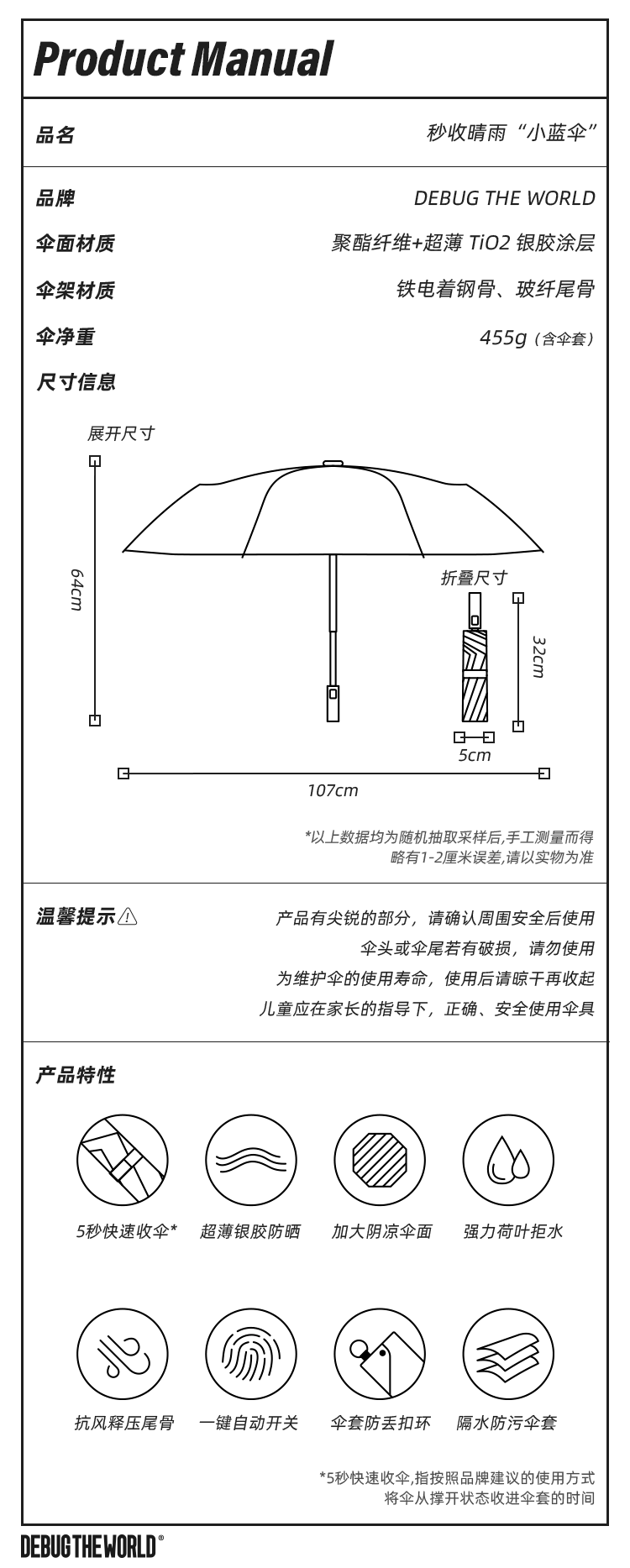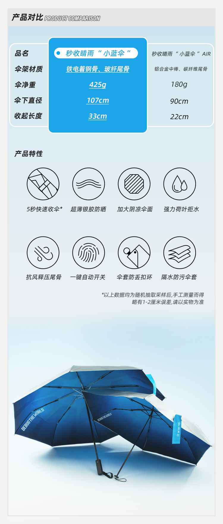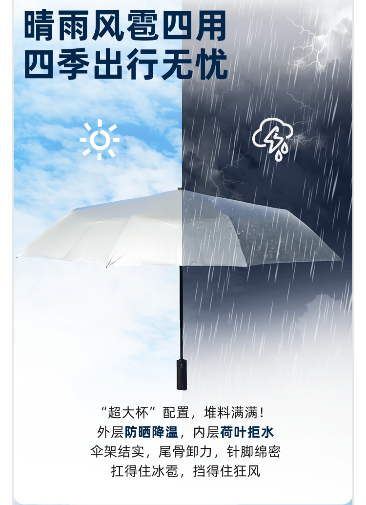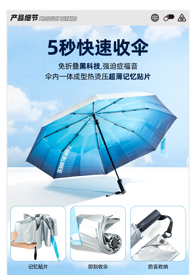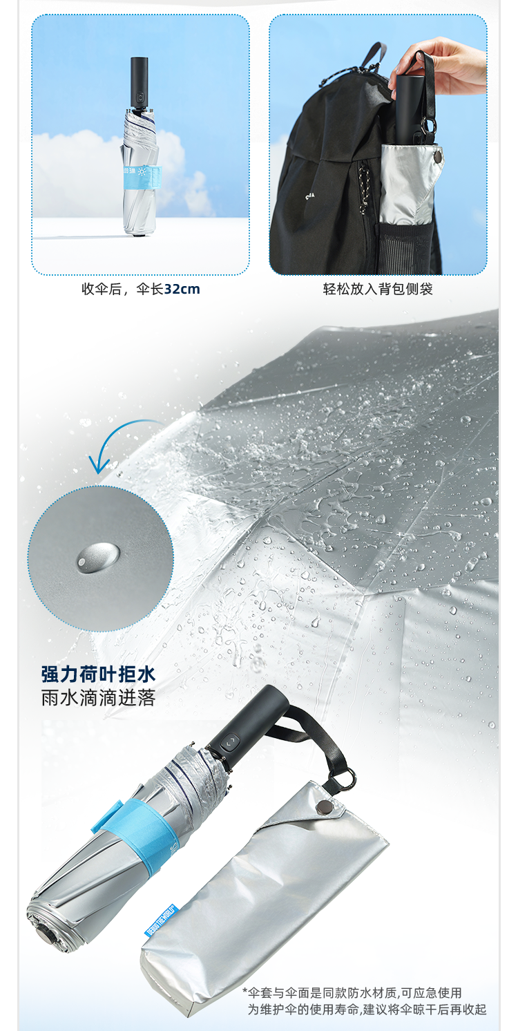 秒收晴雨 “ 小蓝伞 ” 遮雨防晒两用