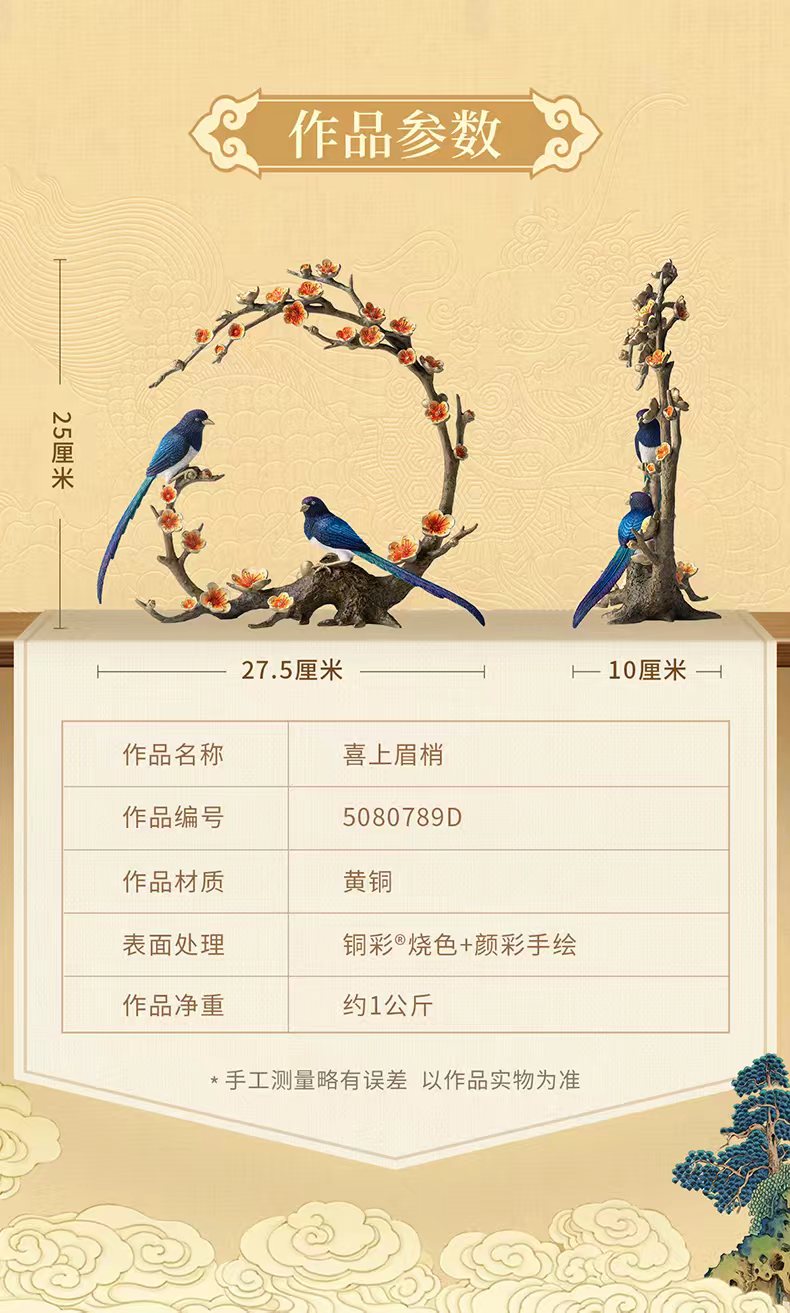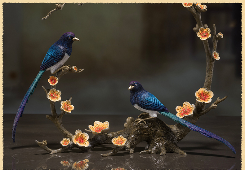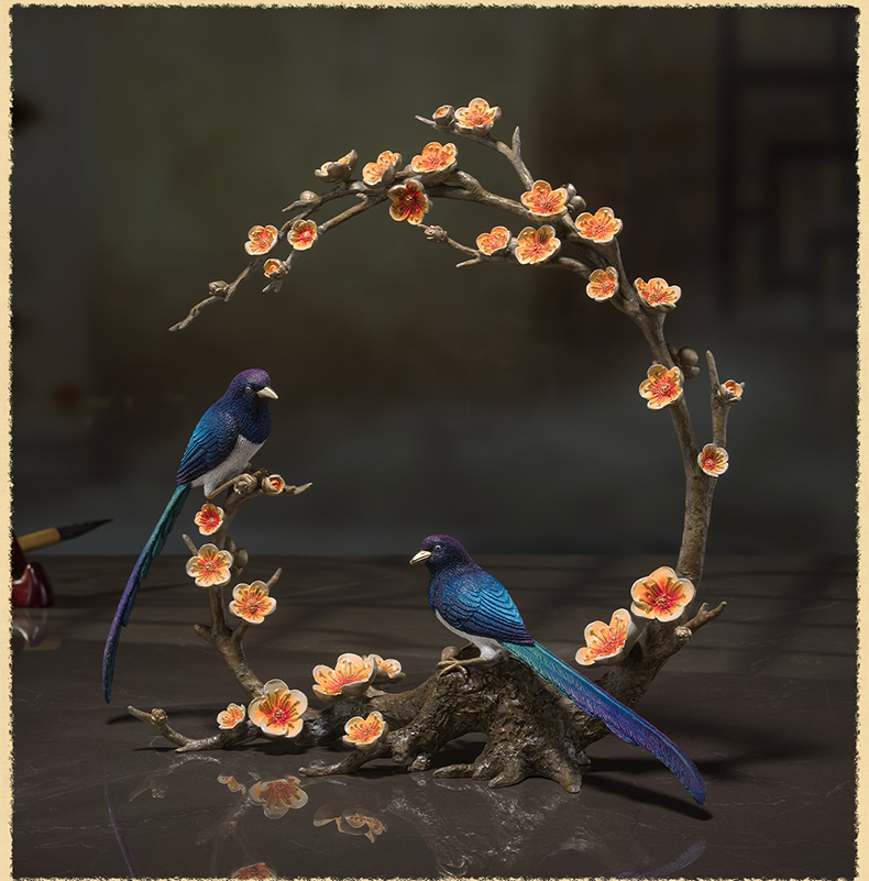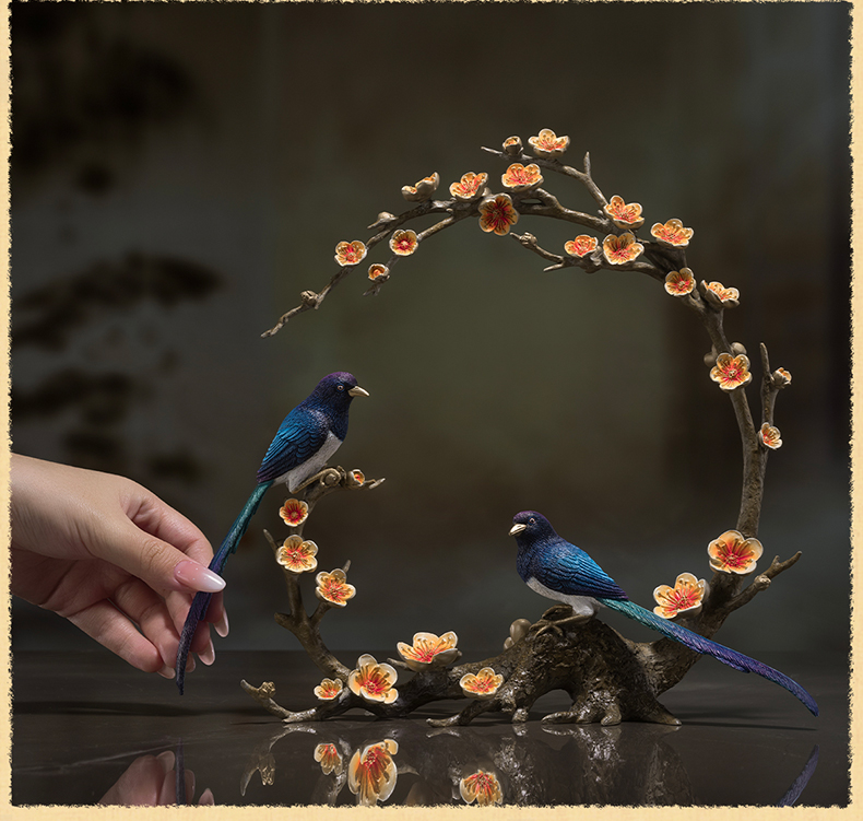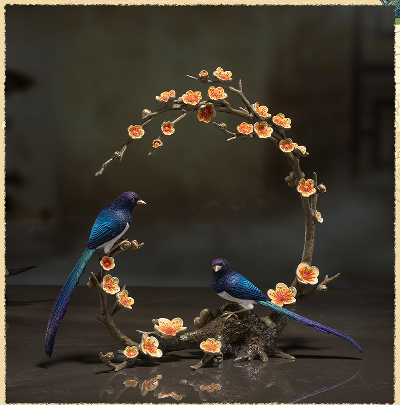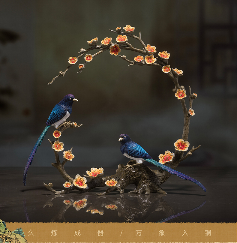 铜师傅《喜上眉梢》客厅桌面喜鹊铜摆件 家居装饰工艺品送礼摆件