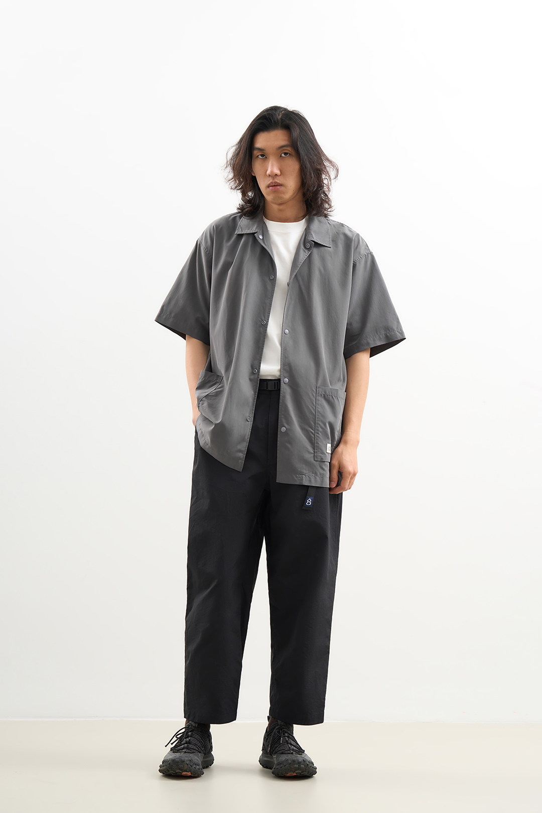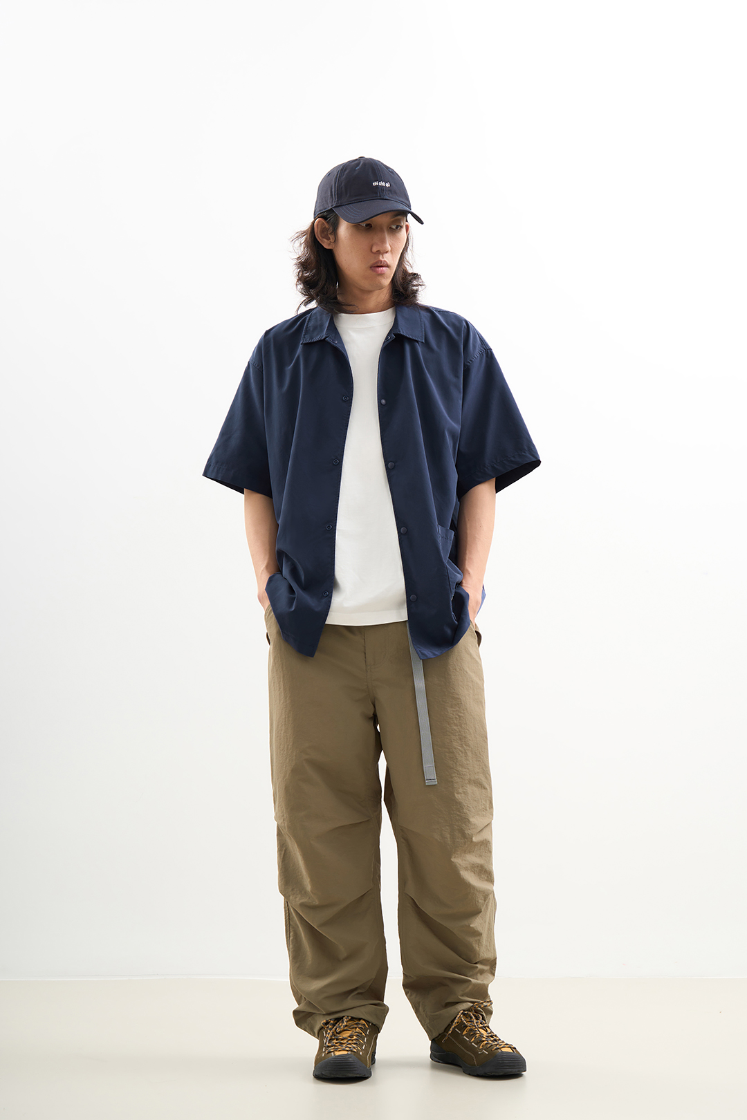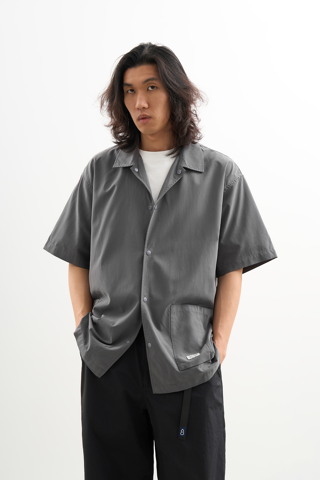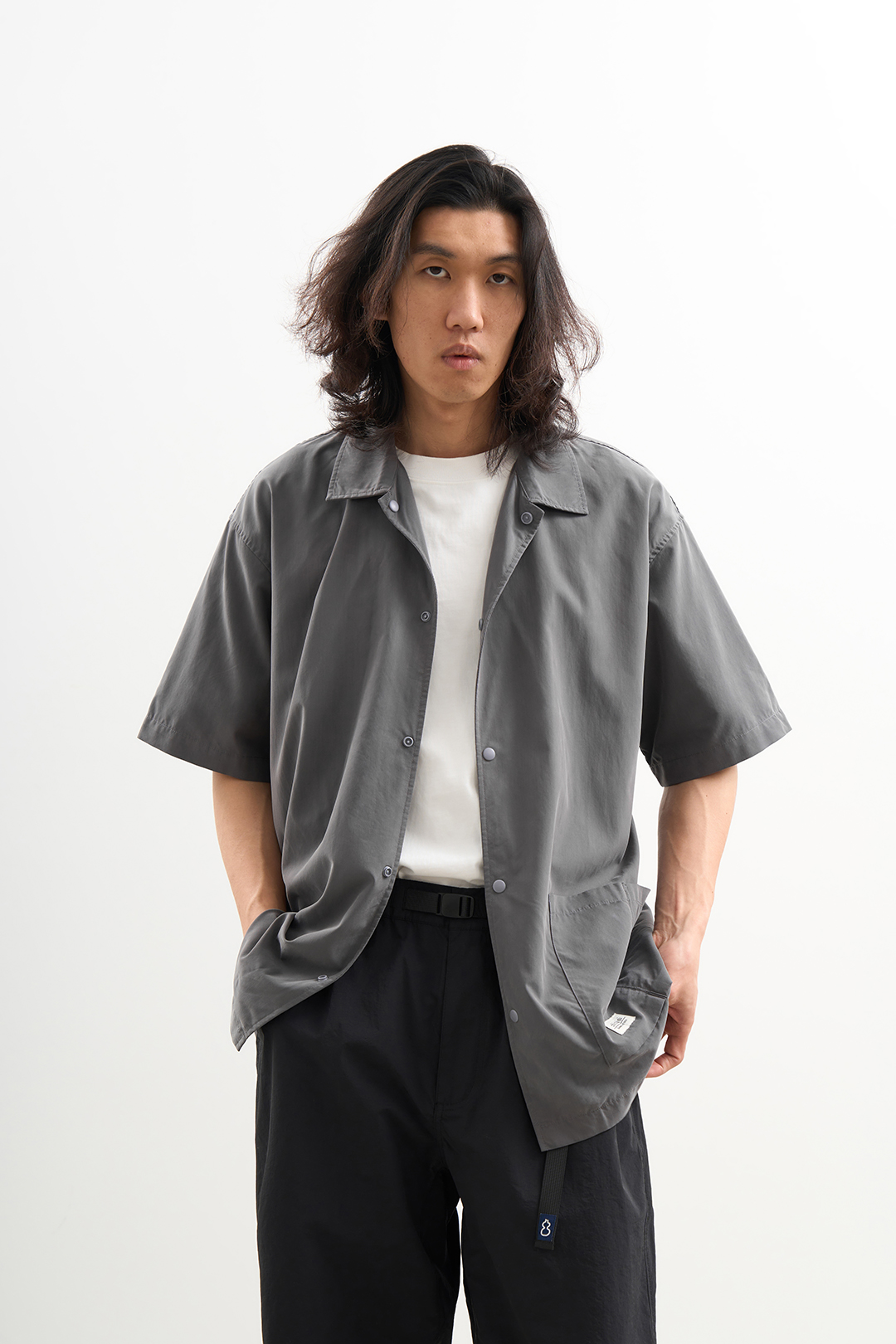 吃茶去chichaqu2024混纺天丝不对称口袋短袖衬衫宽松复古经典休闲
