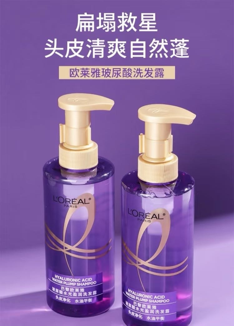 【欧莱雅玻尿酸水光洗发露】头皮黑科技!细软塌,发根容易油,发尾又巨干的发质,高纯度玻尿酸让发根喝饱水头发90°挺立