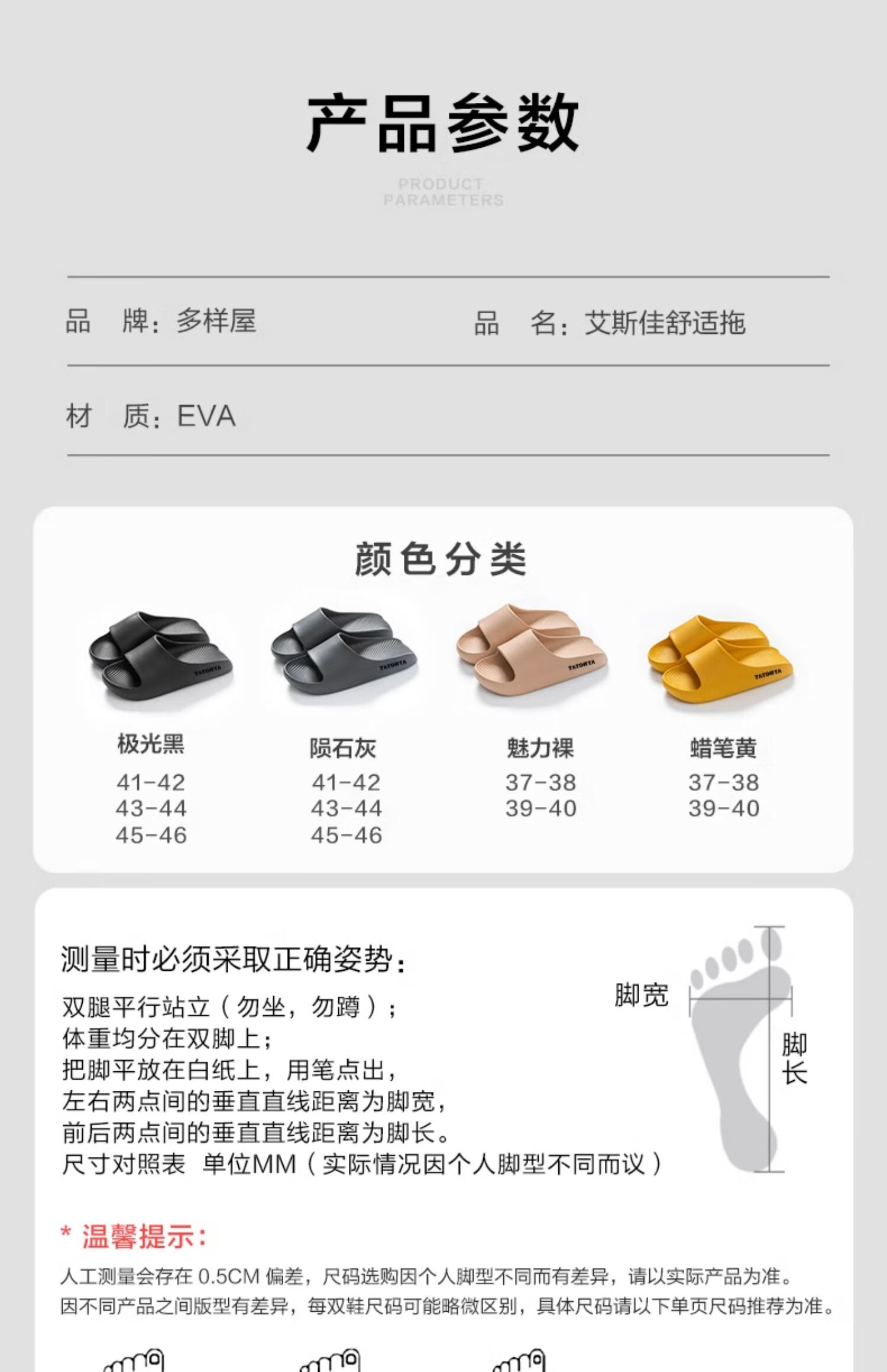 【6F】多样屋(TAYOHYA)艾斯佳浴室拖鞋夏季男女家居室内厚底拖高级感