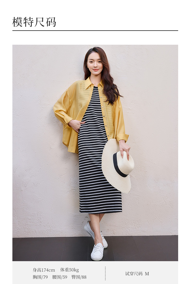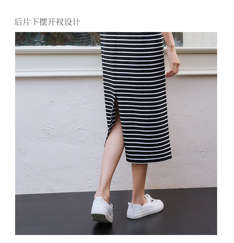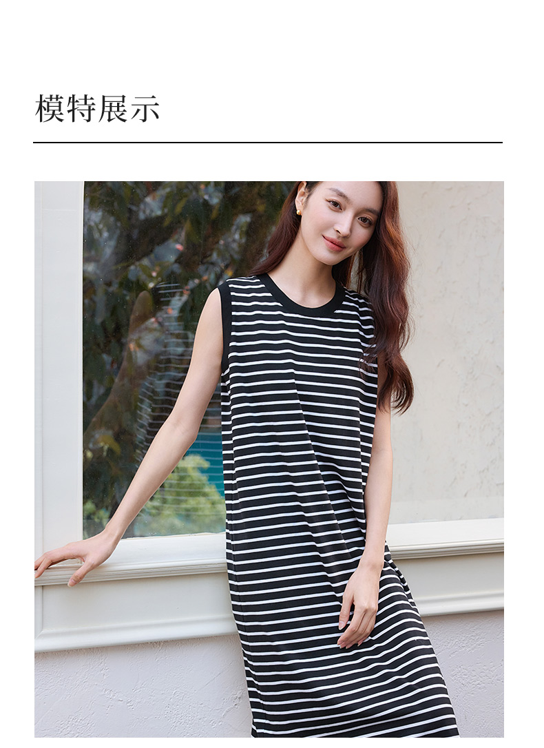 玳莎黑白条纹圆领无袖连衣裙2025新款夏季百搭直筒弹力针织背心裙 FB35001