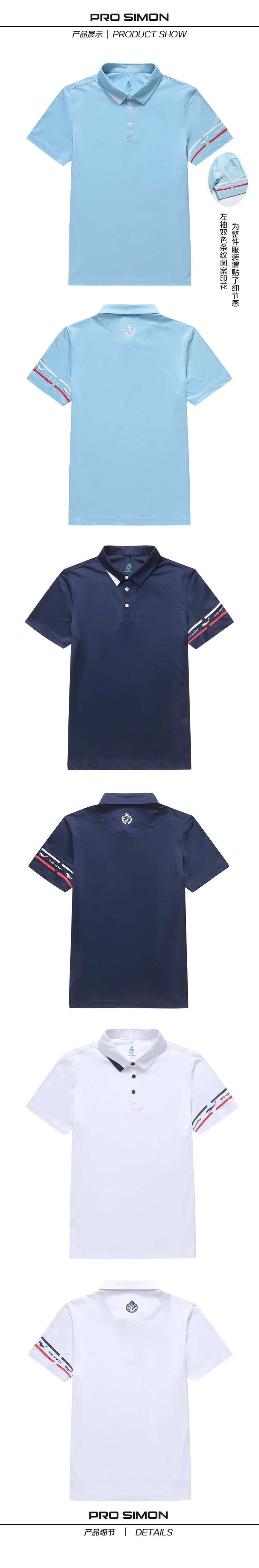BLS-005A(PROSIMON高尔夫男款春夏袖口印花短袖翻领Polo衫)