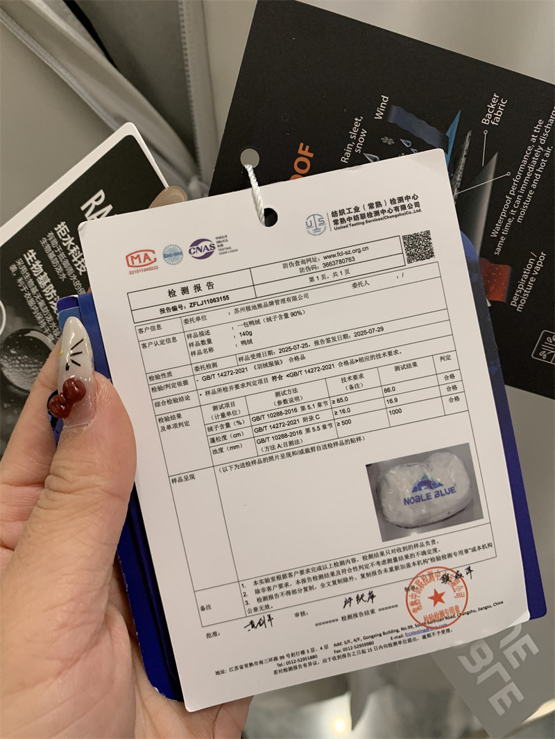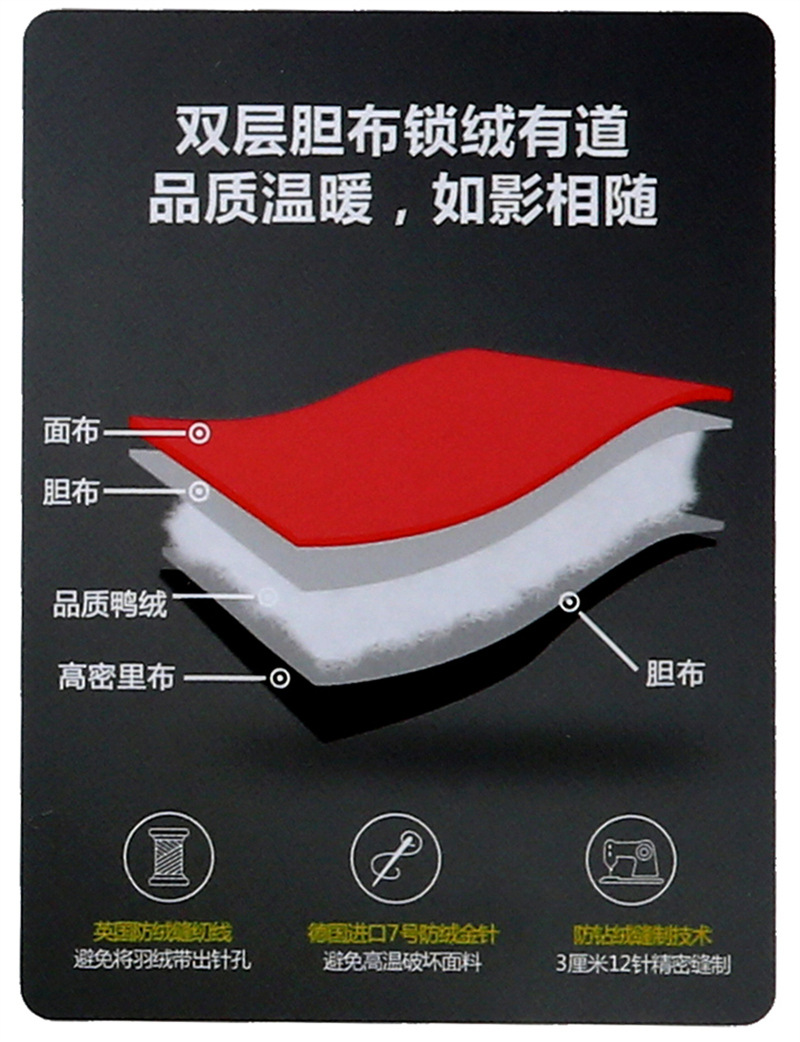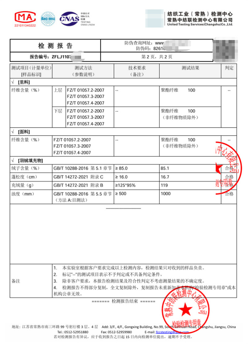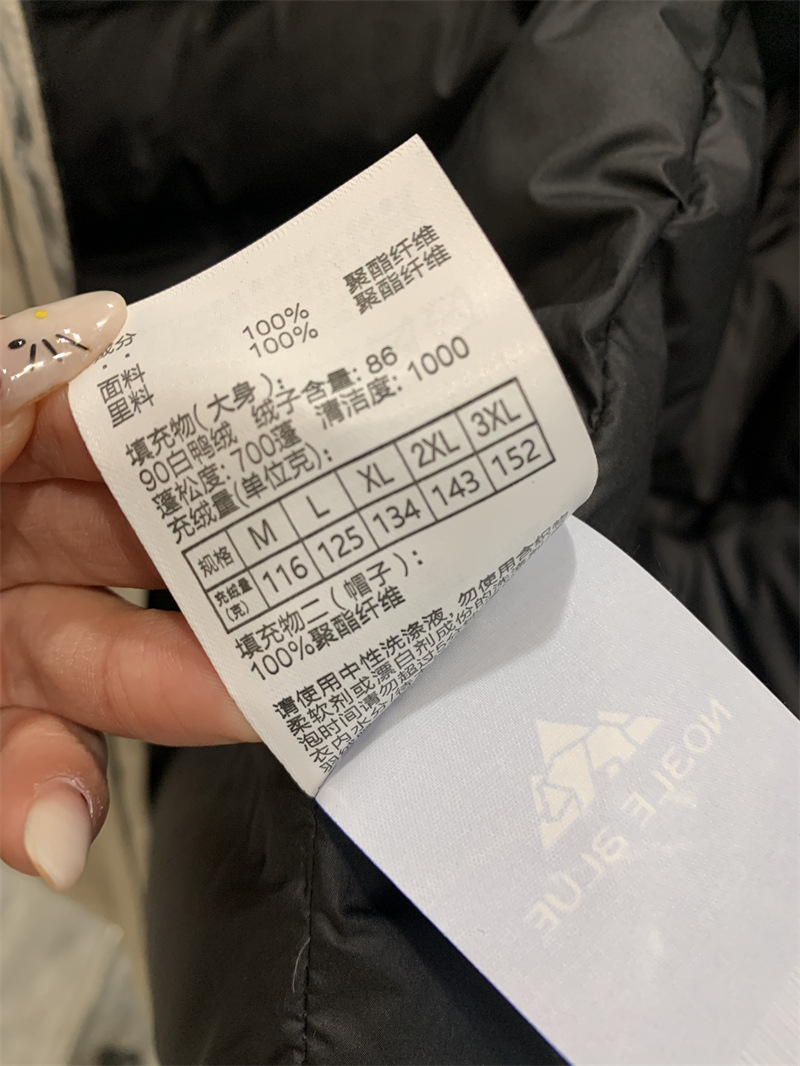 填充物:(大身):90白鸭绒(绒子含量86%)