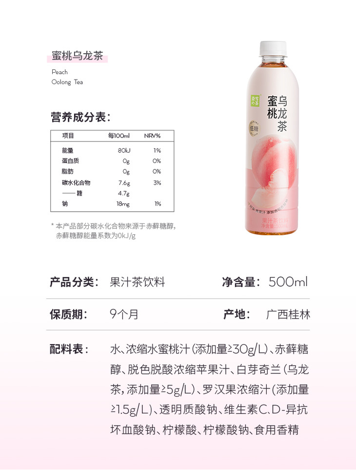 奈雪果茶蜜桃乌龙茶450ml