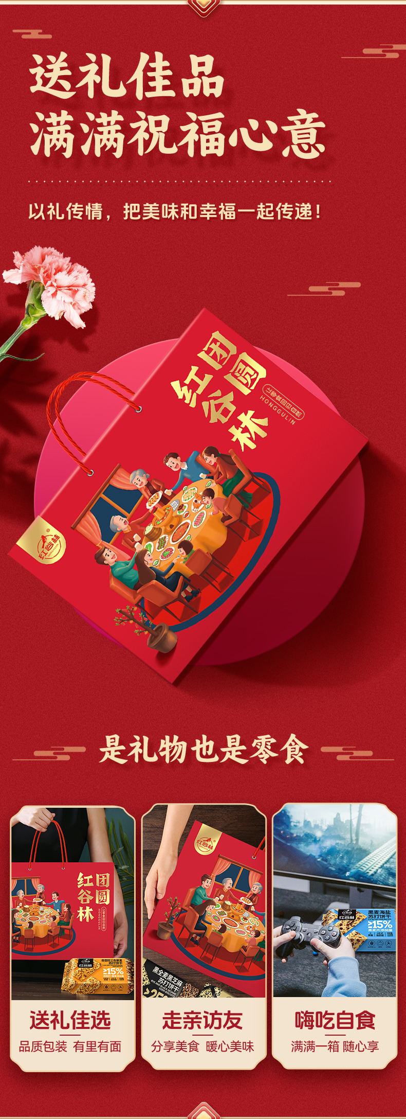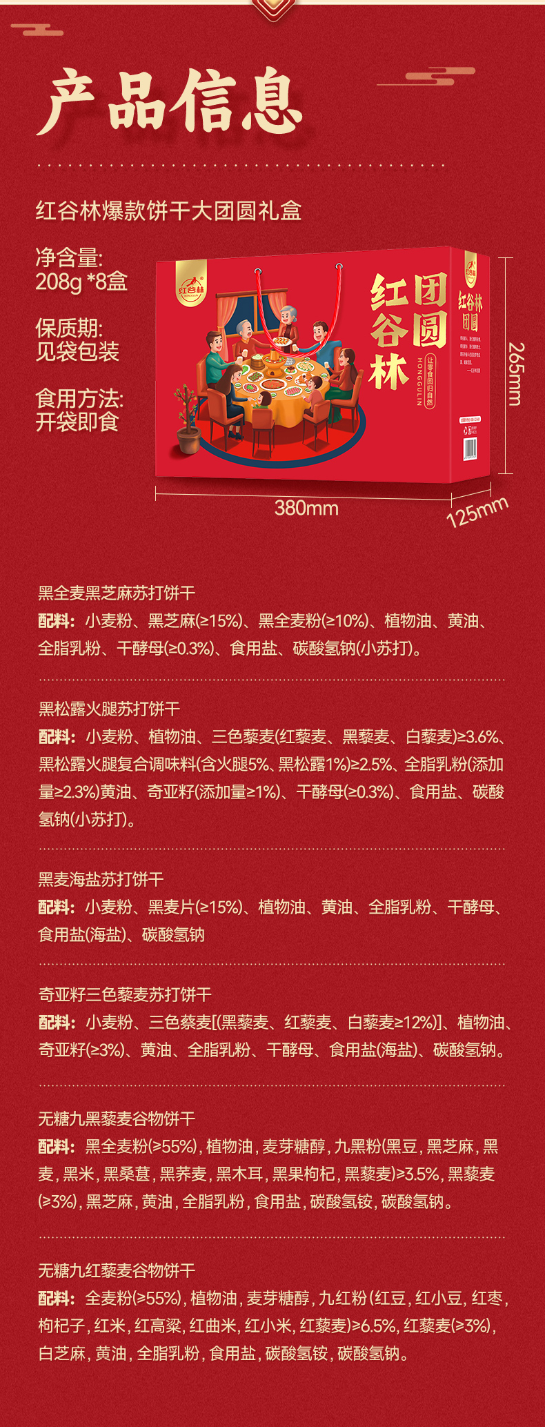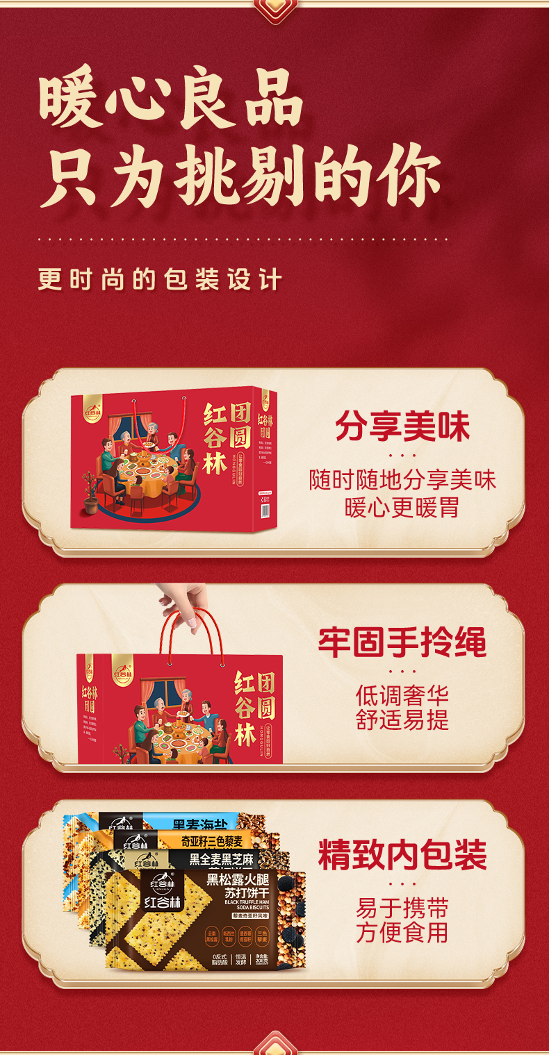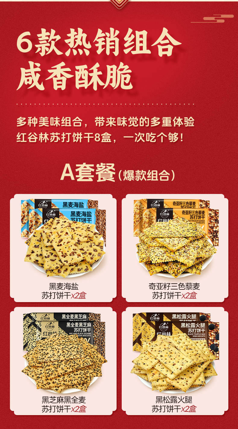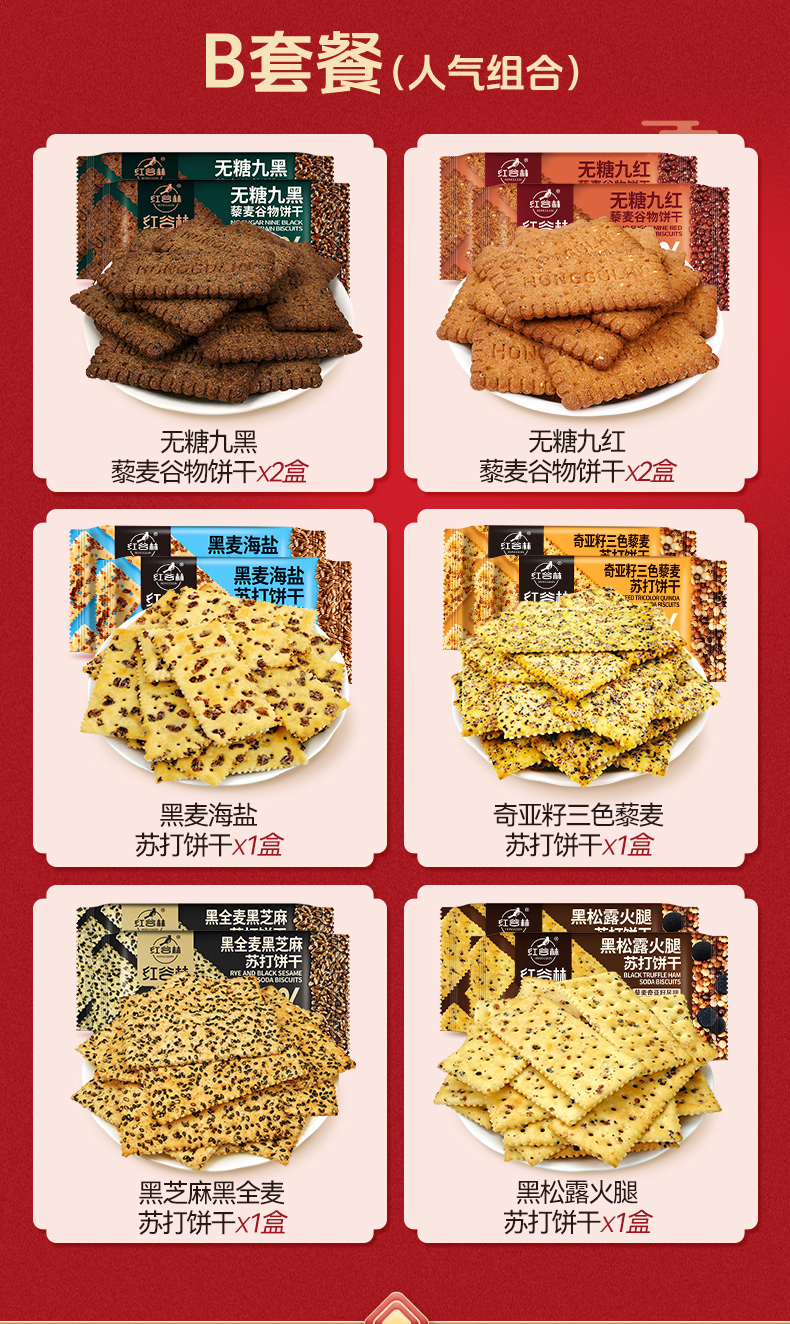 红谷林苏打饼干礼盒黑麦海盐奇亚籽三色藜麦黑芝麻黑全麦过年节礼盒送礼