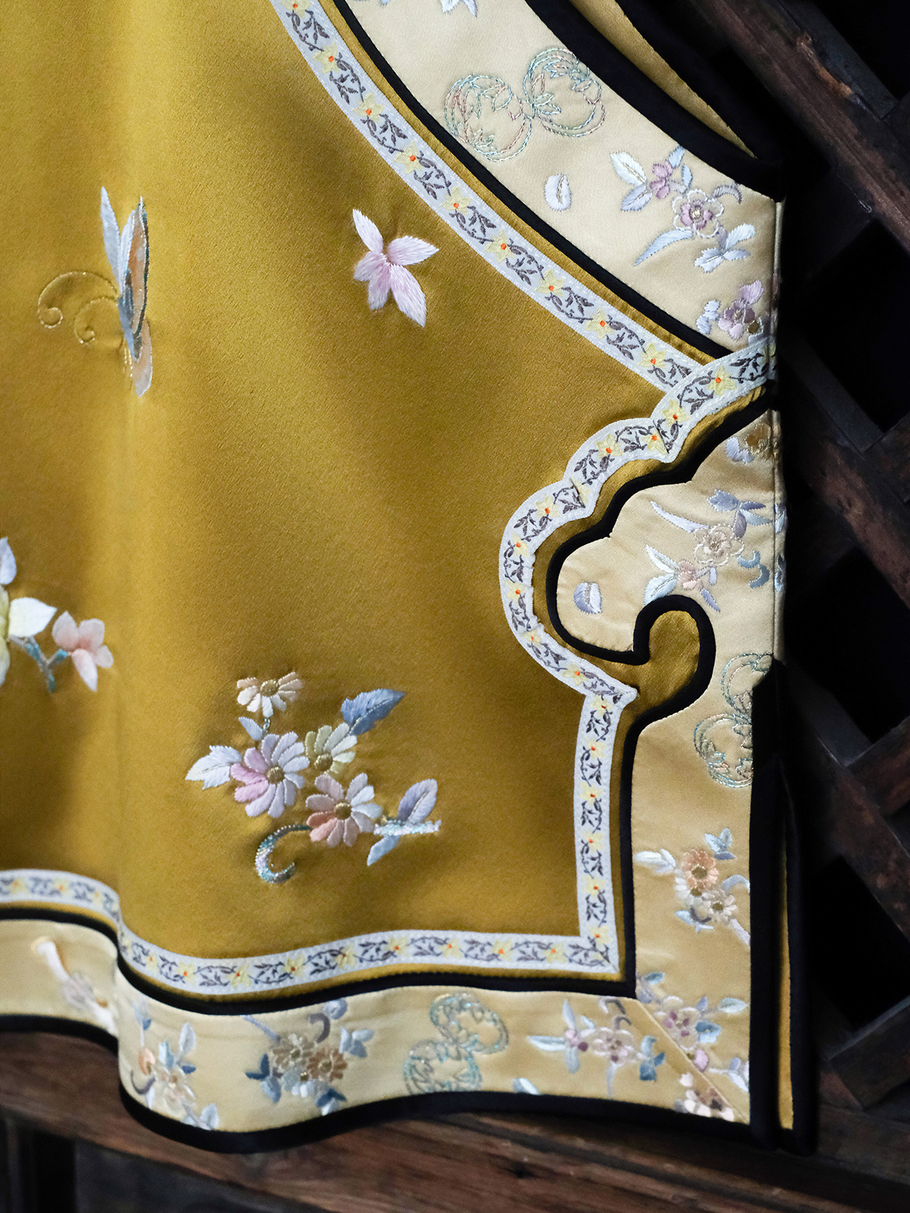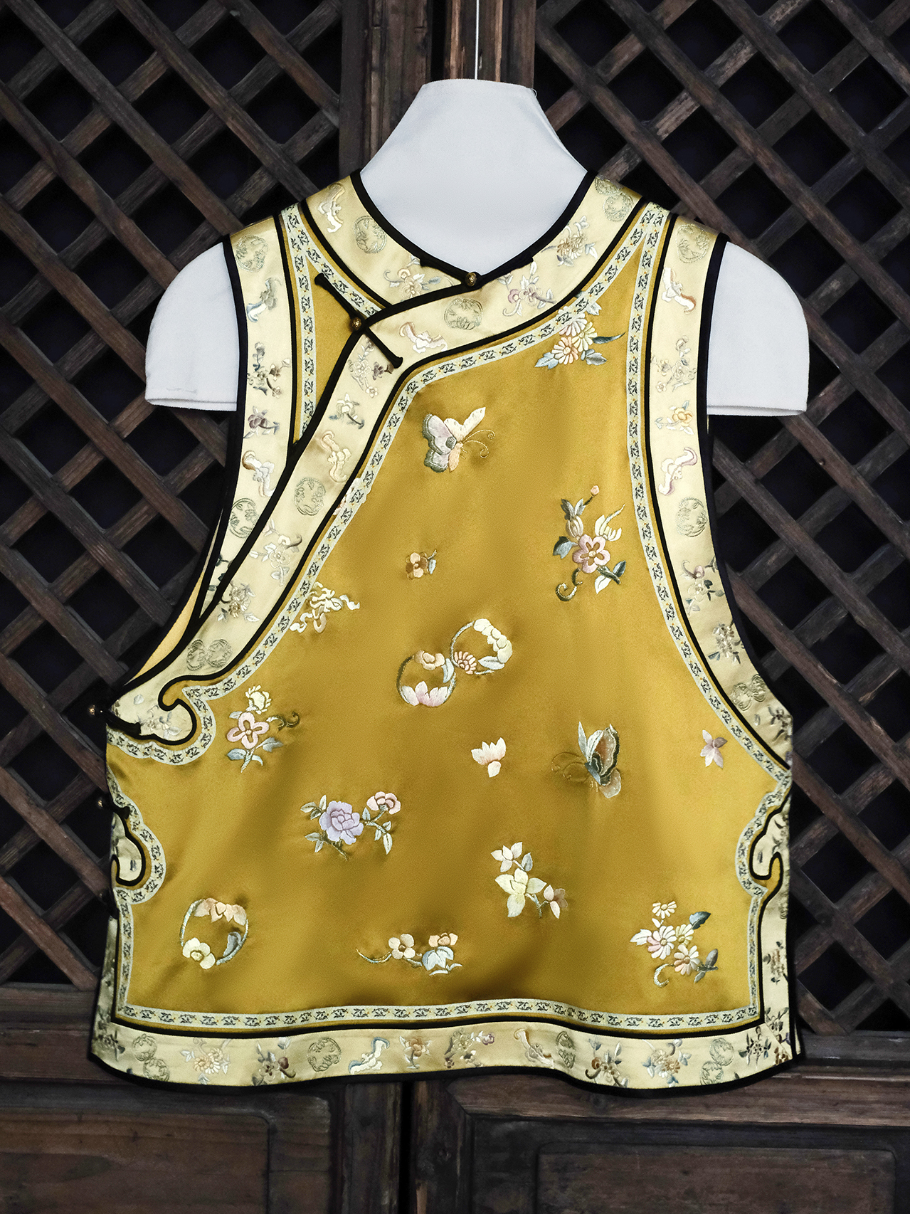 盛唐牡丹大师系列| 重工蹁跹蝶翼斜襟马甲-姜黄