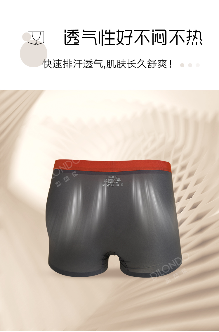 迪兰多 60支冰丝棉舒适高弹舒适透气撞色边男士内裤 22903701