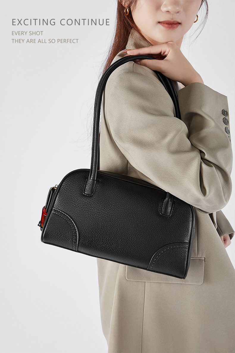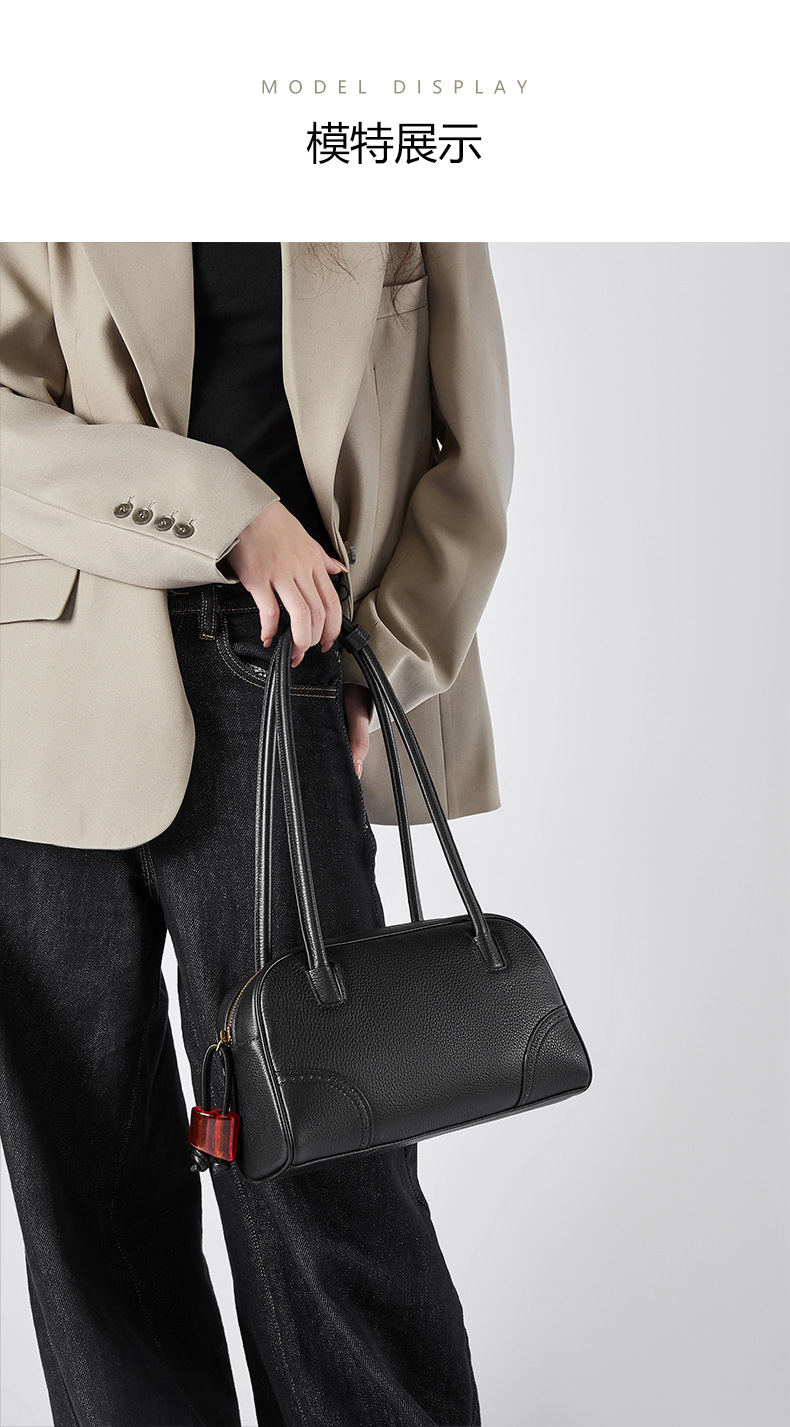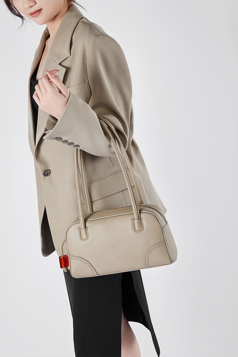 【预售3天】时尚大容量女包2025新款小众设计手提包头通勤保龄球包D2828