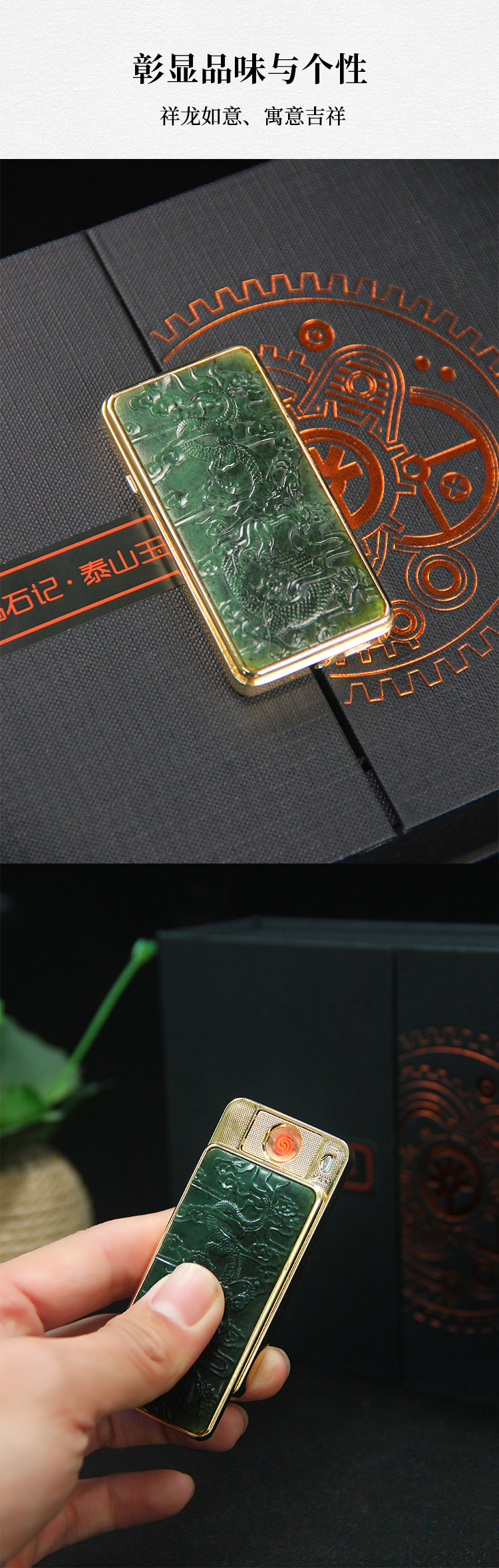 遇石记镶嵌泰山玉原创设计创意打火机个性商务礼品高端防风点烟器