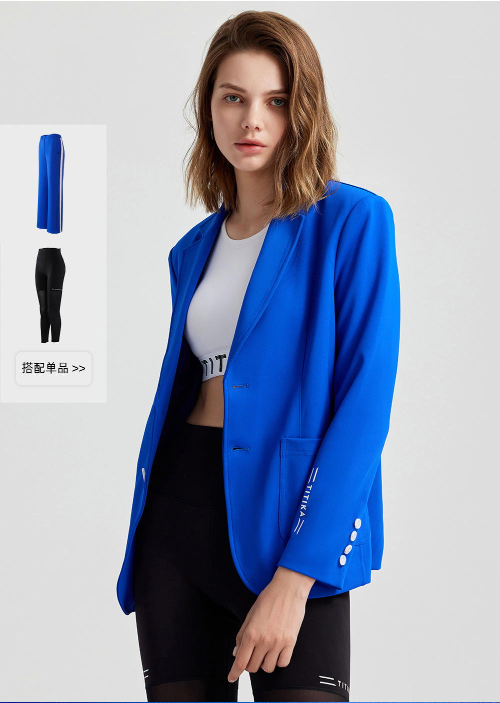 加拿大TITIKA免烫运动西装女柔软舒适易打理时尚蓝色外套23J31062