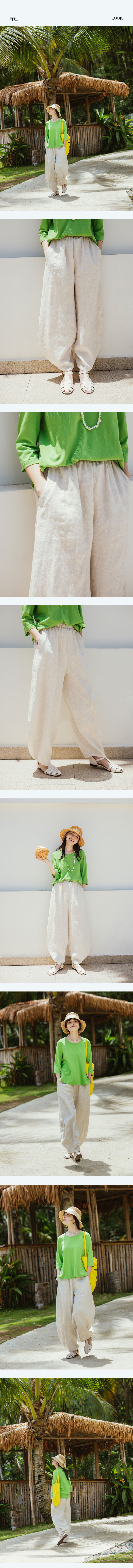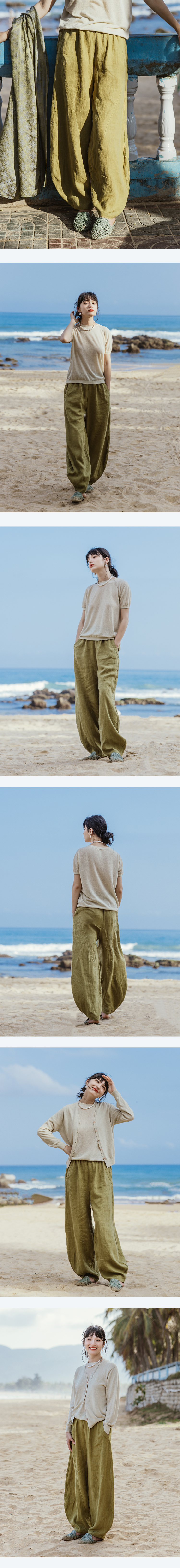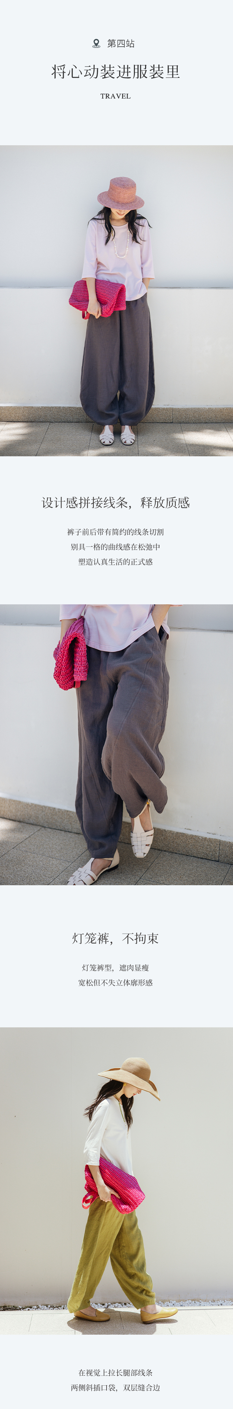 绽放旅行女装349朵/设计感拼接线条高端质感亚麻宽松阔腿灯笼裤
