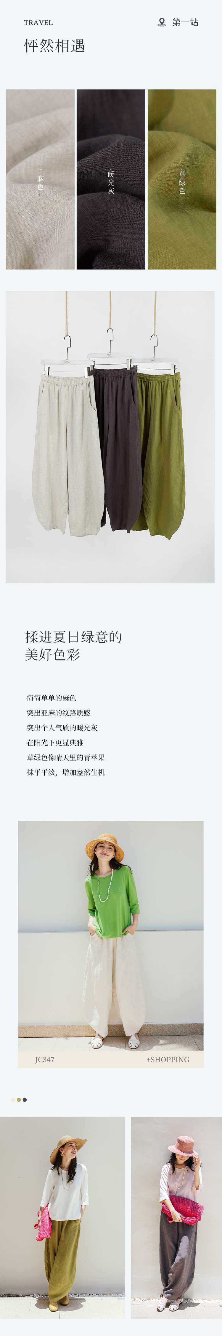 以天然亚麻为载体,融合热烈色彩与自在剪裁为身在城市、心怀远方的女性提供兼具美学与舒适的旅行着装