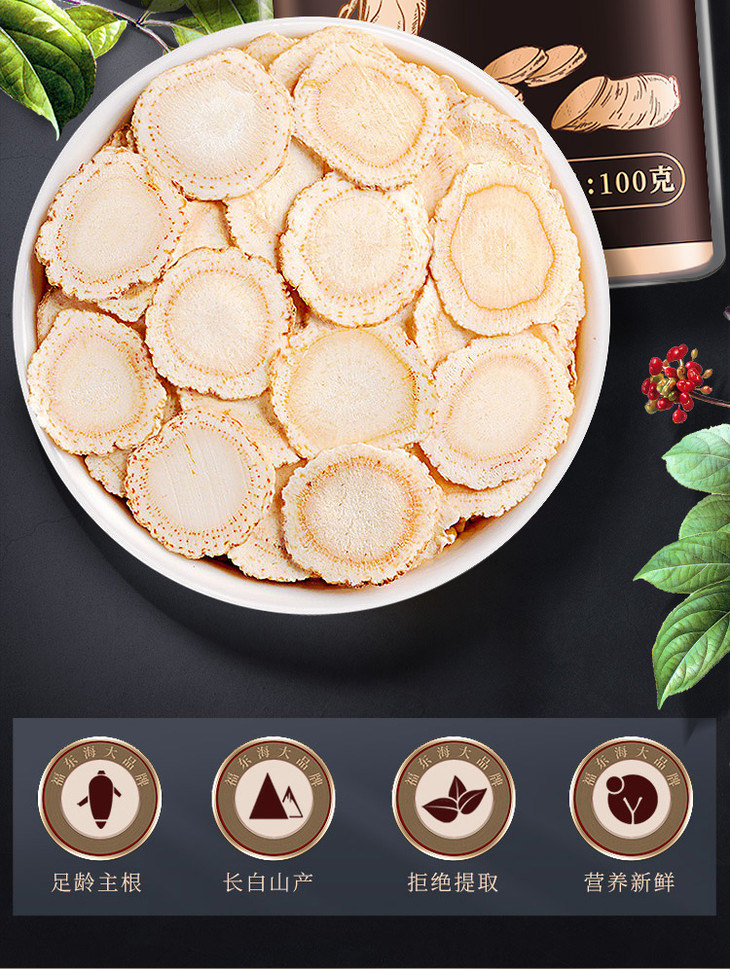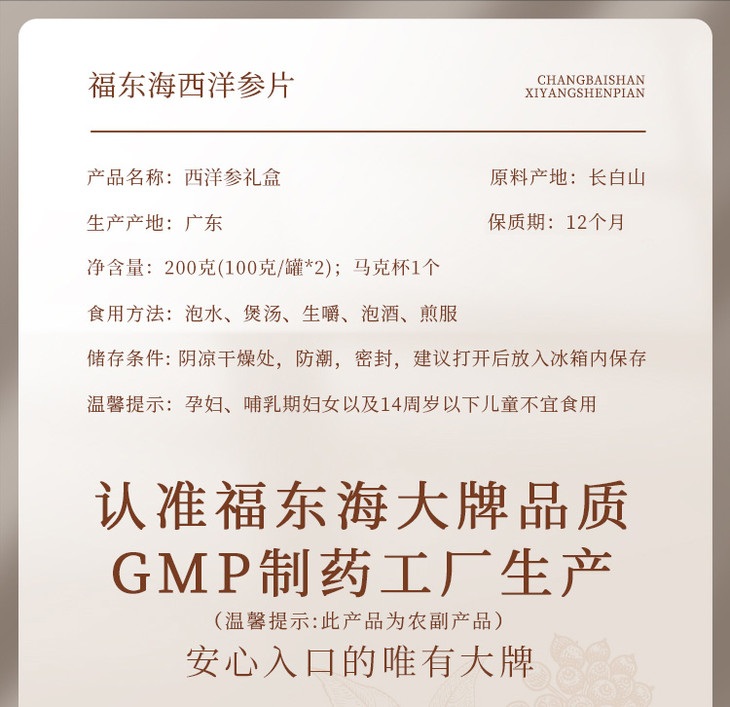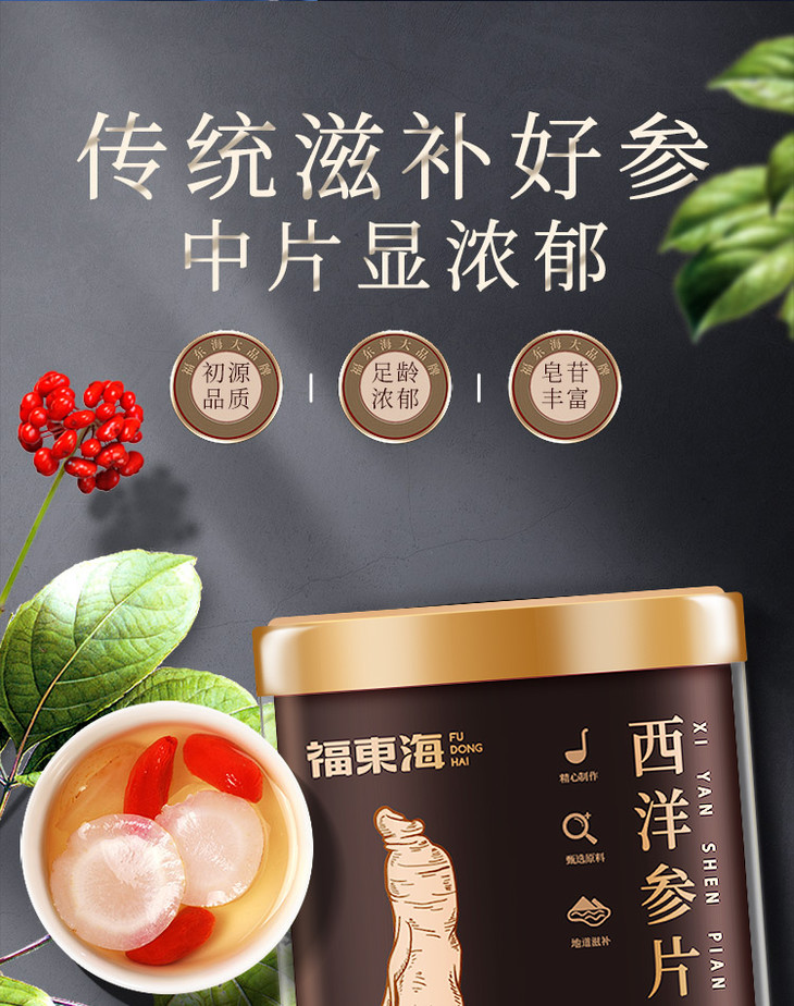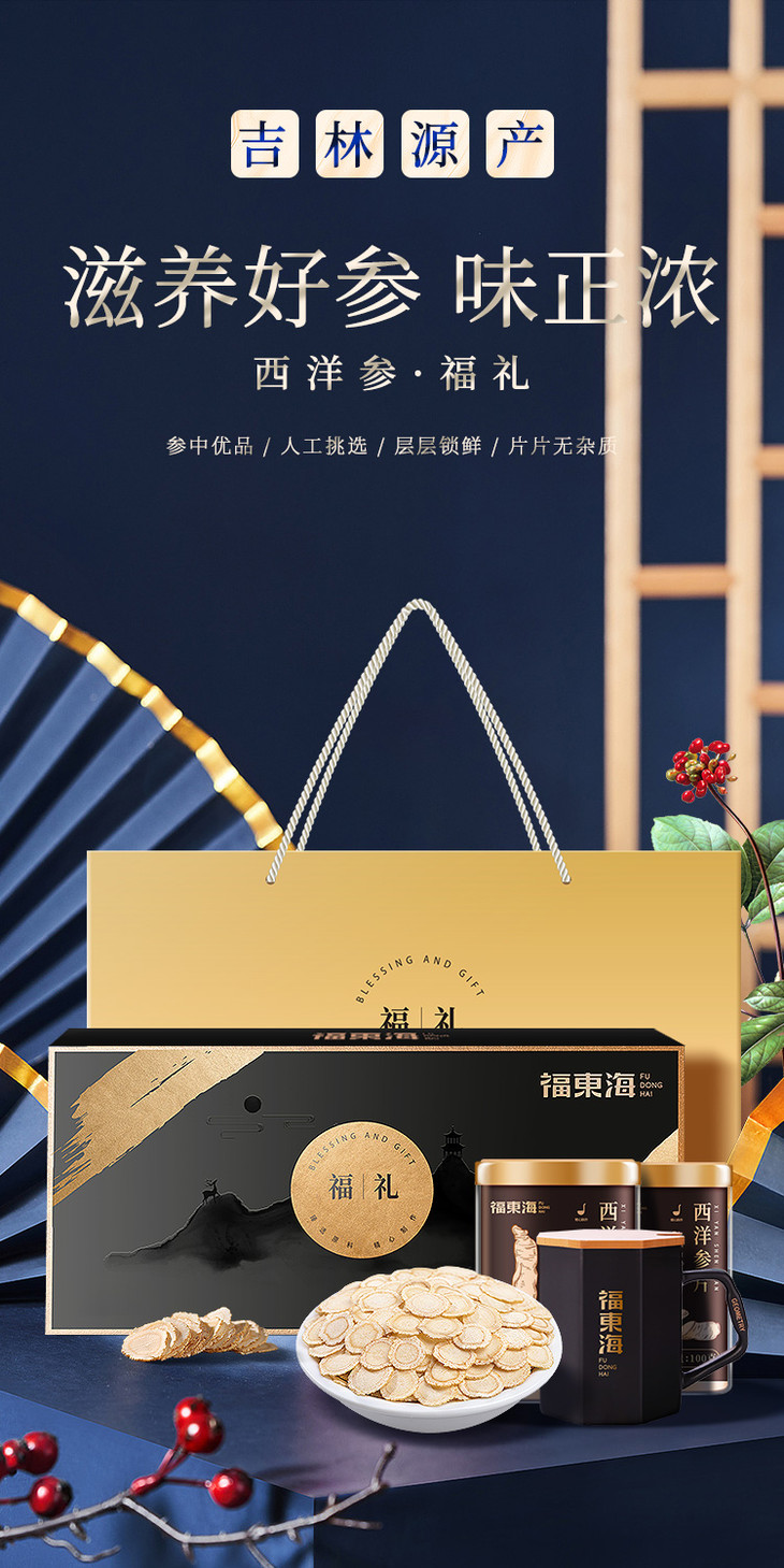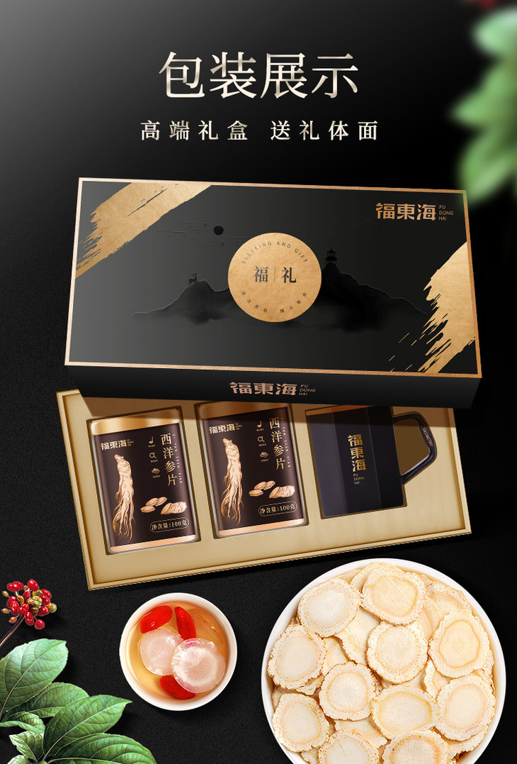 福东海西洋参切片送礼中片精挑无黑片花旗参含片人参礼盒装200克