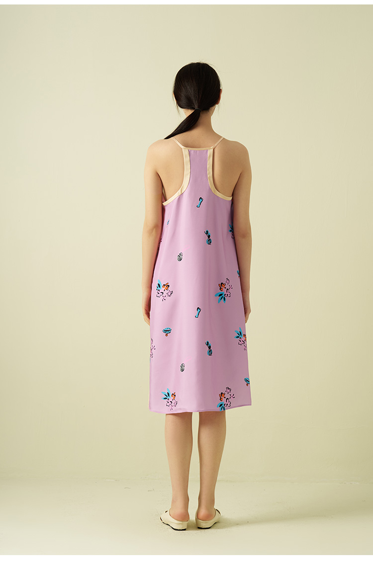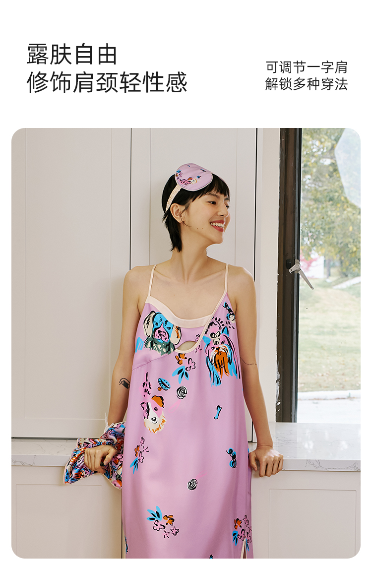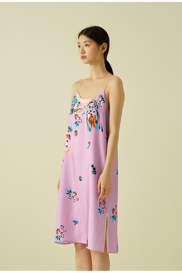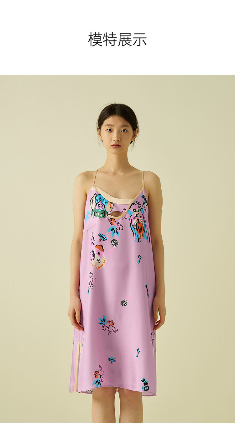 鬼马少女』桑罗魔法小狗撞色吊带裙100%桑蚕丝俏皮减龄2025年新款