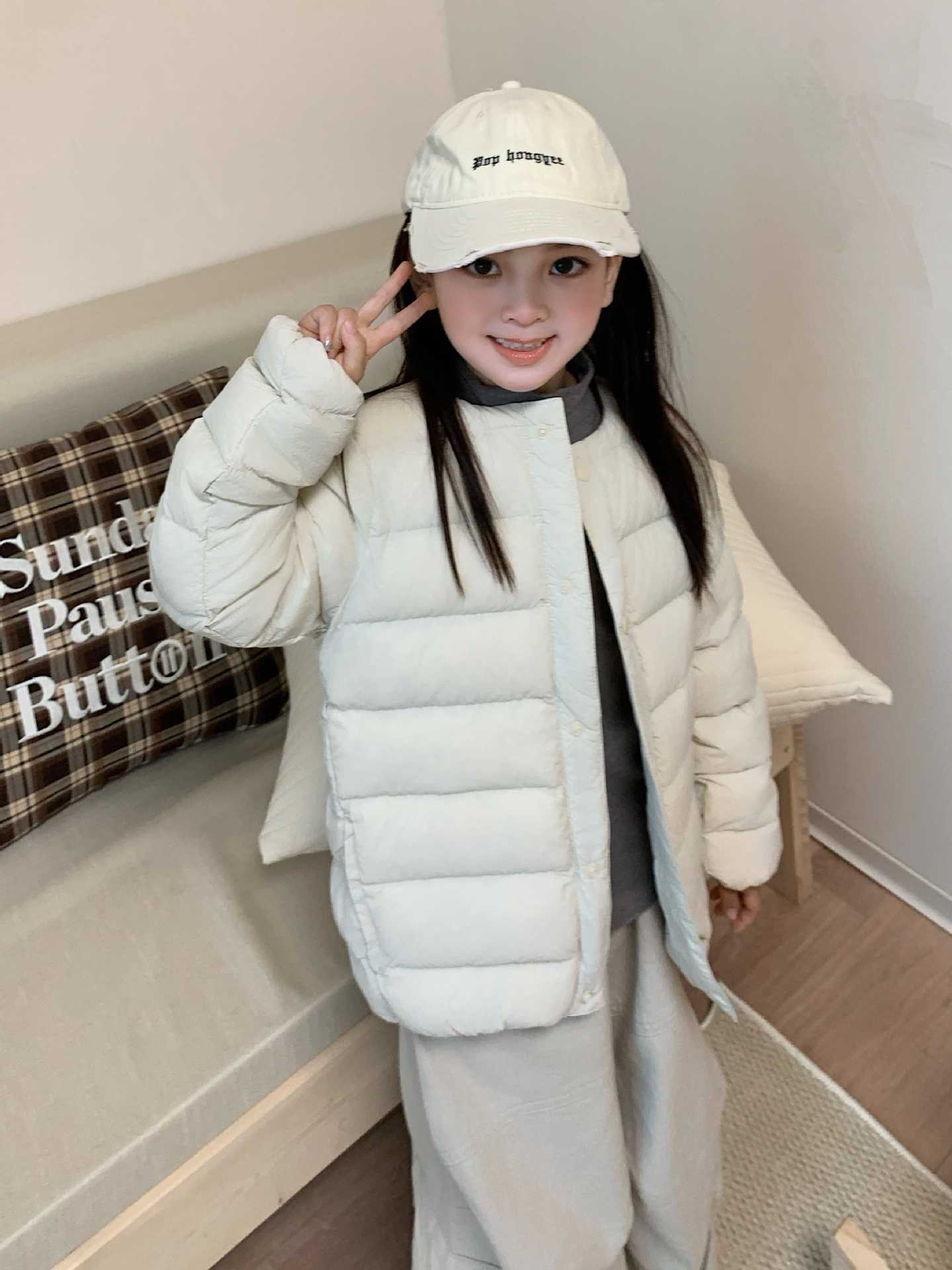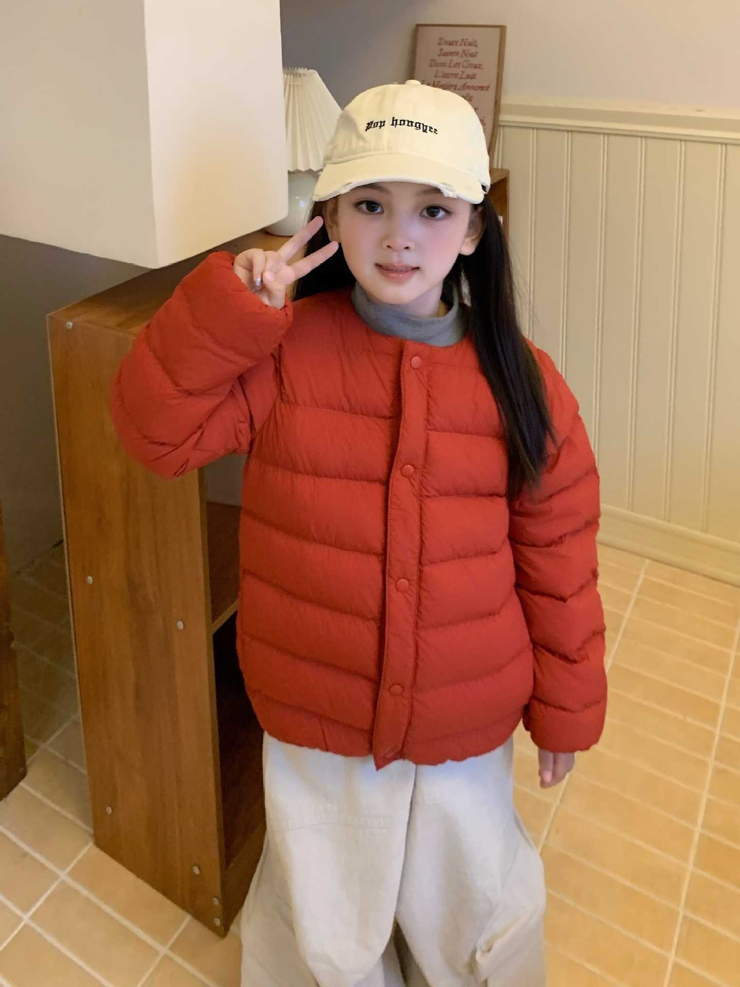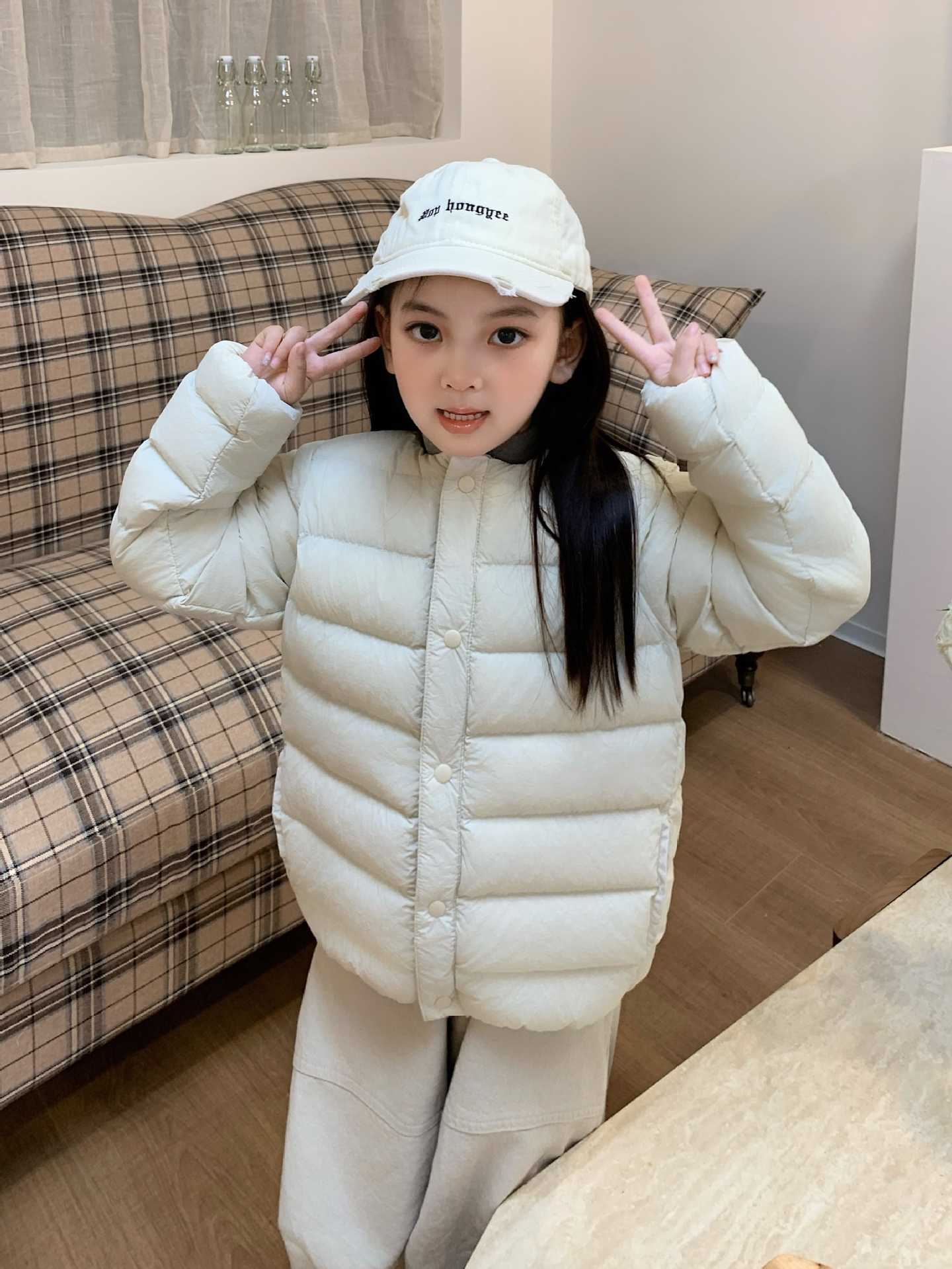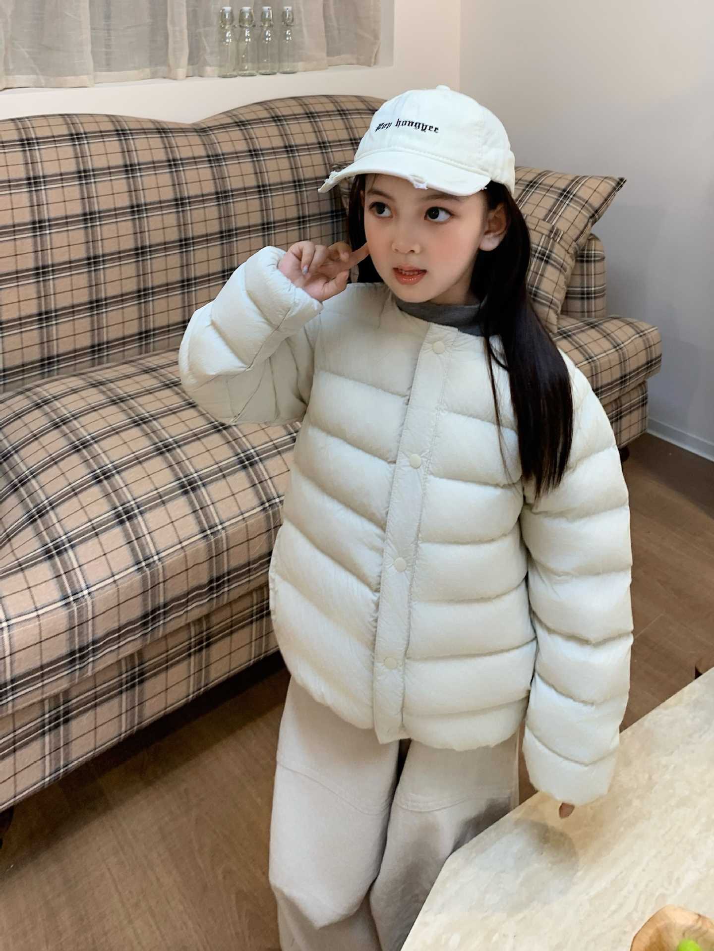排骨羽绒服!2025女童羽绒服儿童轻薄加厚圆领内胆男童无领内搭亲子外套!
