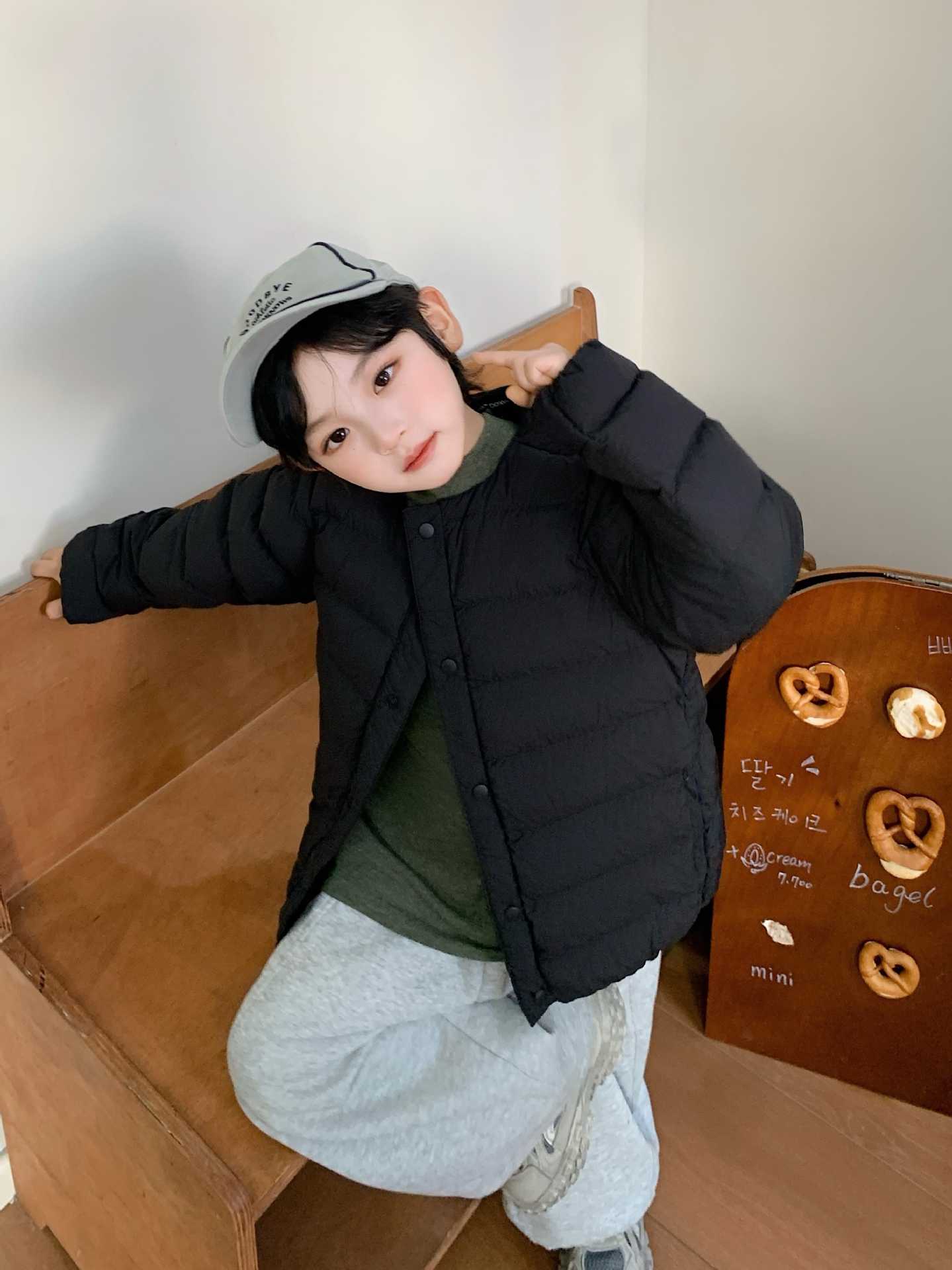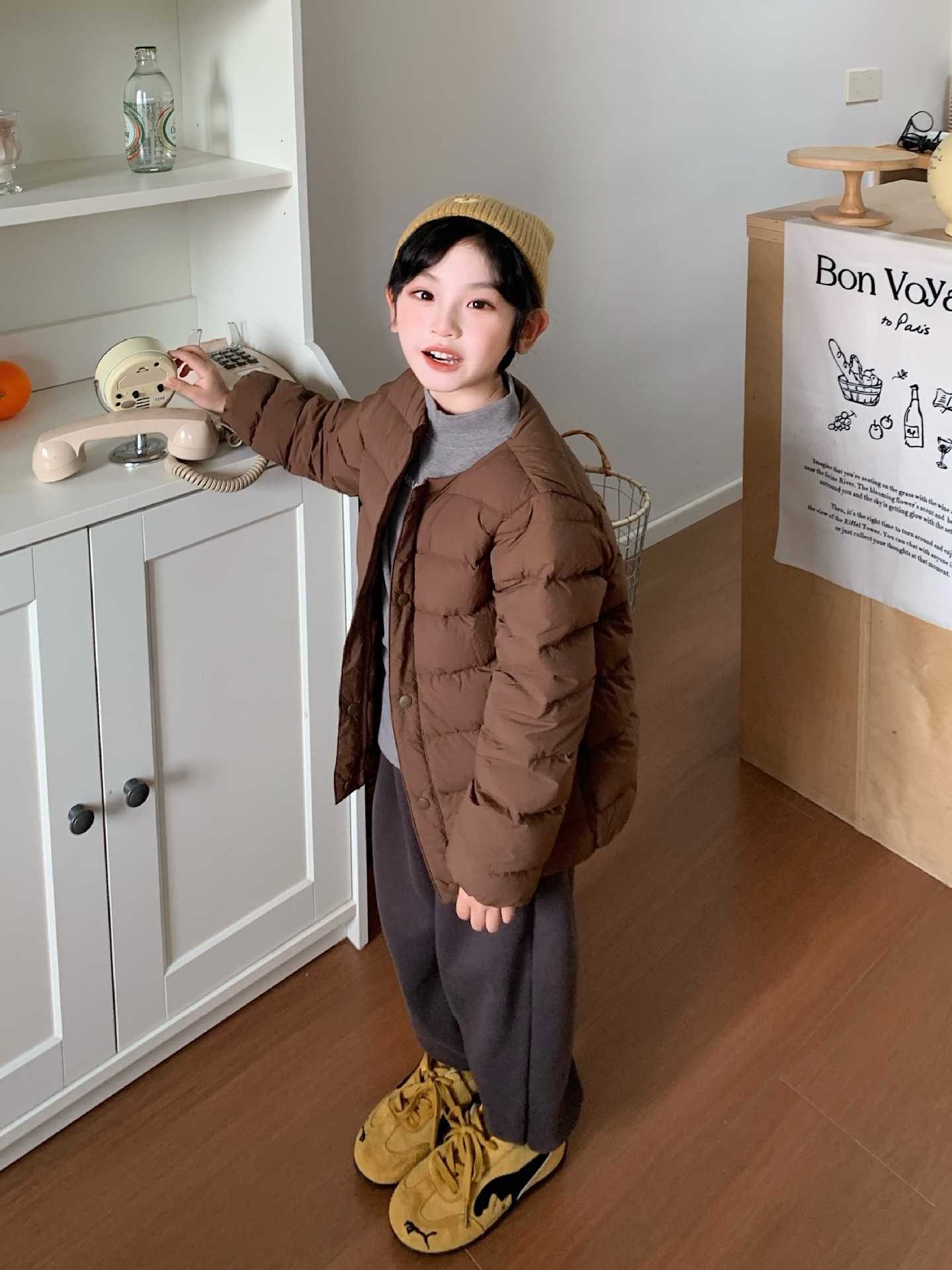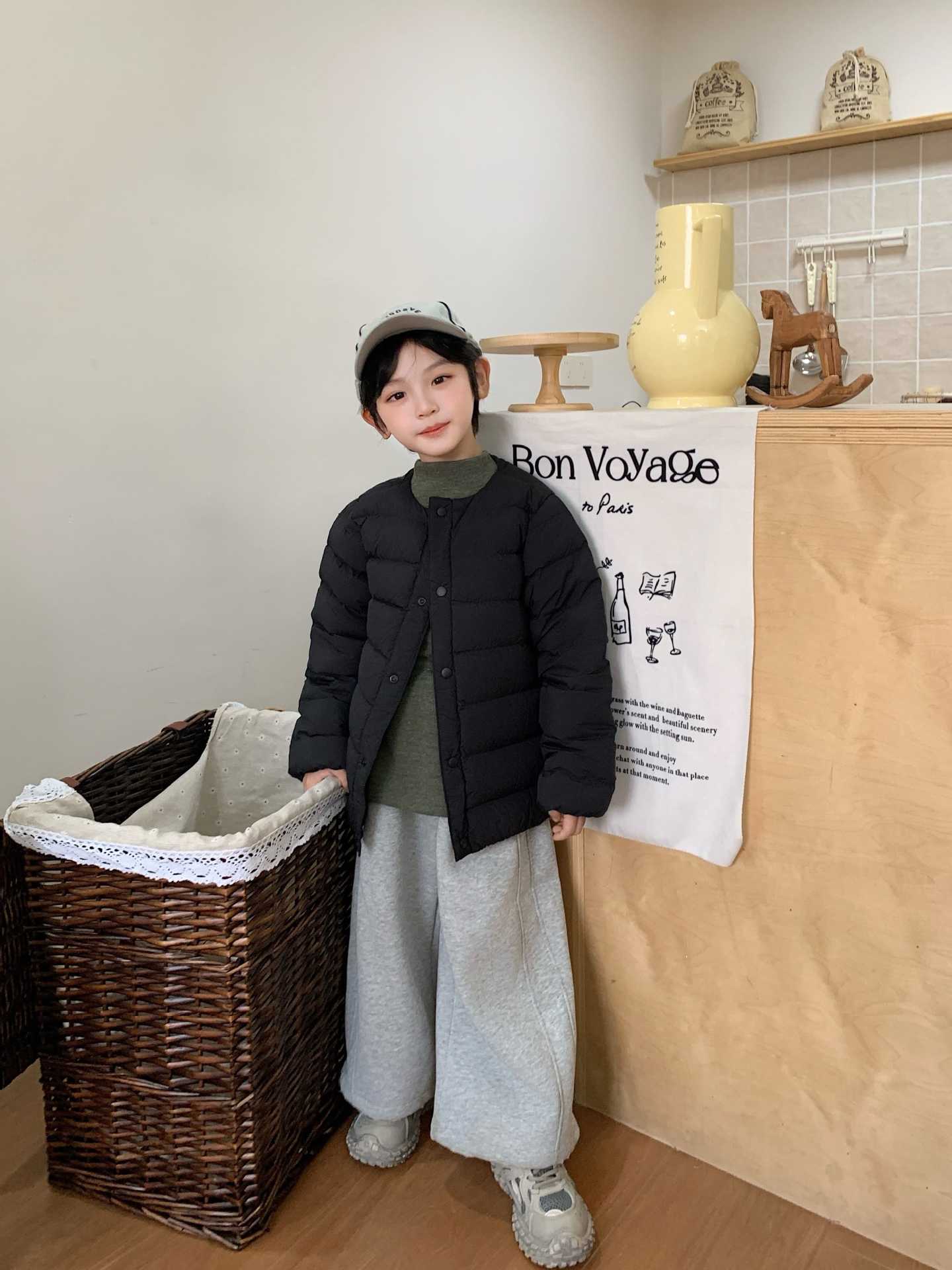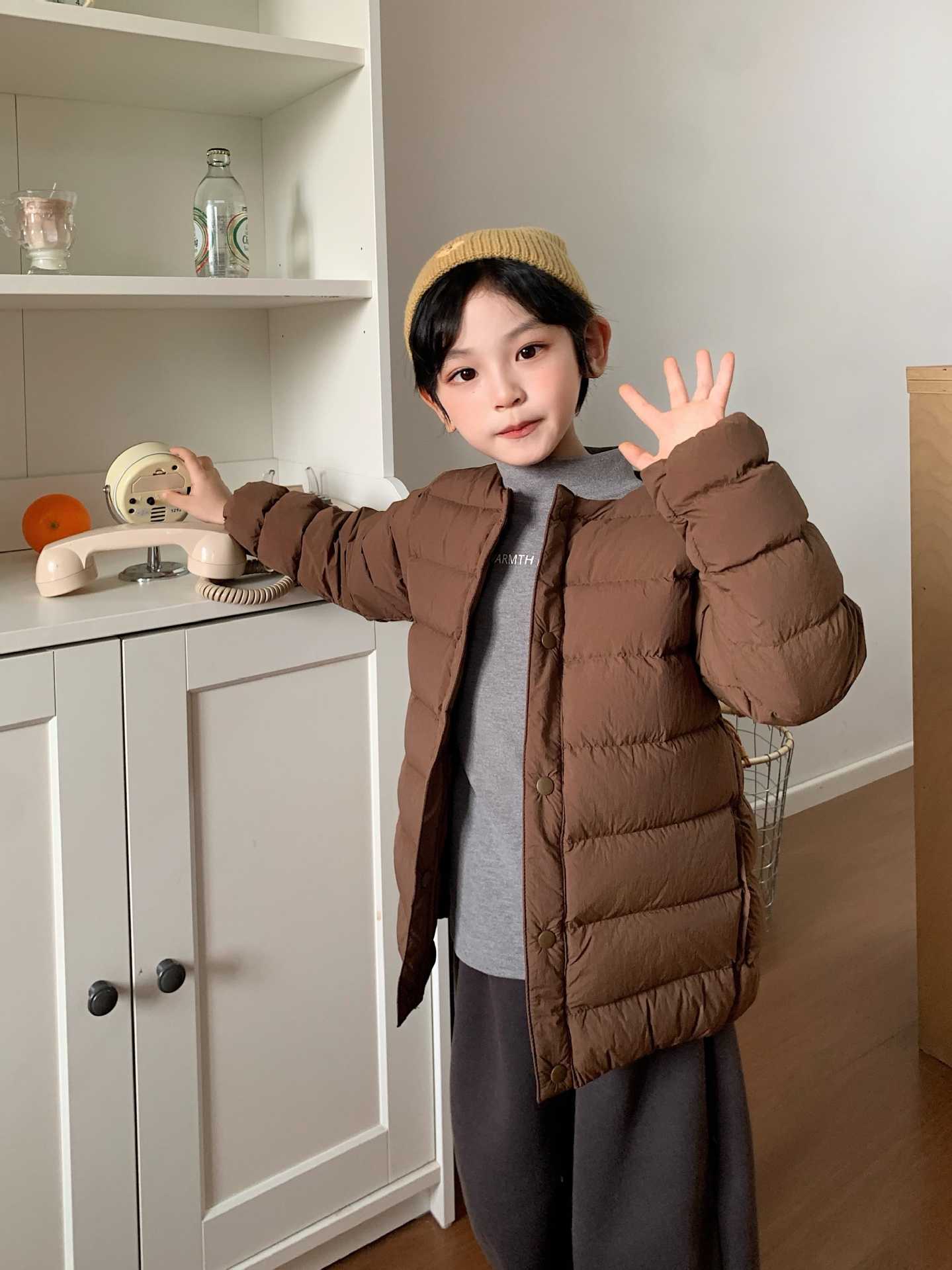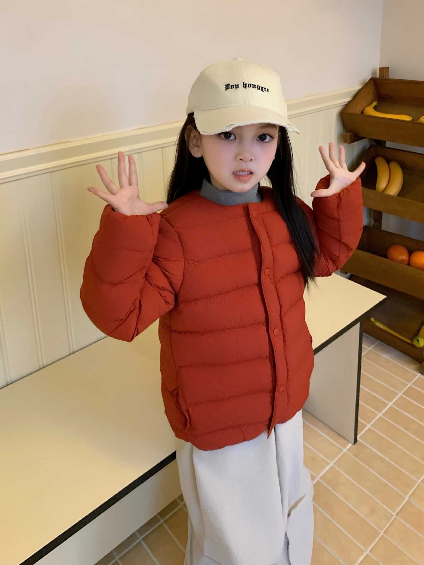 排骨羽绒服!2025女童羽绒服儿童轻薄加厚圆领内胆男童无领内搭亲子外套!
