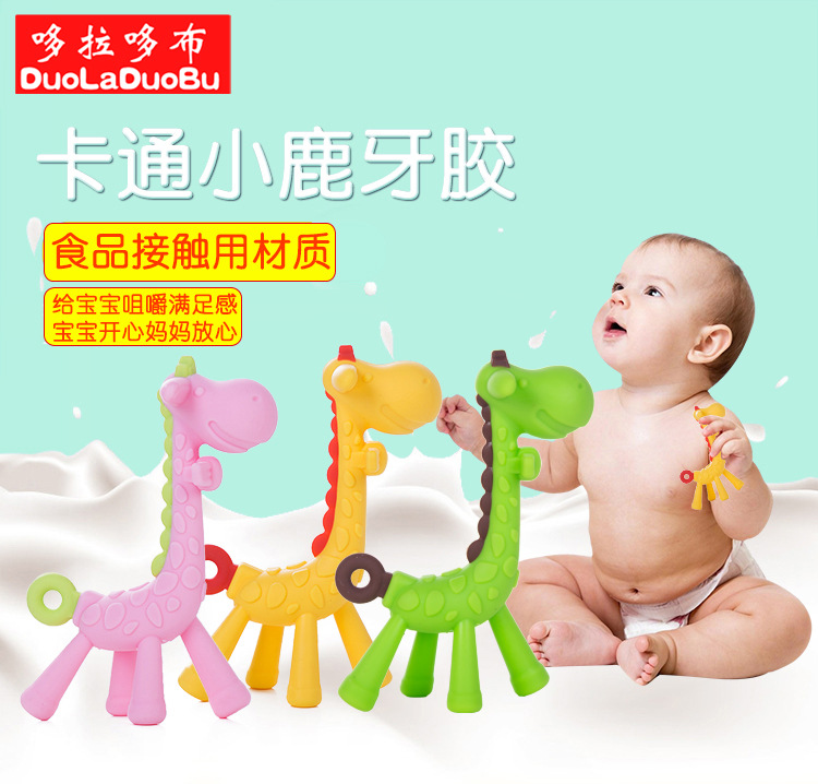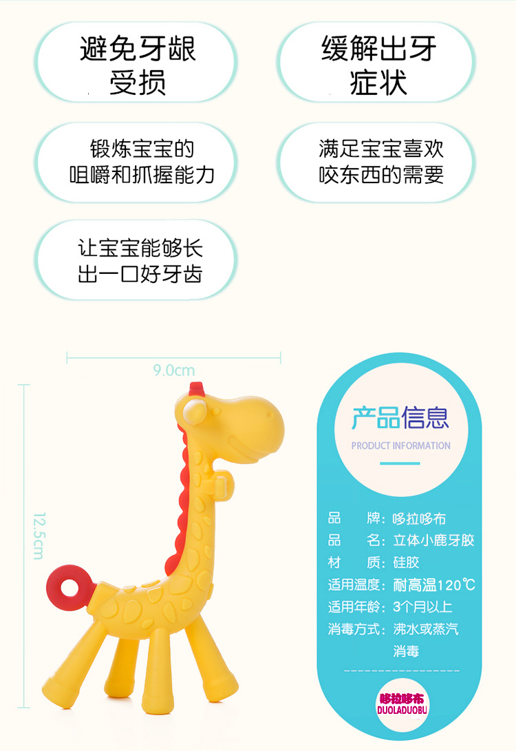 哆拉哆布 婴儿牙胶 全硅胶卡通小鹿牙胶磨牙玩具硅胶牙胶