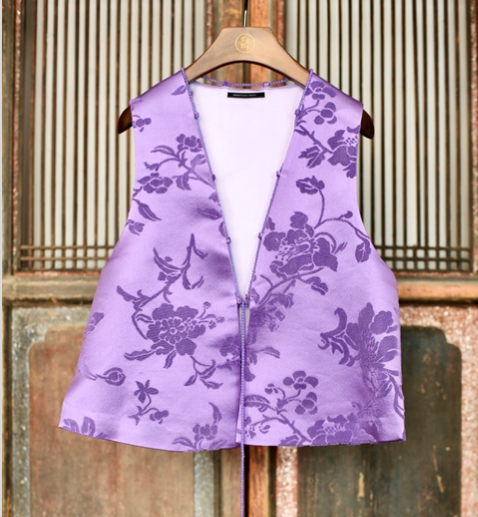 盛唐牡丹 |真丝提花立领马甲 (不夹棉)