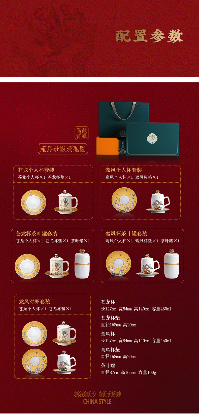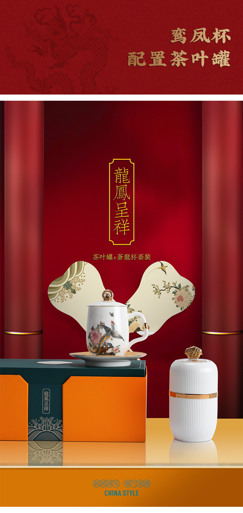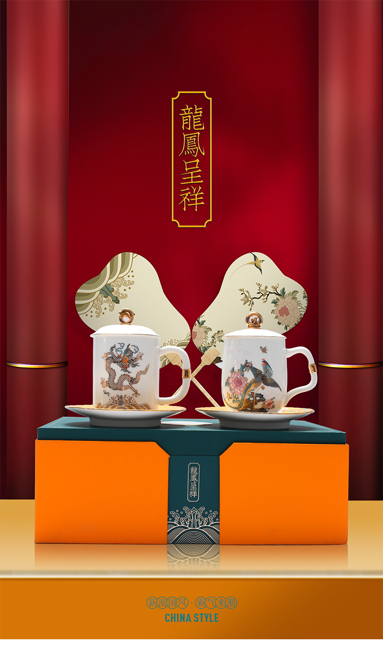 【采购专享】龙凤泡茶杯茶叶罐礼盒套装