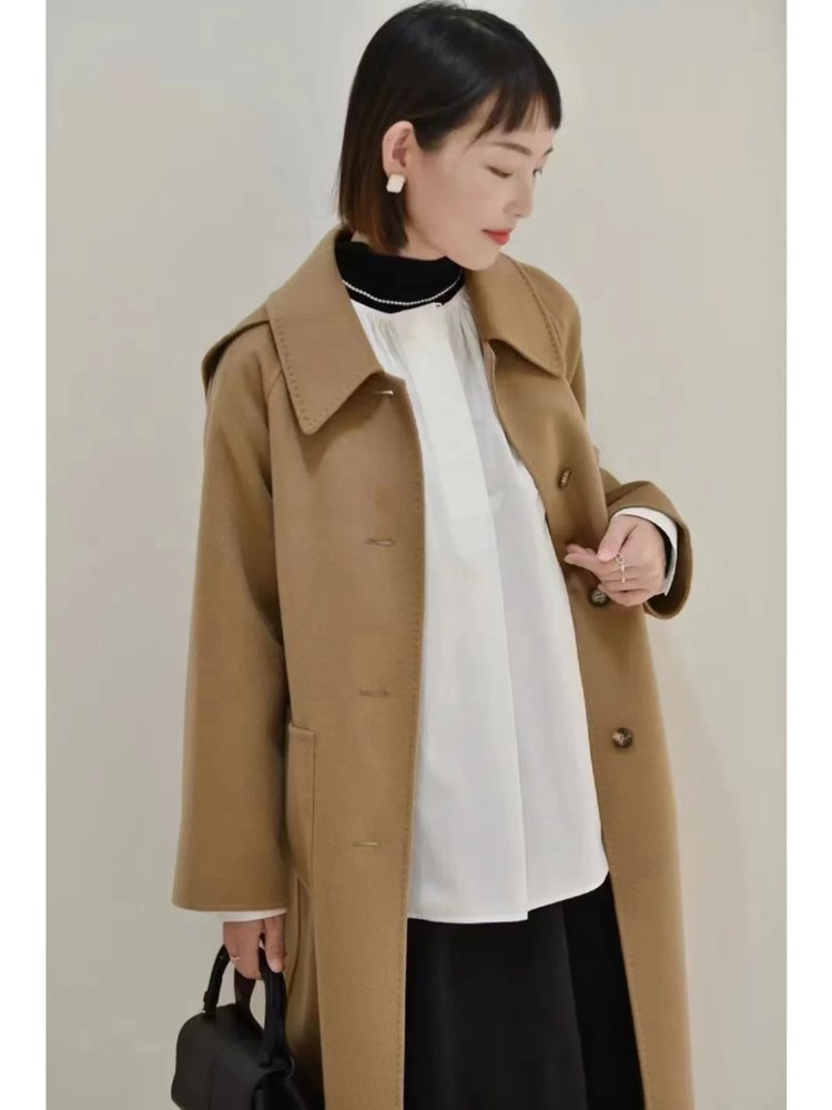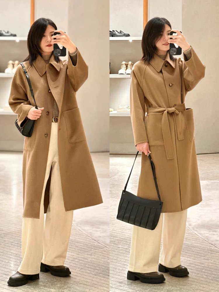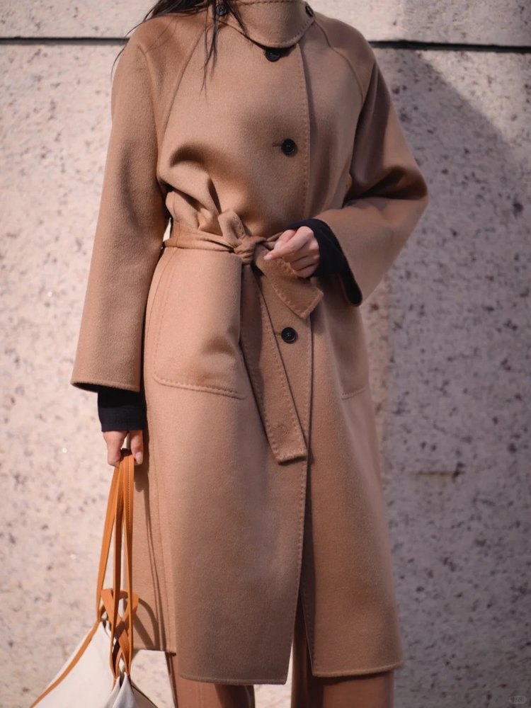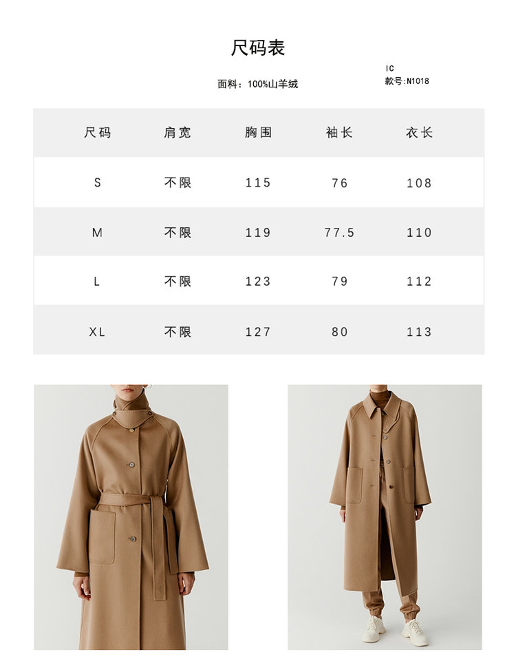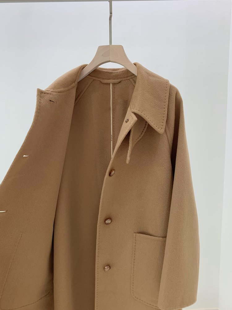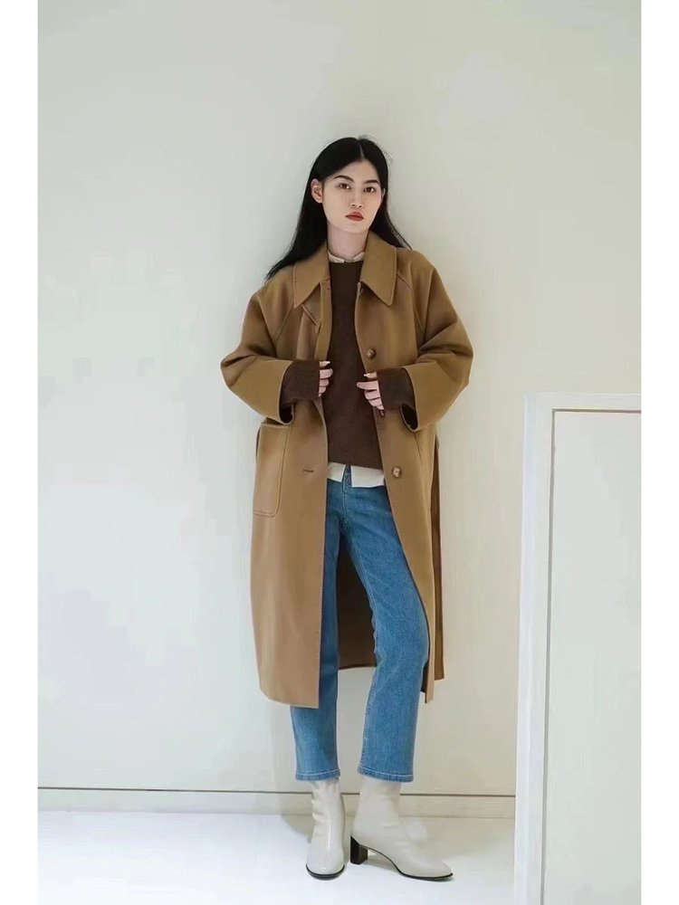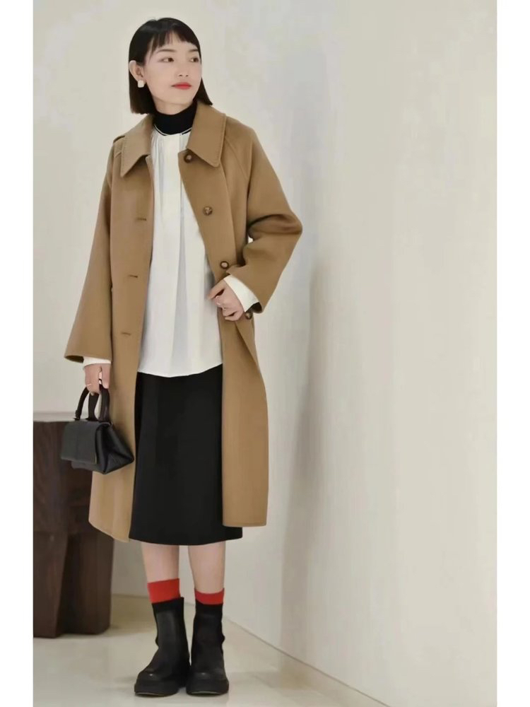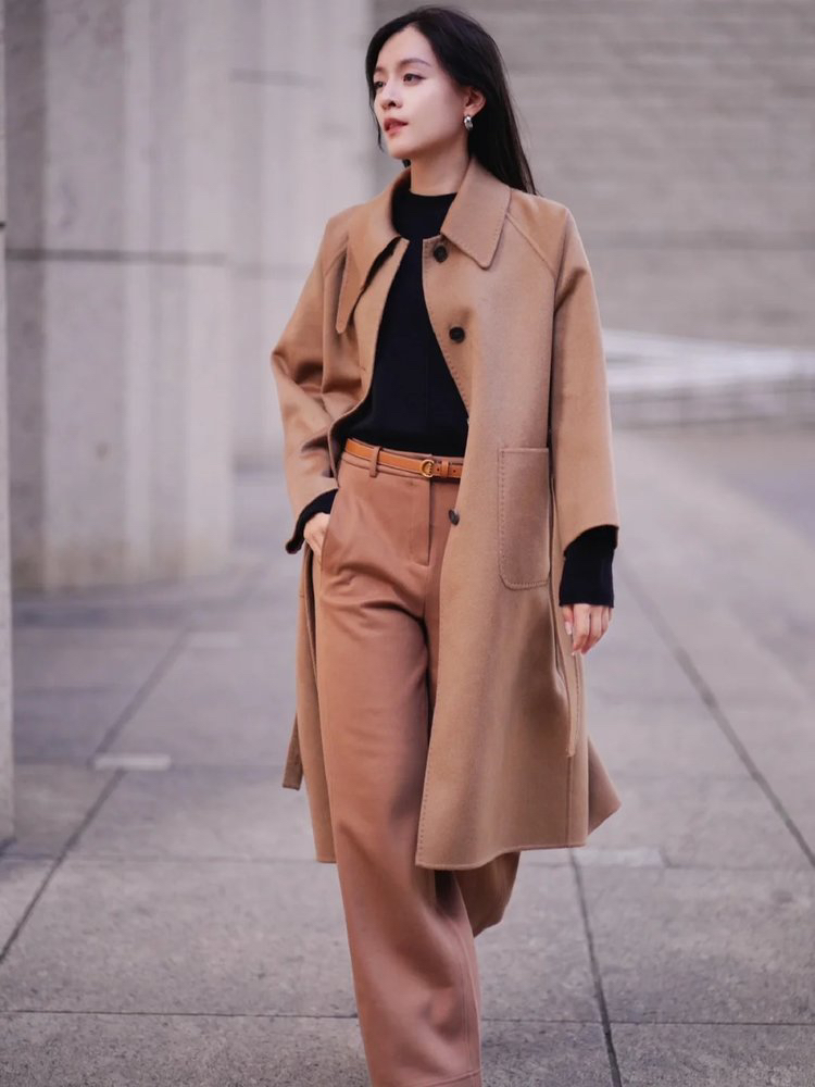 全羊绒轻暖双面呢插肩袖大衣 舒适廓形 简约大气 直身版型 适应各种身型 经典衬衫领 搭配扣袢 多种穿法 光泽低调雅致