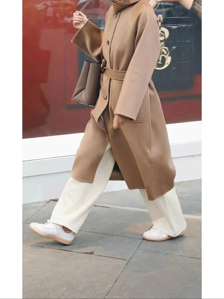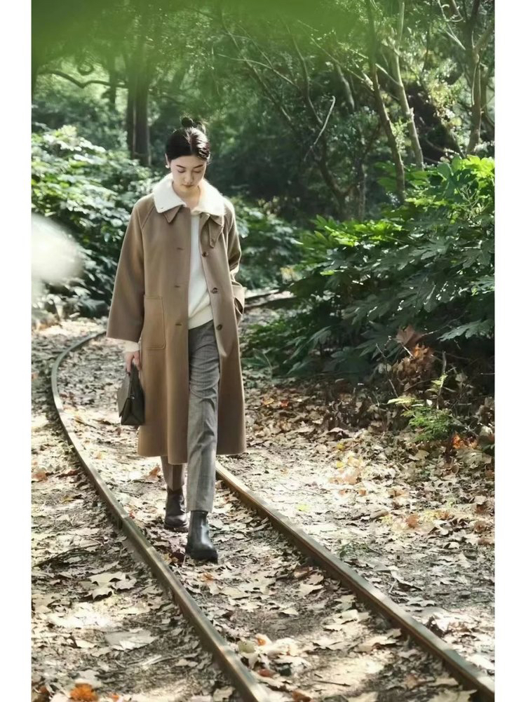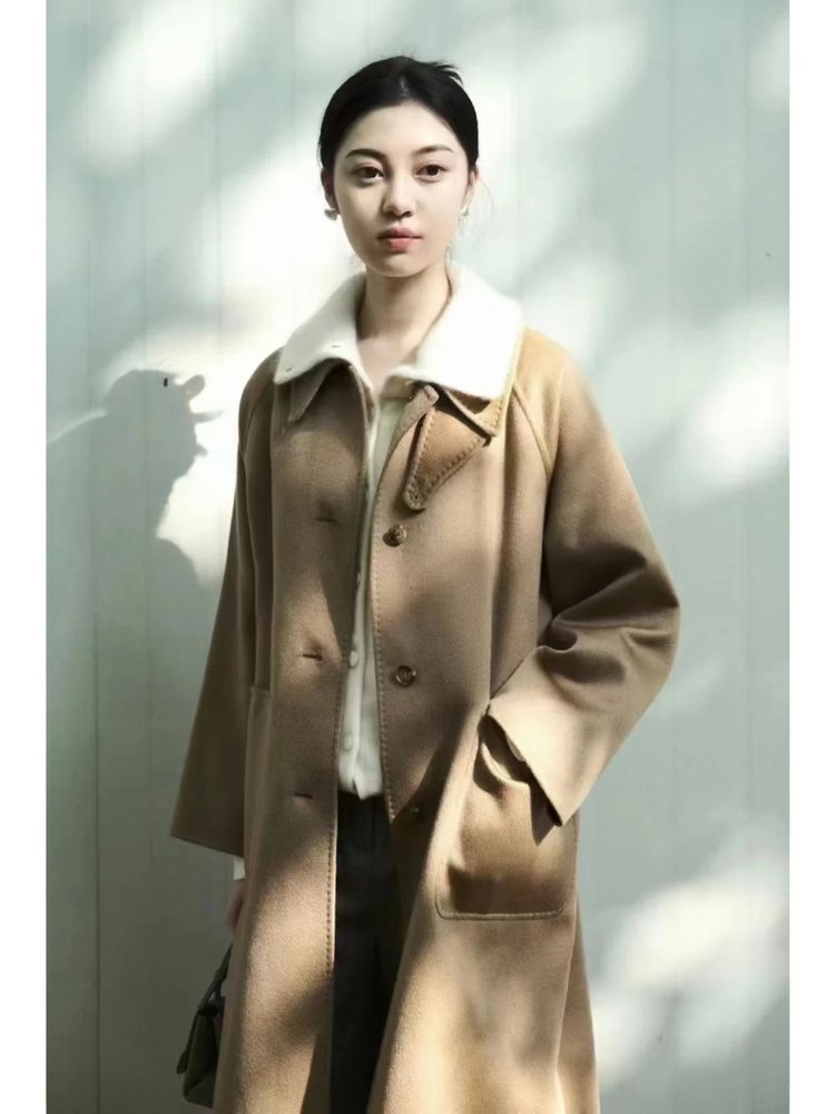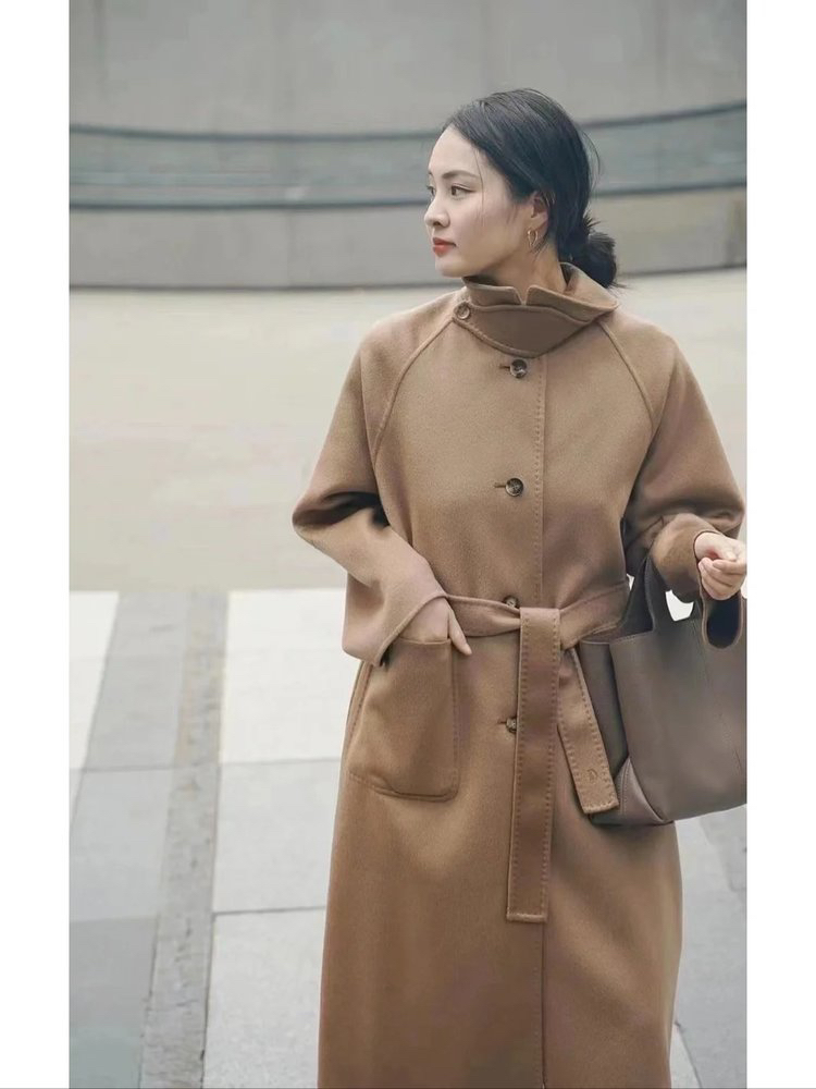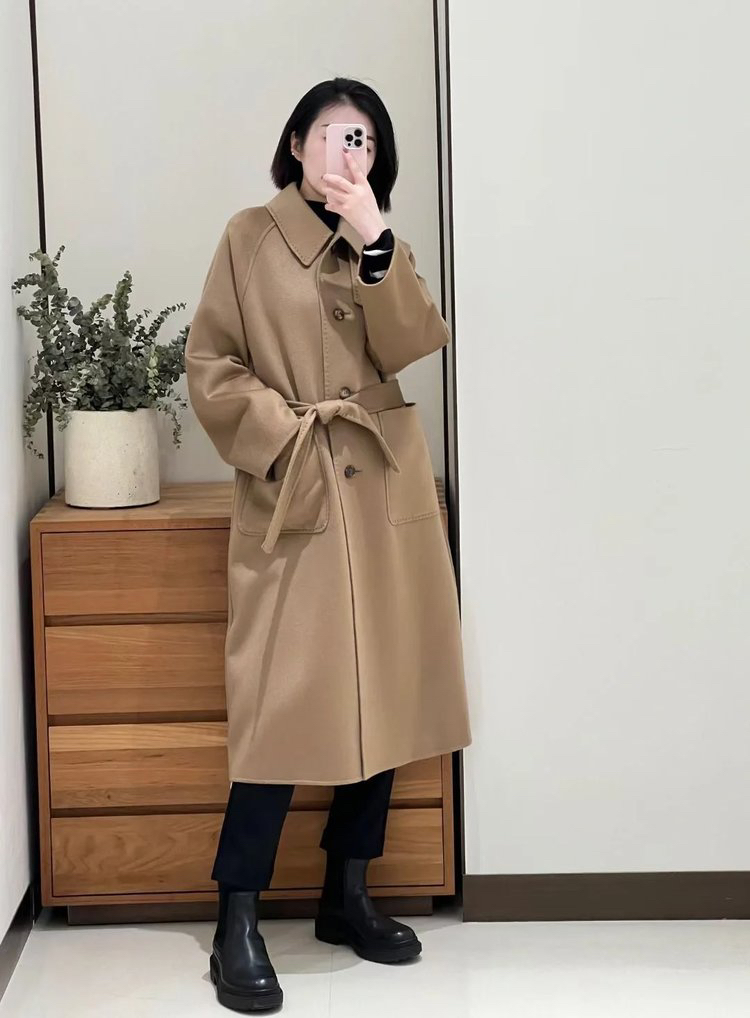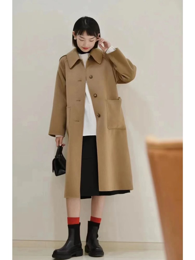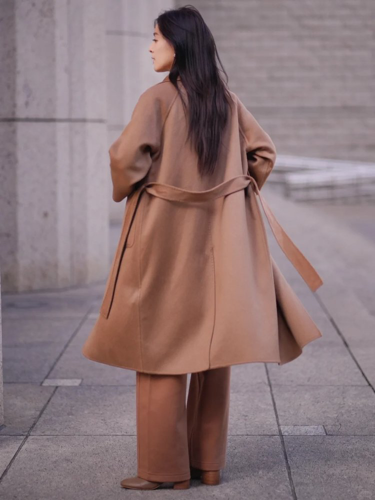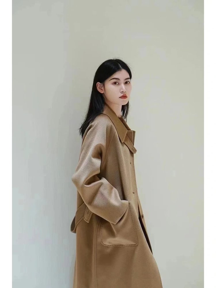 全羊绒轻暖双面呢插肩袖大衣 舒适廓形 简约大气 直身版型 适应各种身型 经典衬衫领 搭配扣袢 多种穿法 光泽低调雅致