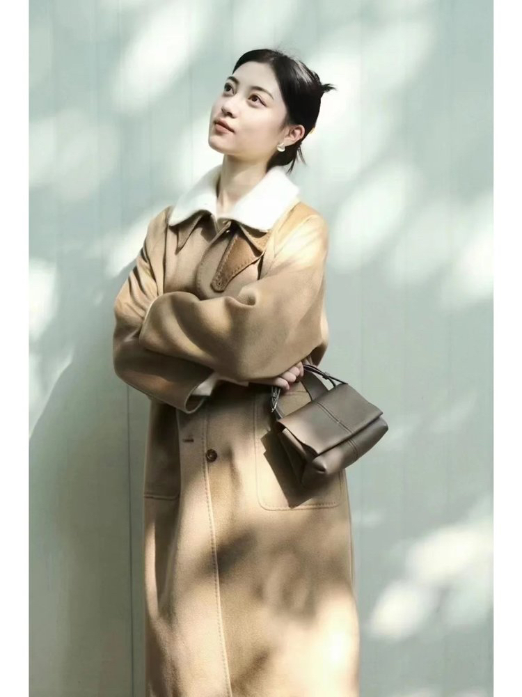 重磅轻暖双面呢,开篇放大招,心仪的"高智风"与"松弛感",臻选山羊绒织就 布面丰厚软糯。