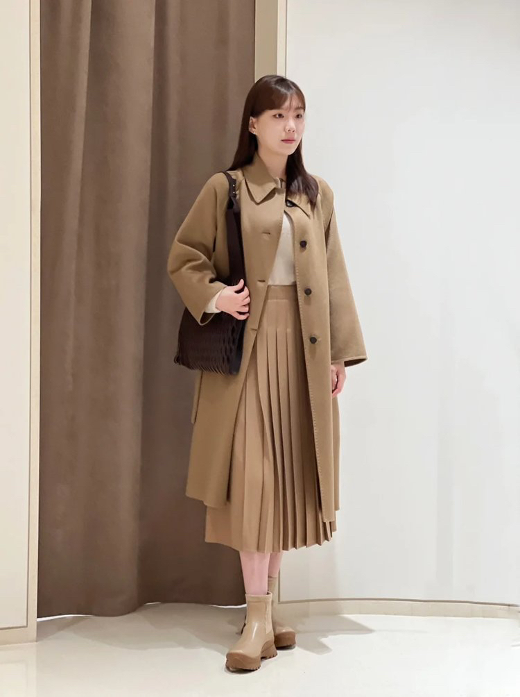 舒适廓形,简约大气,长度约至小腿,藏肉更保暖,对身材包容度高,舒适微落肩,不刻意强调肩型,打造松弛舒适常态。